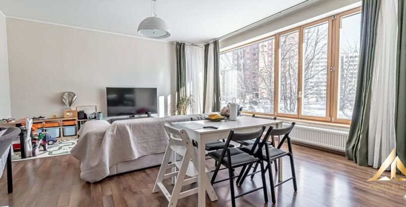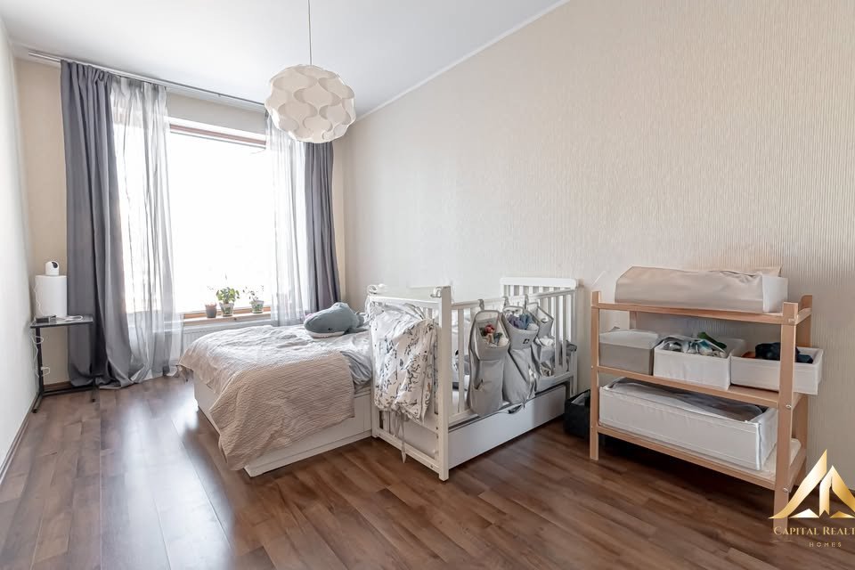 Spacious and bright well-thought-out apartment where everyday life passes peacefully and comfortably. Large windows allow natural light into the rooms throughout the day, while the combination of the living room and kitchen creates an open space suitable for family conversations and shared dinners. The apartment is located in the project “Dienvidu Horseshoe 2” – in a modern, horseshoe-shaped residential complex on Vienibas Avenue 192. The building is constructed of quality monolithic reinforced concrete constructions, equipped with an elevator, round-the-clock security and video surveillance. The enclosed and landscaped courtyard with children’s playground and recreation areas creates a safe and aesthetic environment for families. Underground parking and storage spaces are built in the project, providing thoughtful infrastructure for everyday convenience. The total area of the apartment is 112 m2, the plan has three rooms. The spacious living room is combined with the kitchen to create a modern and functional common area. Two separate bedrooms allow you to adapt the space to both family life and work needs. A recent bathroom renovation using quality finish materials. An individual heating meter has been installed, which allows to control heat consumption and optimize utility expenses. The apartment is located in Building 1. on the floor of 4. The property price includes a storage room and two parking permits outside the house. It is also possible to purchase a large underground family parking space. The gated area and project security solutions provide a peaceful and orderly living environment. The property is located in Riga, Ziepniekkalns – in a developed and family-friendly neighbourhood with easy traffic. The Alley shopping center is nearby, as well as shops, educational institutions and a green area for walks. It’s 27 right by the house. a trolley bus stop that provides easy access to the city center in about 10 minutes. Jurmala can be reached in around 20 minutes by car. The location combines urban dynamics with a peaceful and organized living environment.
