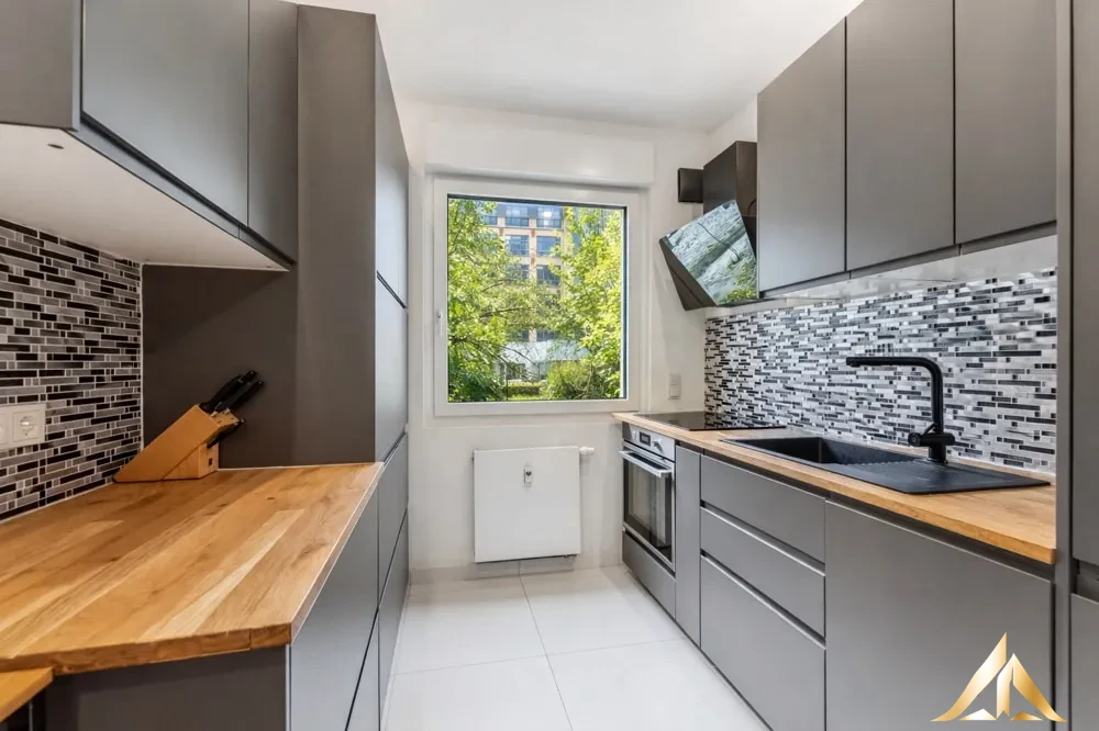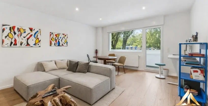 – This well-maintained two-room apartment is located on the raised ground floor of a residential building constructed in 1972 and impresses with its well-designed layout and modern, tasteful finishes.