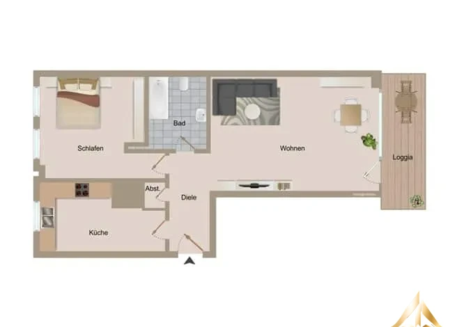 A spacious living and dining area with an open and airy feel awaits you. Large window fronts provide plenty of natural light and create a bright, welcoming atmosphere. From here, you have access to the balcony, which offers additional outdoor space and invites you to relax.