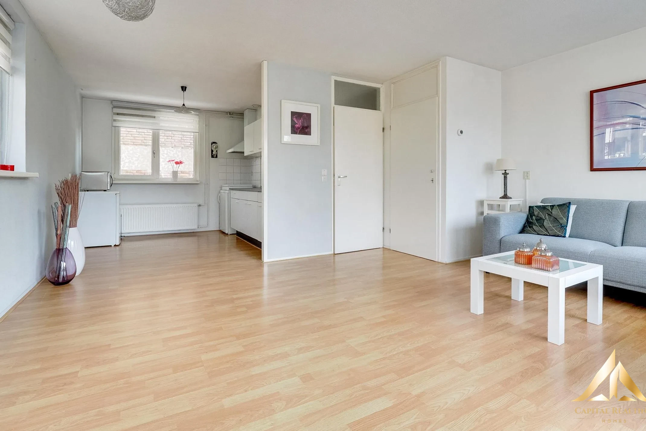 Esta espaciosa casa cuenta con una luminosa sala de estar con balcón, un lujoso baño en colores modernos y nada menos que tres dormitorios de buen tamaño. Además, la casa está totalmente equipada con marcos de plástico y se calienta mediante conexión a la red de calefacción urbana, por lo que ya no requiere gas. En la planta baja hay un práctico trastero. La casa está convenientemente ubicada en el centro, cerca de diversos servicios. Tiendas, el parque Oudegein, colegios y transporte público se encuentran a poca distancia. Las autopistas A2, A12 y A27 también son de fácil y rápido acceso. Distribución Planta baja: Entrada central con buzones y acceso a los trasteros. Desde aquí se accede a la galería y a la casa a través de la escalera comunitaria. 1.ª planta: Vestíbulo con armario para contadores, aseo, escaleras al segundo piso y acceso a la sala de estar y la cocina. La sala de estar es espaciosa y goza de mucha luz gracias a sus grandes ventanales. Desde la sala de estar se accede al balcón que abarca todo el ancho de la casa y está orientado al oeste. Aquí se puede disfrutar del sol por la tarde y por la noche. La cocina se encuentra en la parte delantera de la casa y es sencilla. 2.ª planta: Distribuidor con acceso a tres dormitorios de aproximadamente 12,1 m², 6,9 m² y 11,9 m². El baño está equipado con bañera, lavabo y conexión para lavadora.