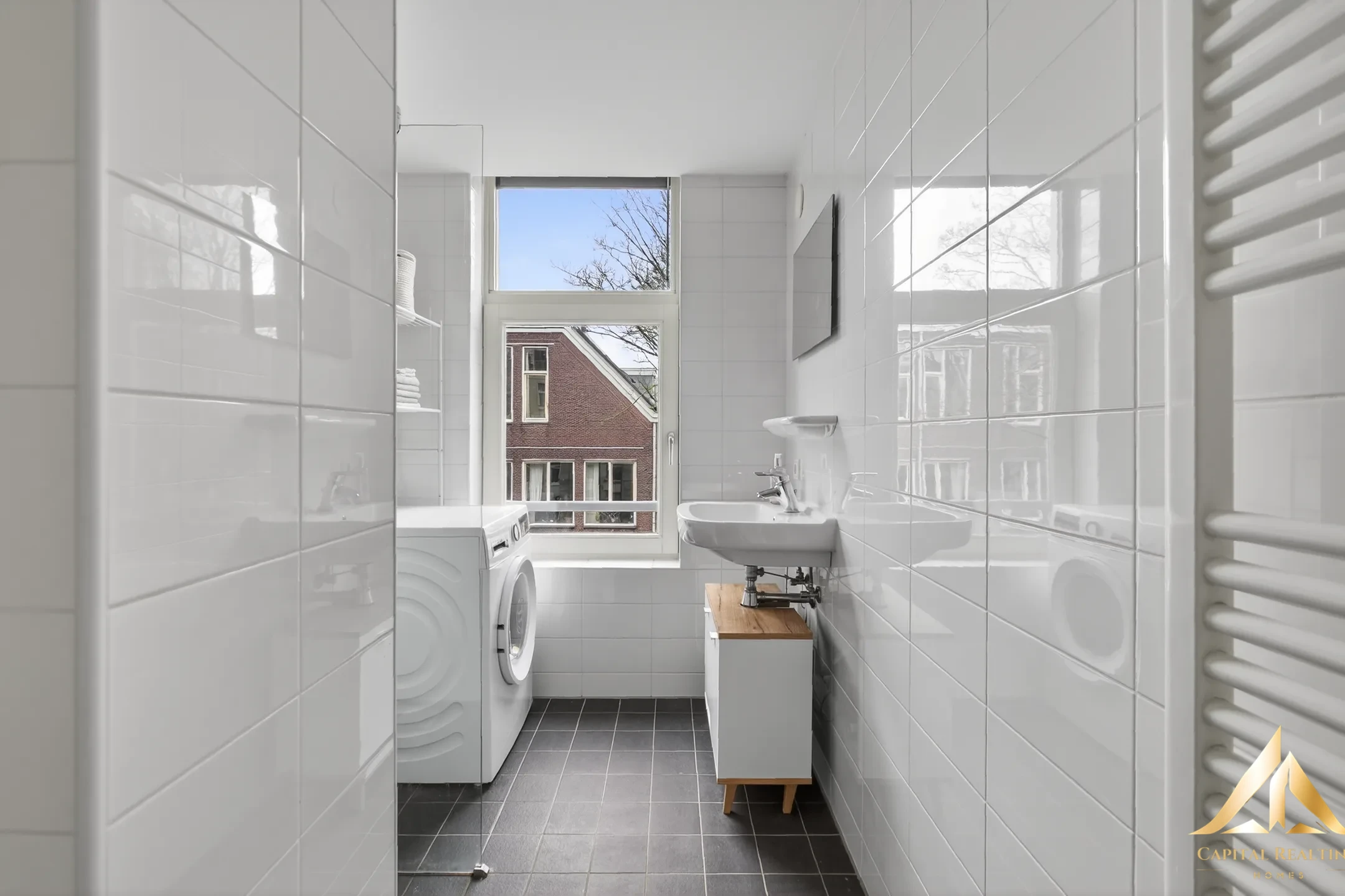 Looking for a home on a quiet street while still enjoying the vibrant city life just around the corner? This well-laid-out and move-in ready one-bedroom apartment of approximately 40 m² is located on the third floor of a well-maintained building on Derde Hugo de Grootstraat, in a very central location on the edge of the Jordaan. An ideal home for first-time buyers who want to live comfortably in one of Amsterdam’s most popular neighbourhoods. The apartment is situated in the popular Frederik Hendrik neighbourhood, close to Hugo de Grootplein, Frederik Hendrikstraat and Bilderdijkstraat. In the immediate vicinity you will find a wide variety of shops, supermarkets, cafés and restaurants. For relaxation and outdoor activities, several parks are nearby, including Westerpark, Erasmuspark and Vondelpark. LAYOUT The apartment on the third floor can be reached via the communal staircase. Upon entering, you arrive in the hallway which provides access to almost all rooms. The semi-open kitchen is equipped with various built-in appliances and connects to the bright living room at the front of the apartment. The large windows create a pleasant and light living space. The bedroom is centrally located within the apartment. Adjacent to it is the well-maintained bathroom at the rear of the property, featuring a spacious walk-in shower, washbasin, towel radiator and a connection for the washing machine.