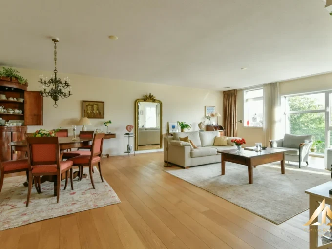 Ground floor: You enter the house through the entrance at the front. In the hall you will find the meter cupboard, the modern toilet (wall closet with fountain) and the staircase to the first floor. At the front of the house is the street-oriented dining room, a wonderful place for dinners or cozy evenings with friends and family. The dining room is in open connection with the super deluxe kitchen, which is equipped with various built-in appliances including an induction hob, dishwasher, fridge-freezer and a combi oven. The kitchen offers plenty of work and storage space and forms the heart of the house. Adjacent to the kitchen is a practical utility room with space for the washing machine and dryer. At the rear is the garden-oriented living room with patio door to the backyard. Thanks to the large windows, this is a wonderfully light room with a pleasant view of the garden. The entire ground floor is finished with a modern wood-look tiled floor with comfortable underfloor heating. First floor: On the first floor there are two well-sized bedrooms. Due to the dormer windows at both the front and rear, these are full and bright rooms. You will also find the stylish bathroom here, which also has underfloor heating. The bathroom has a toilet, bath, double sink with furniture and a spacious walk-in shower. The central heating boiler is also located here. Garden: The house has a nice backyard on the south, so you can enjoy the sun to the fullest. The garden is low maintenance and has a back entrance. At the back of the garden is a practical storage room with electricity, ideal for bicycles and garden tools. In short: – Ready-to-move-in house with modern finish; – Luxury kitchen with complete appliances, dishwasher with ComfortLift function; – Underfloor heating on the ground floor and in the bathroom; – 2 spacious bedrooms through dormer windows, which are equipped with built-in shutters; – Sunny south-facing backyard with back entrance; – Detached storage room with electricity;