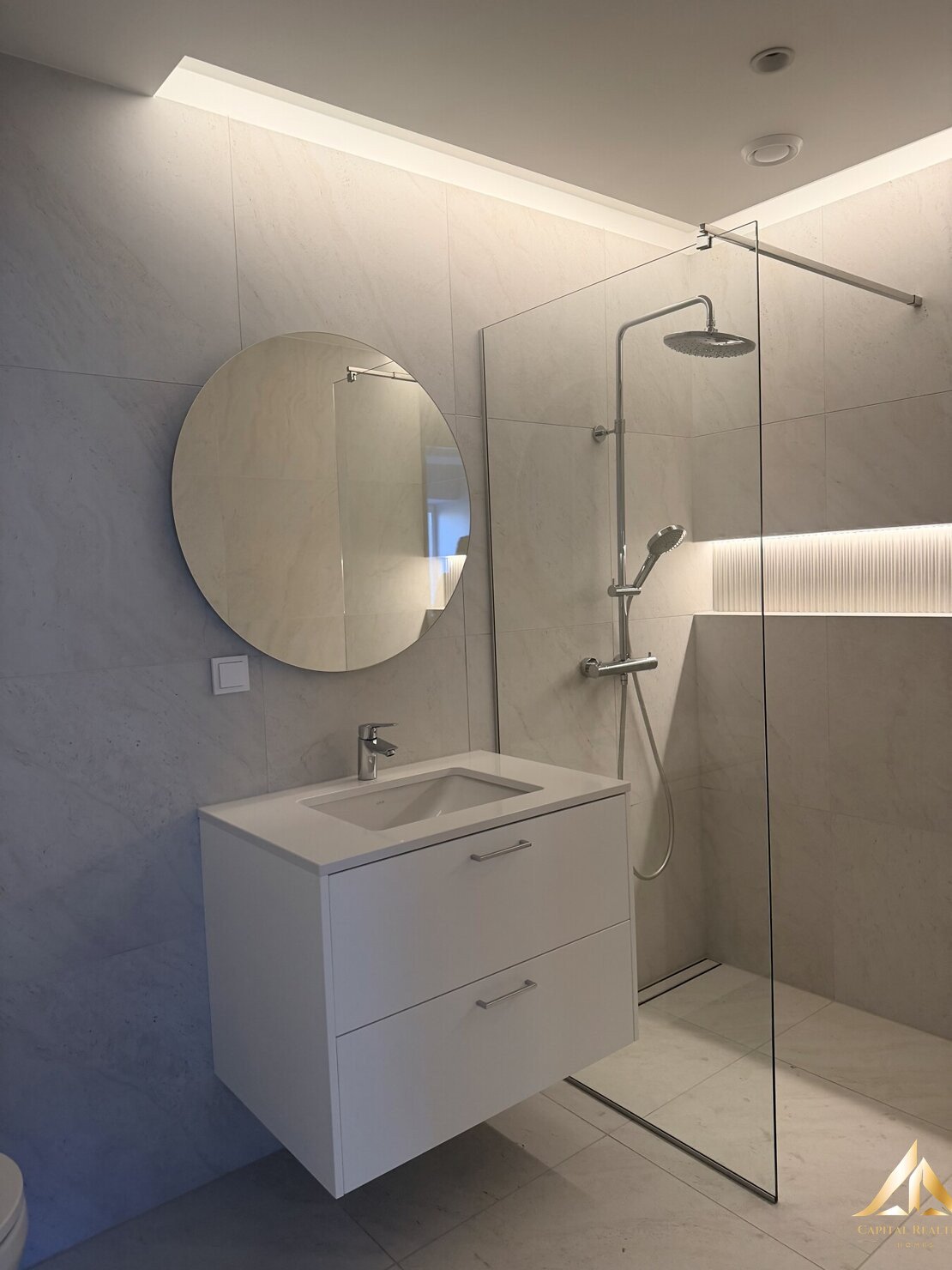 ✔ modern and high-quality tiles Thoughtful lighting solution with LED cornices that creates a soft and luxurious atmosphere
