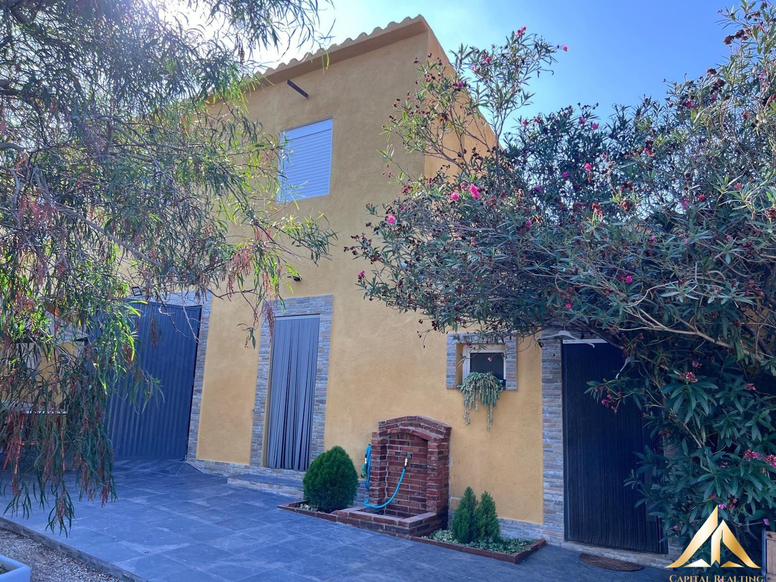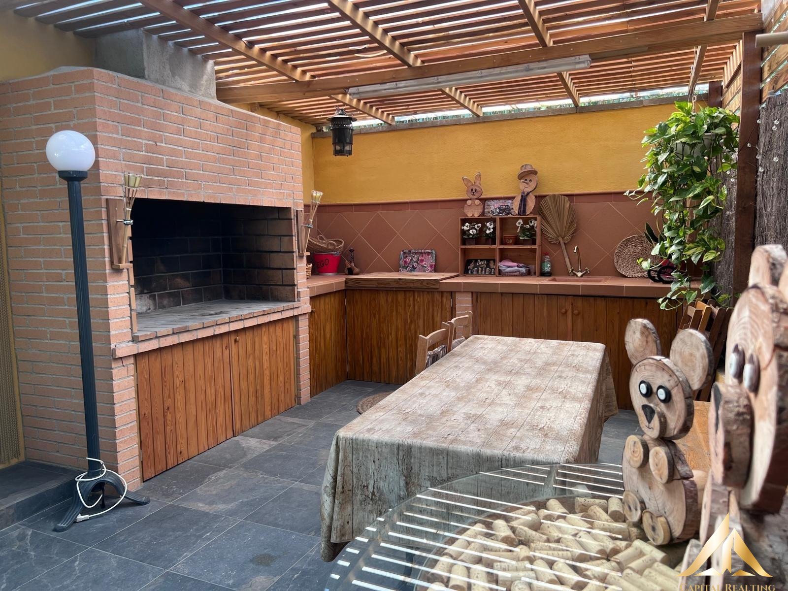 The house has 3 bedrooms, a bright living room, a fully equipped kitchen, a bathroom, air conditioning, and an attic, as well as a garage, barbecue area, and storage space.