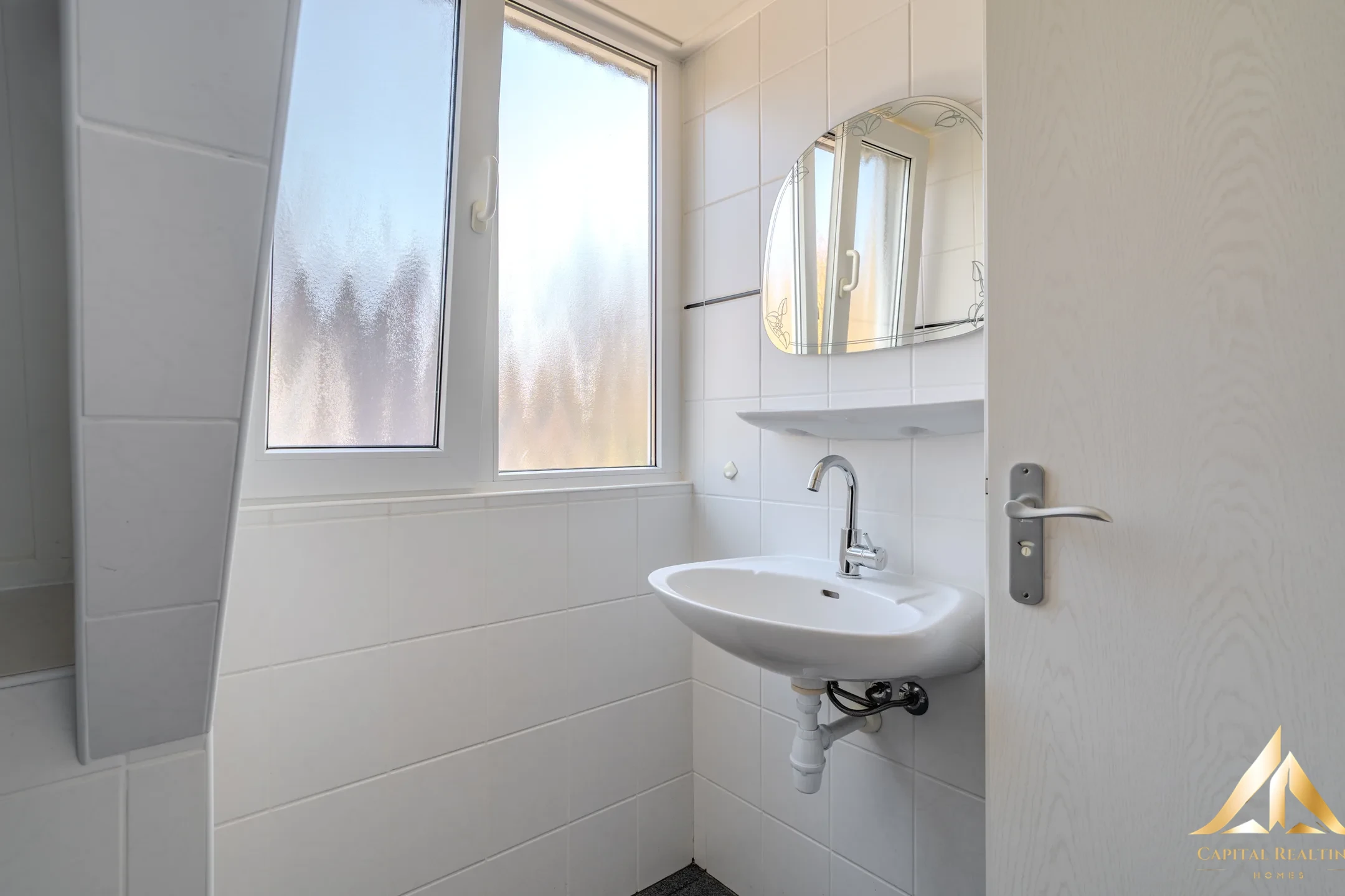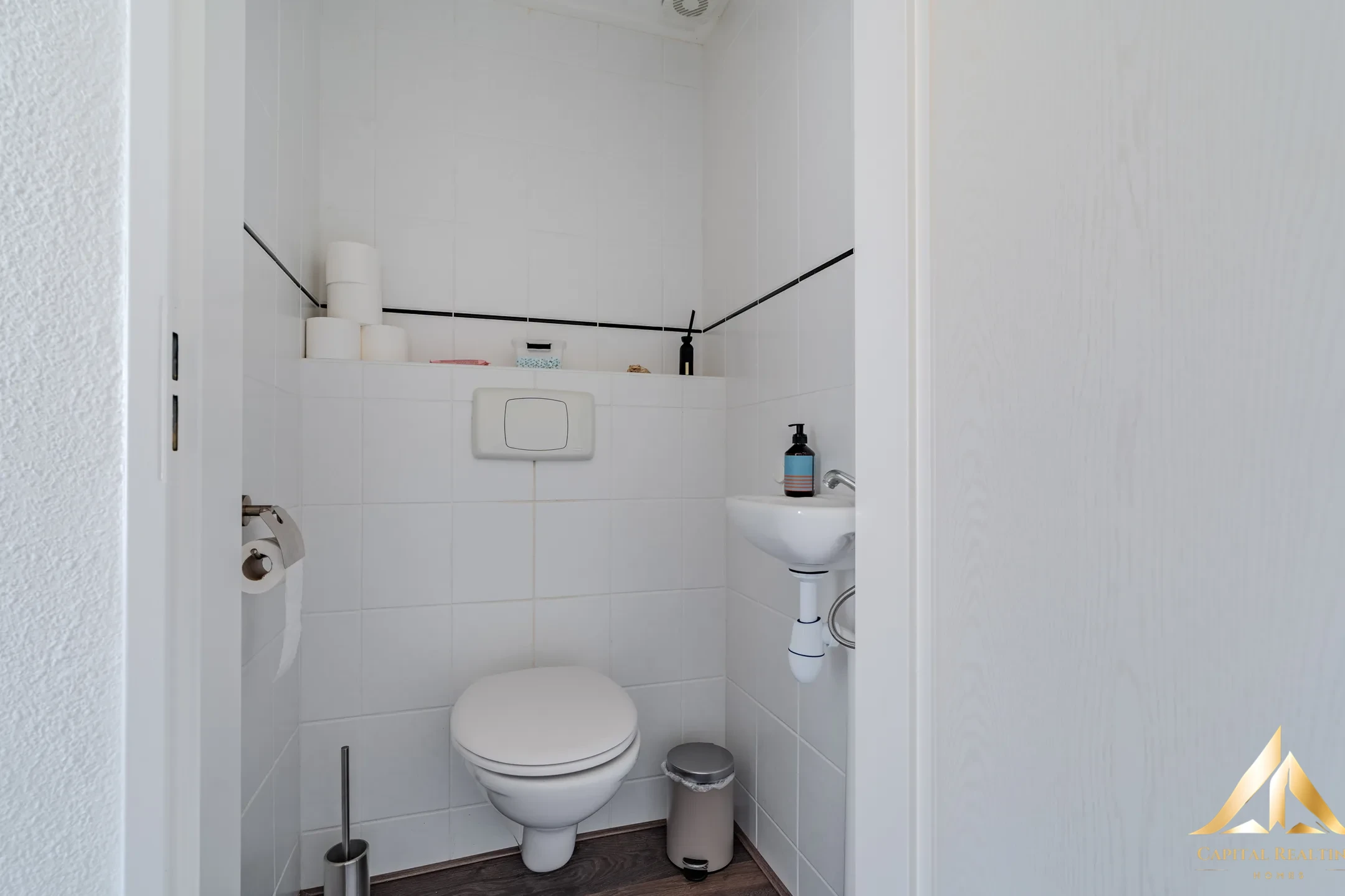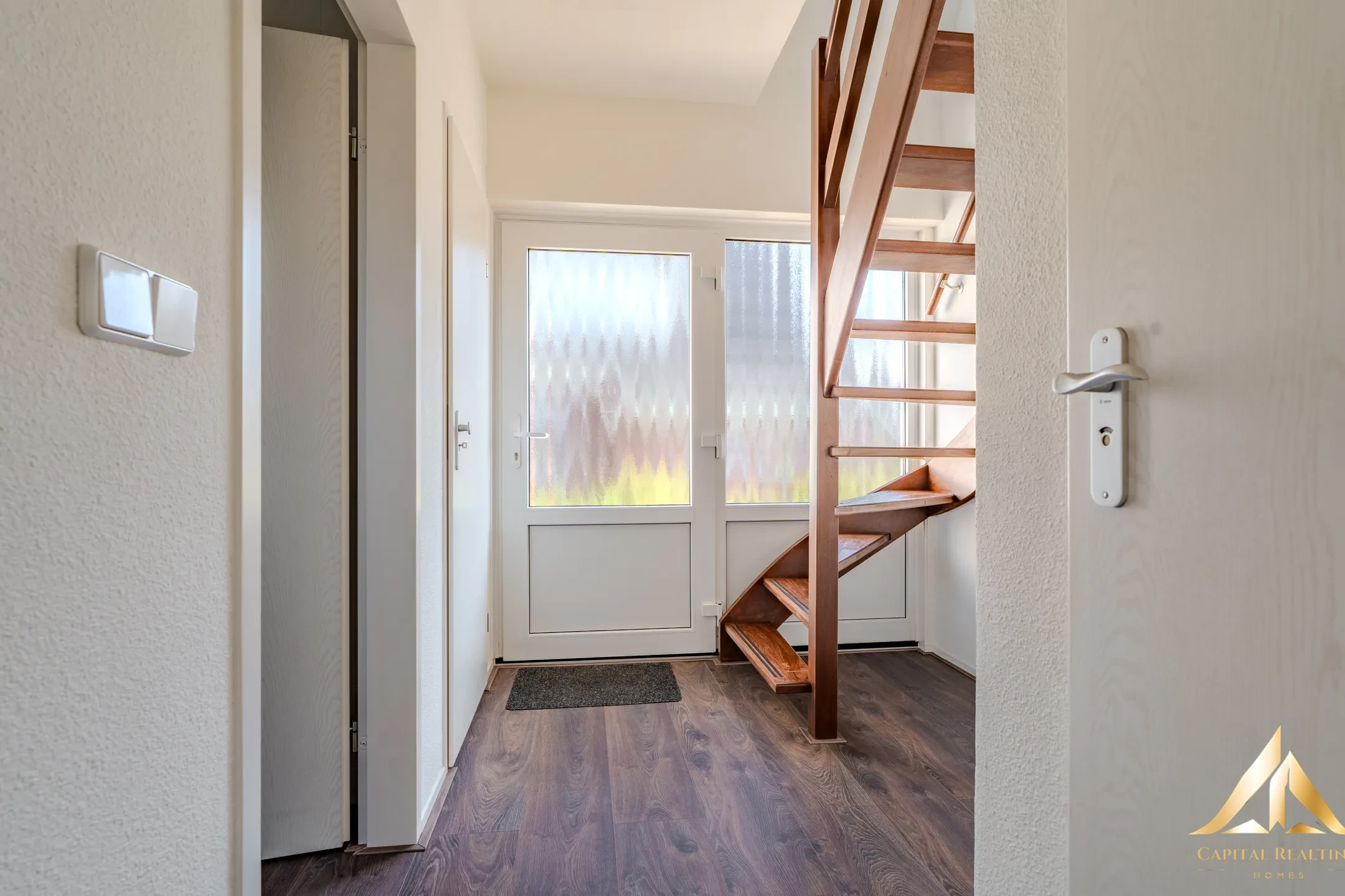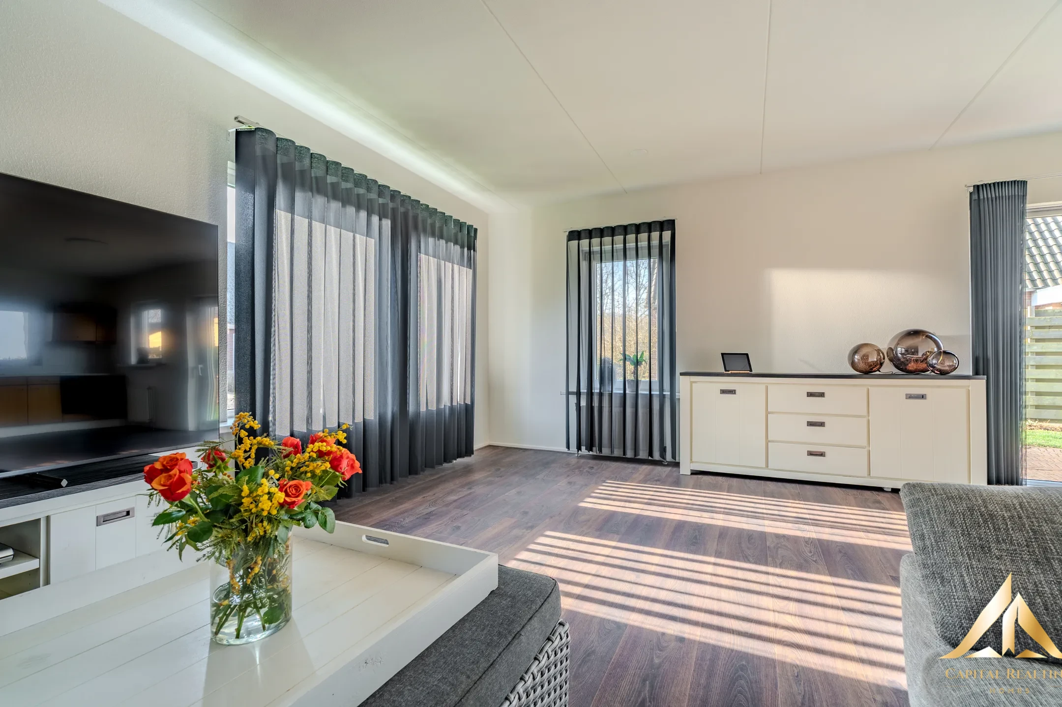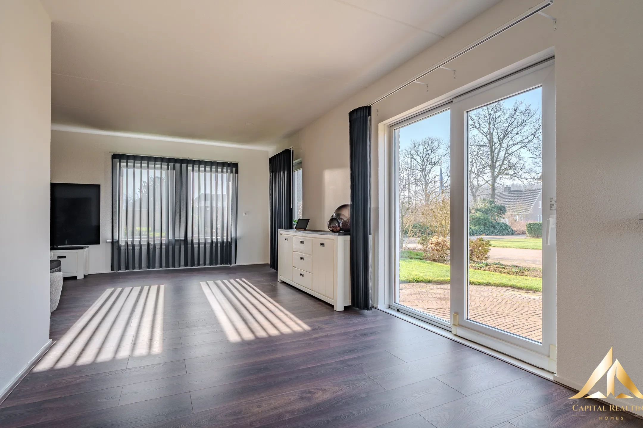 Are you looking for a low-maintenance house with a large garage, beautifully located, and with an unobstructed view over the countryside in a cozy neighborhood in Bellingwolde?, then this nice young house is for you! This energy-efficient house (label A) was built in 1997, is well maintained and is neatly inhabited. Layout: Ground floor: Entrance on the right side with stairs to the first floor, toilet, modern meter cupboard and access to the cozy living room with open kitchen with sliding doors and equipped with electric hob, oven and extractor hood. Through the central hall we enter the utility room with white goods connections, central heating cupboard and door to the garage with concrete floor and electric garage door. First floor: Via the staircase in the hall we reach the landing of the first floor, here are the three bedrooms and the bathroom with walk-in shower, sink and toilet. Attic: Through a hatch in the master bedroom we enter the attic. Garden: In the spacious garden are the ornamental garden at the front and the sun terrace with beautiful unobstructed views over the countryside at the rear. Particularities: -Low-maintenance and energy-efficient living; -Detached with large garage; -Two dormer windows; -Spacious garden with rural views; -Beautifully secluded location in a popular neighborhood; -Central heating Intergas (2025) with radiators; -Plastic frames with insulating glazing; -Plastic gutters and ceramic roof tiles; -Solar panels 20 pieces on east and west side so always yield; -Energy label A.