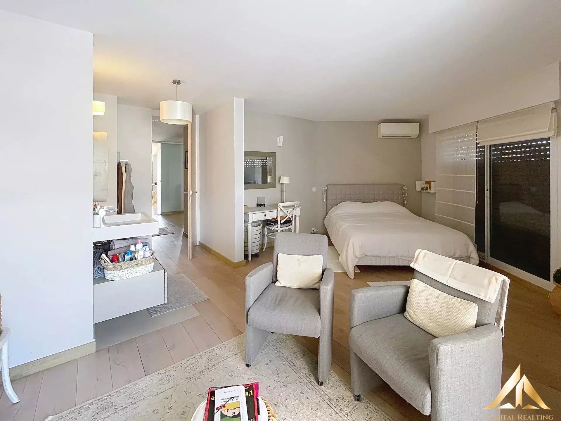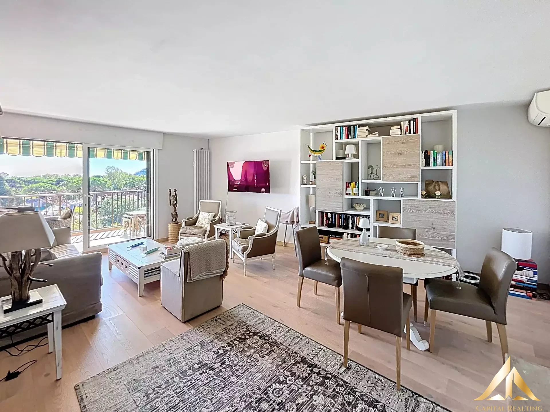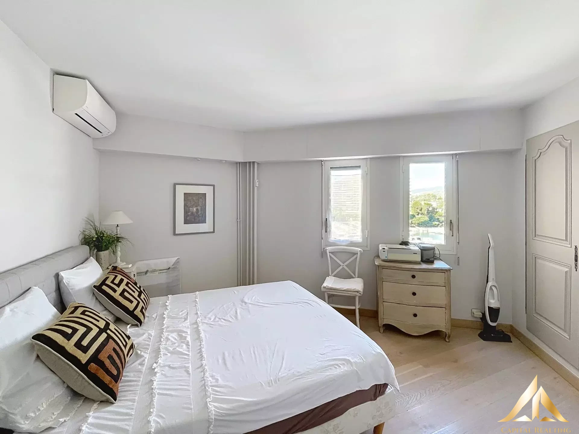 Situated in a secure, well-maintained residence with janitor and swimming pool, this high-floor, walk-through apartment offers a breathtaking view of the golf course and its sea view. This superb 102 m2 apartment, entirely renovated and air-conditioned, comprises a beautiful entrance hall, a fully-equipped kitchen, a large, bright living room opening onto a terrace, a bedroom with en suite bathroom, and a master suite with en suite shower room opening onto a terrace overlooking the marina. Sold furnished. A large garage with electric door and a cellar complete this property. Possibility of acquiring a 10-meter boat slip adjacent to the residence.