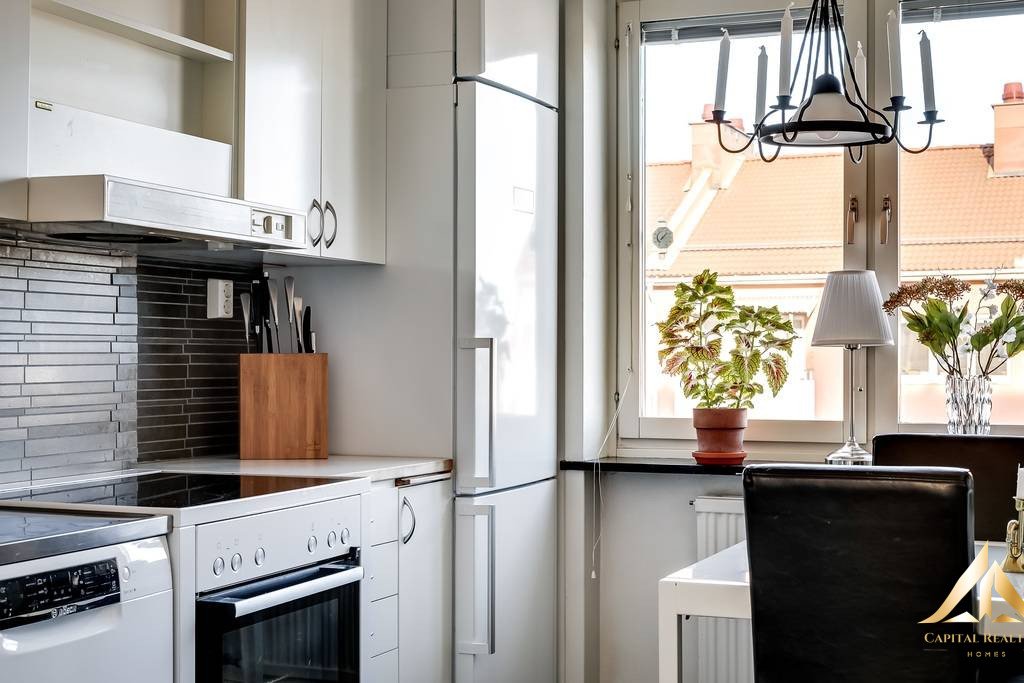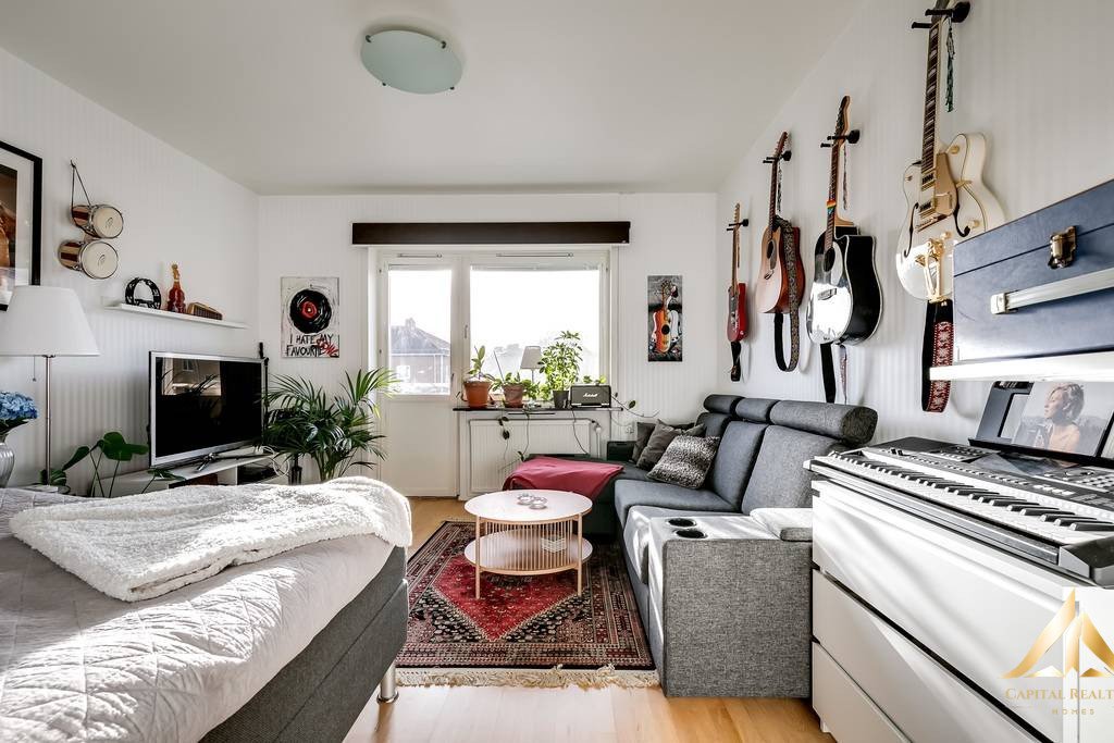 Practical and affordable residence with recently renovated bathroom in 2017 located on the third floor of four with elevator in one of Söder’s most attractive and quiet areas. Here you live in a pleasant environment close to both the city pulse and greenery – the best of both worlds! The highlight of the apartment is the stunning balcony overlooking the rooftops, where you can enjoy the sun from morning to evening. The sun-drenched balcony offers magical evening sun and creates an atmosphere that must be experienced. There is plenty of space for both relaxation and social moments. The home has a stylish kitchen with newly sanded and painted doors as well as new appliances in 2017 and a new fresh bathroom renovated as recently as 2017, which means that you can easily move in and start enjoying yourself without thinking about any major renovations. The apartment is continuous with windows in two directions, which gives a lovely inflow of light and an airy feeling. The surfaces are in good condition, and the home exudes charm and coziness. Here you have a perfect combination of modern functionality and cozy atmosphere. You live in a large and stable HSB association with good finances and well-maintained property, which provides a safe and comfortable living environment. The location on Söder is hard to beat with walking distance to the city, where you have access to a rich selection of shops, restaurants and culture. At the same time, you are close to the peaceful Vrinnevi forest, perfect for walking and recreation. Here you can enjoy both the pulse of the city and the tranquility of nature. This is a charming, affordable and move-in ready home where it is easy to feel comfortable.
