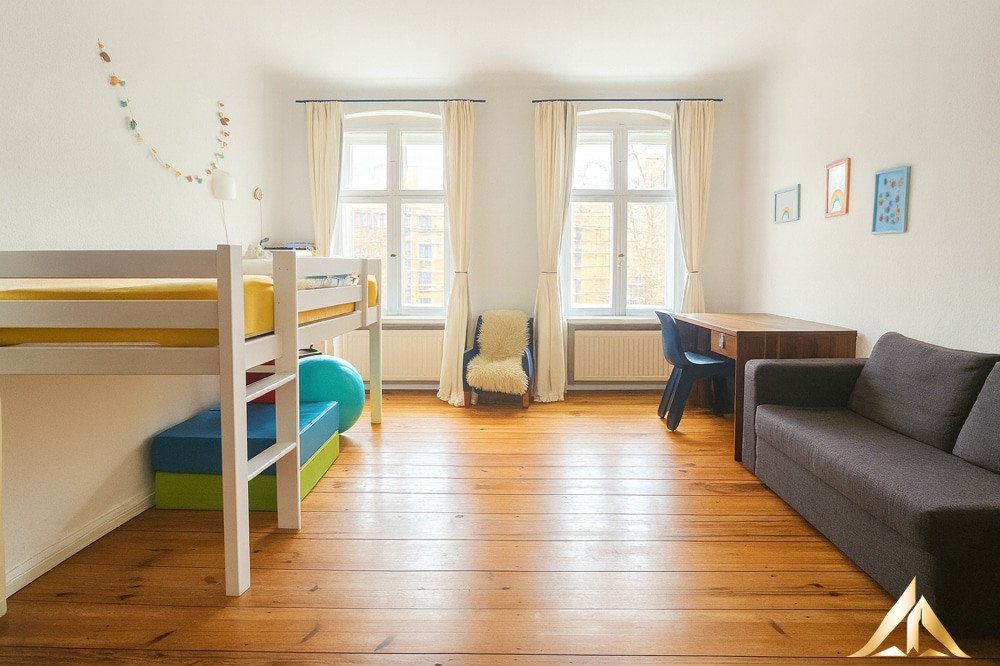 This charming and spacious period apartment is located on a quiet side street in the popular Berlin district of Wedding. Situated on the third floor of a well-maintained historic building from 1918, the apartment impresses with high ceilings, classic wooden floorboards, and a bright, light-filled atmosphere.
