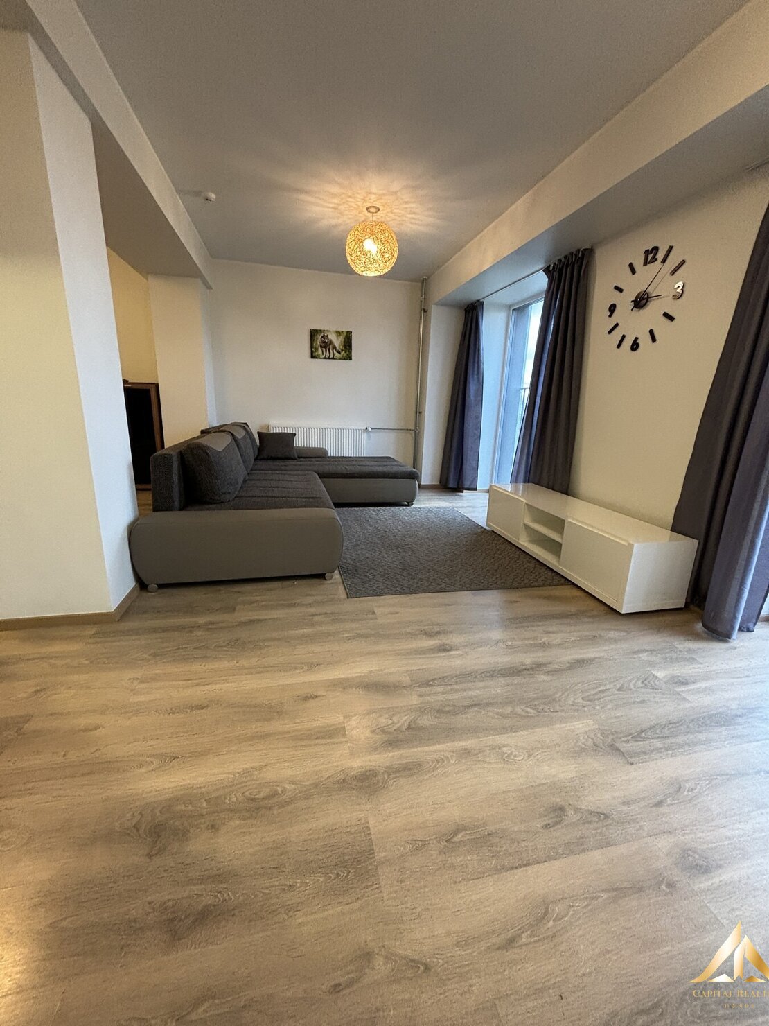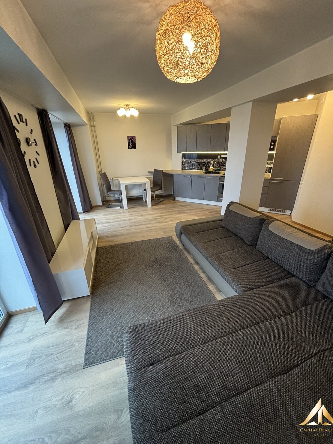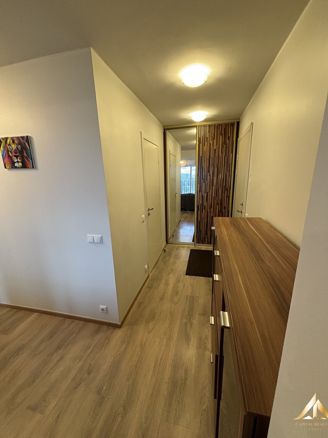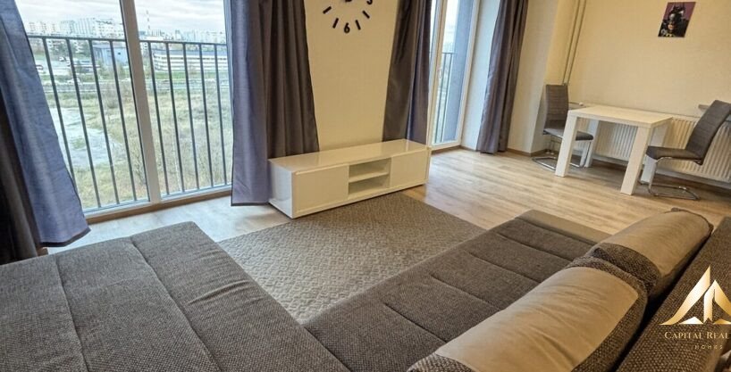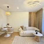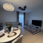 The apartment will have all the furnishings in the pictures – built-in kitchen furniture, high-quality kitchen appliances, washing machine, living room and corridor furniture.