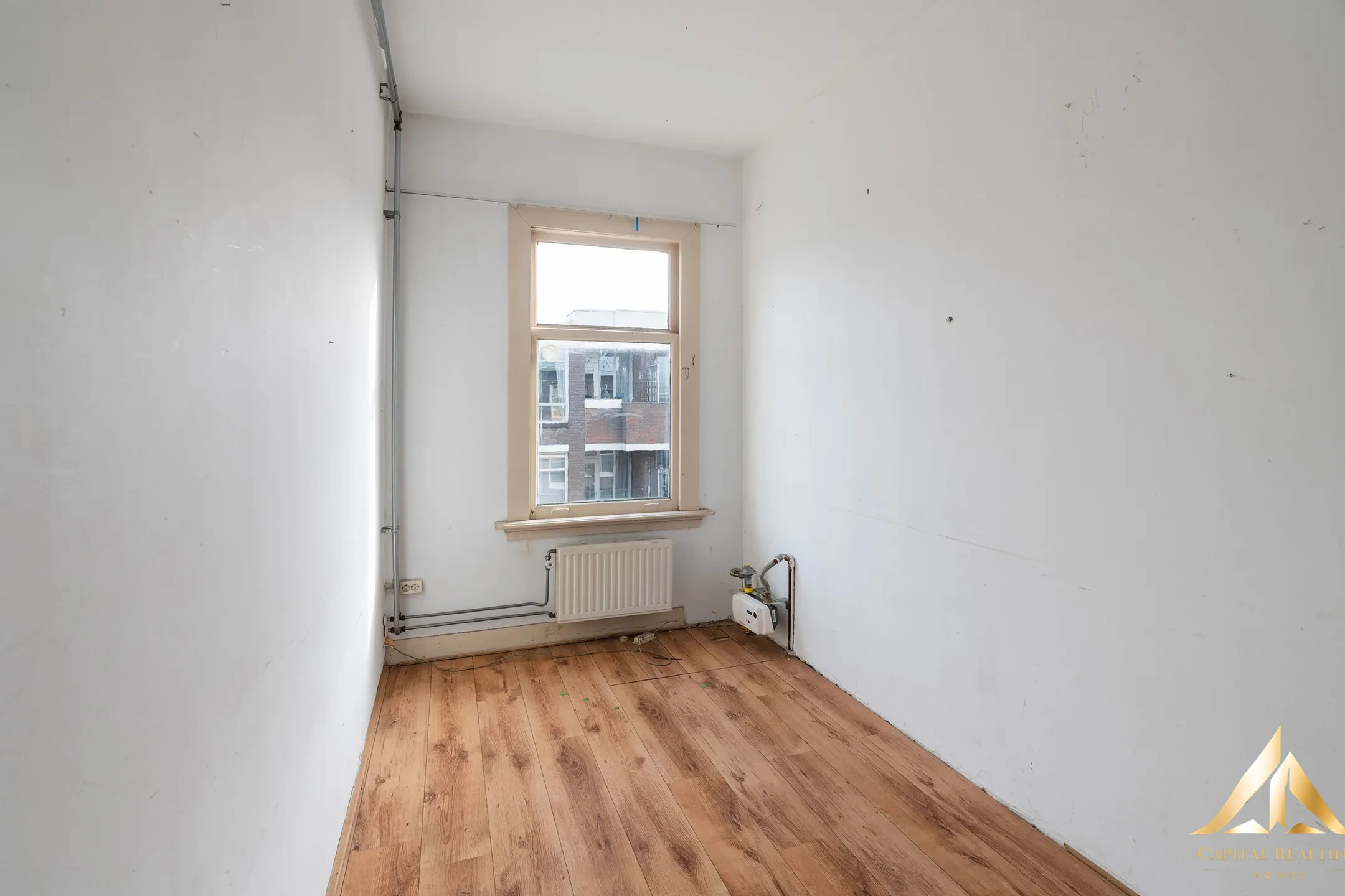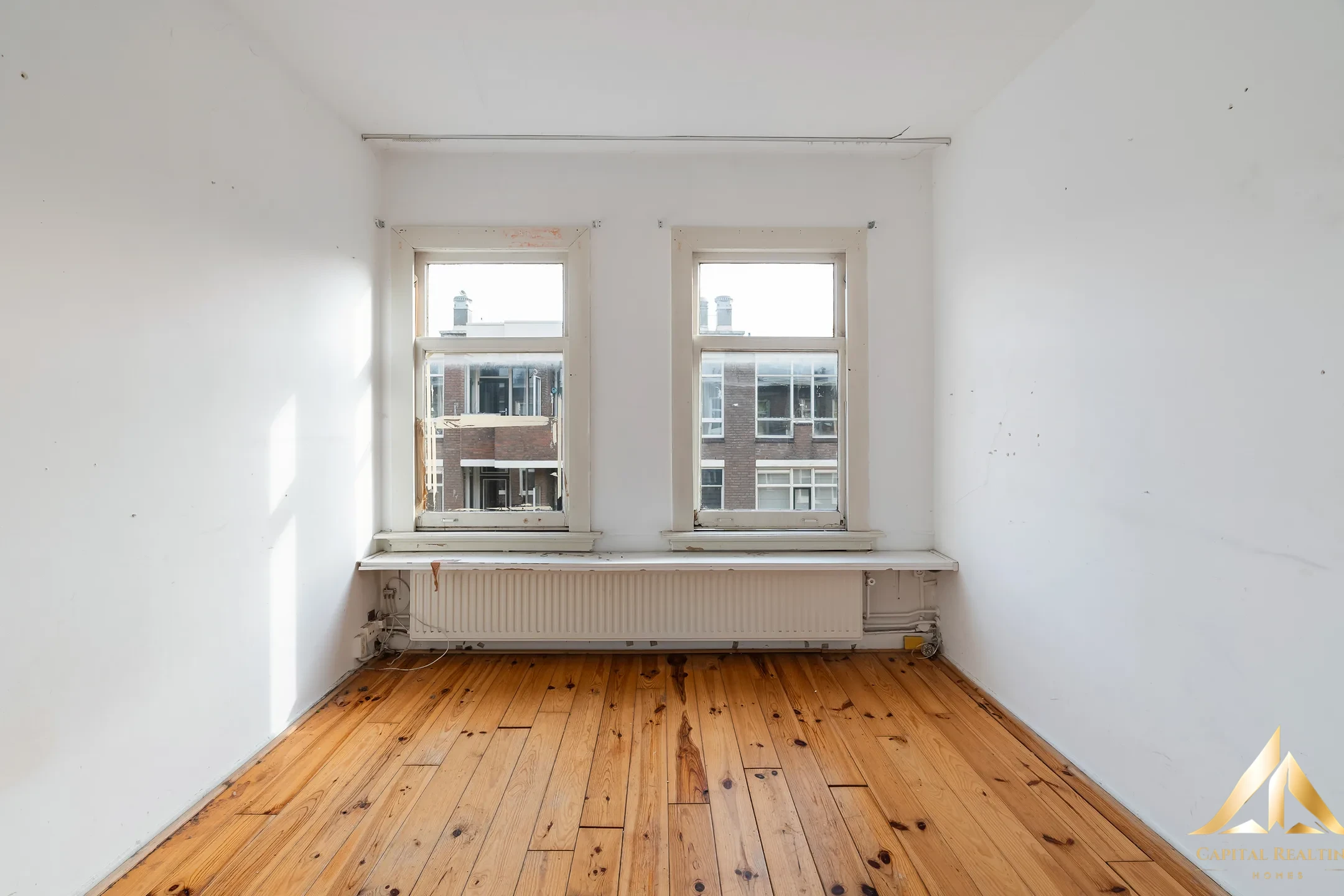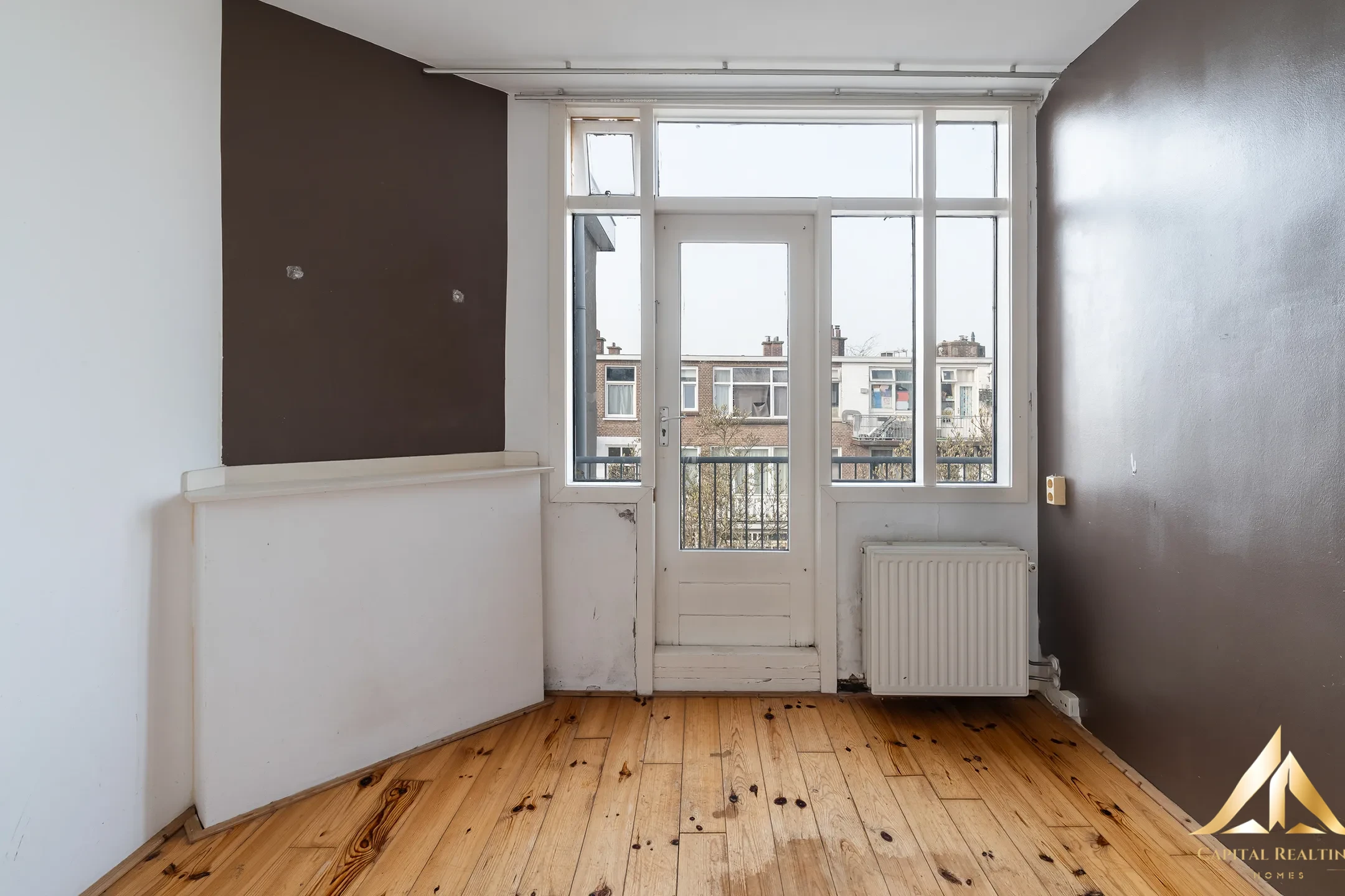 This spacious 4/5 room top apartment on the second floor offers a unique opportunity for those who want to create their dream home completely to their own taste. With a living area of approx. 78m² and a sunny rear balcony on the southwest, the house has an excellent base and plenty of potential. The apartment needs to be completely renovated internally, giving you complete freedom to shape the layout, finish and atmosphere entirely at your own discretion. Location: The Heesterbuurt in The Hague is an attractive neighborhood with an ideal location. You can walk to the Weimarstraat, where you will find a wide range of shops, cafes and eateries. Also, the popular Fahrenheitstraat is only five minutes away. Public transport is just around the corner, making it easy to get around the city. Within ten minutes by bike you are in the bustling center of The Hague. Living in the Heesterbuurt means living quietly with the city always close by.