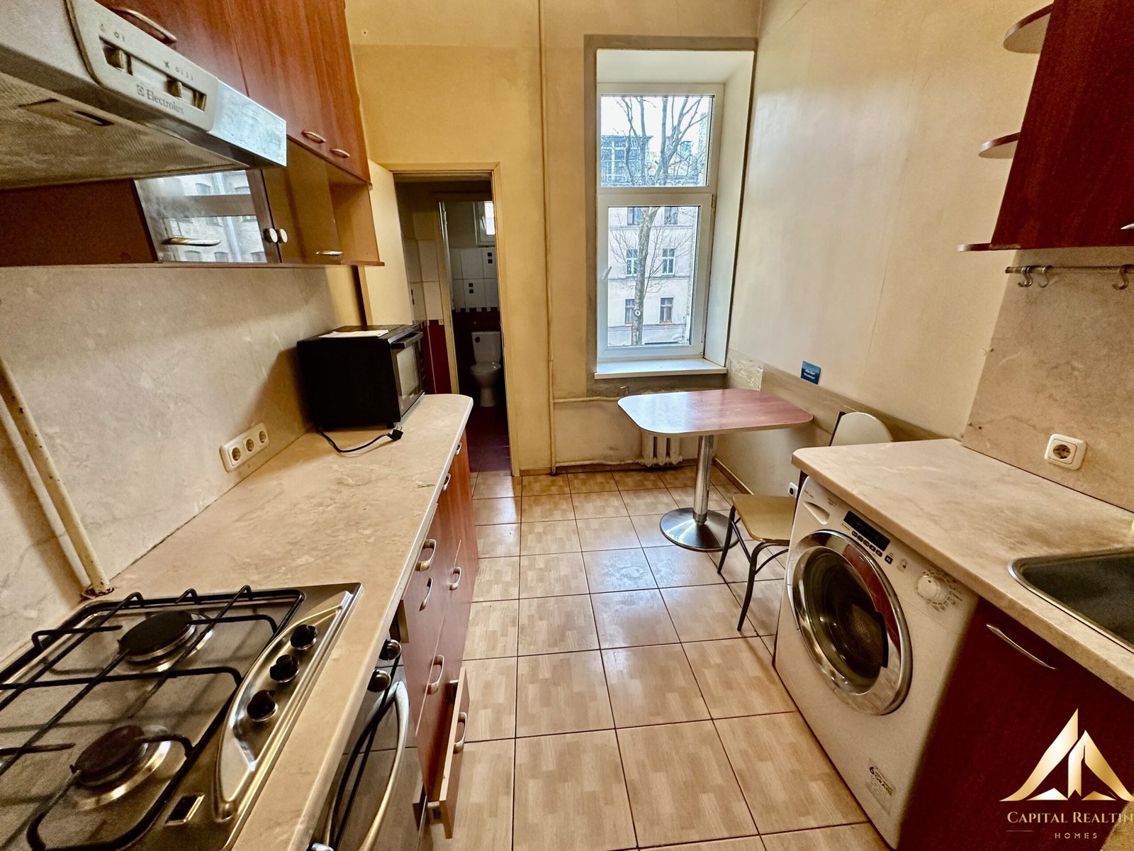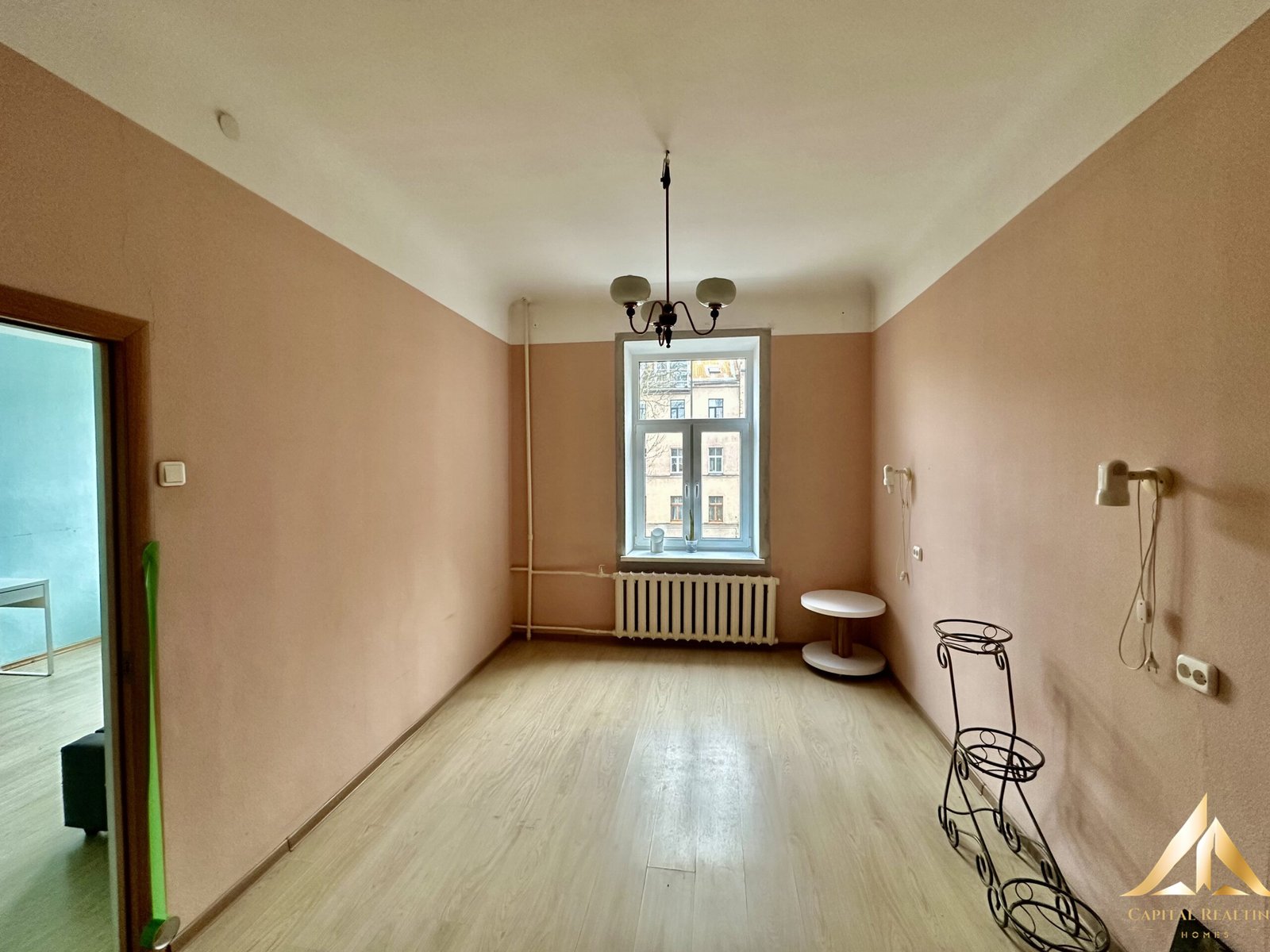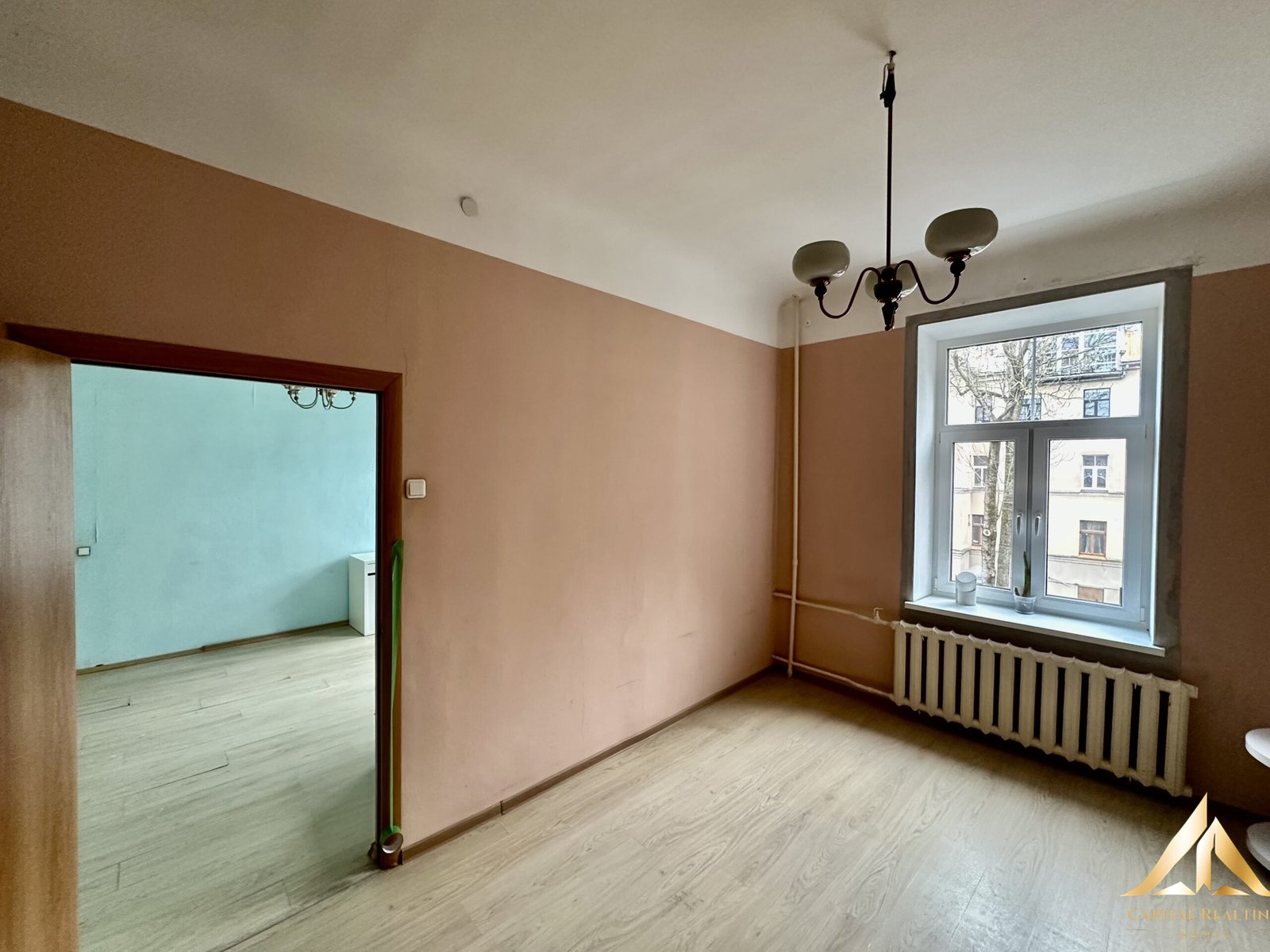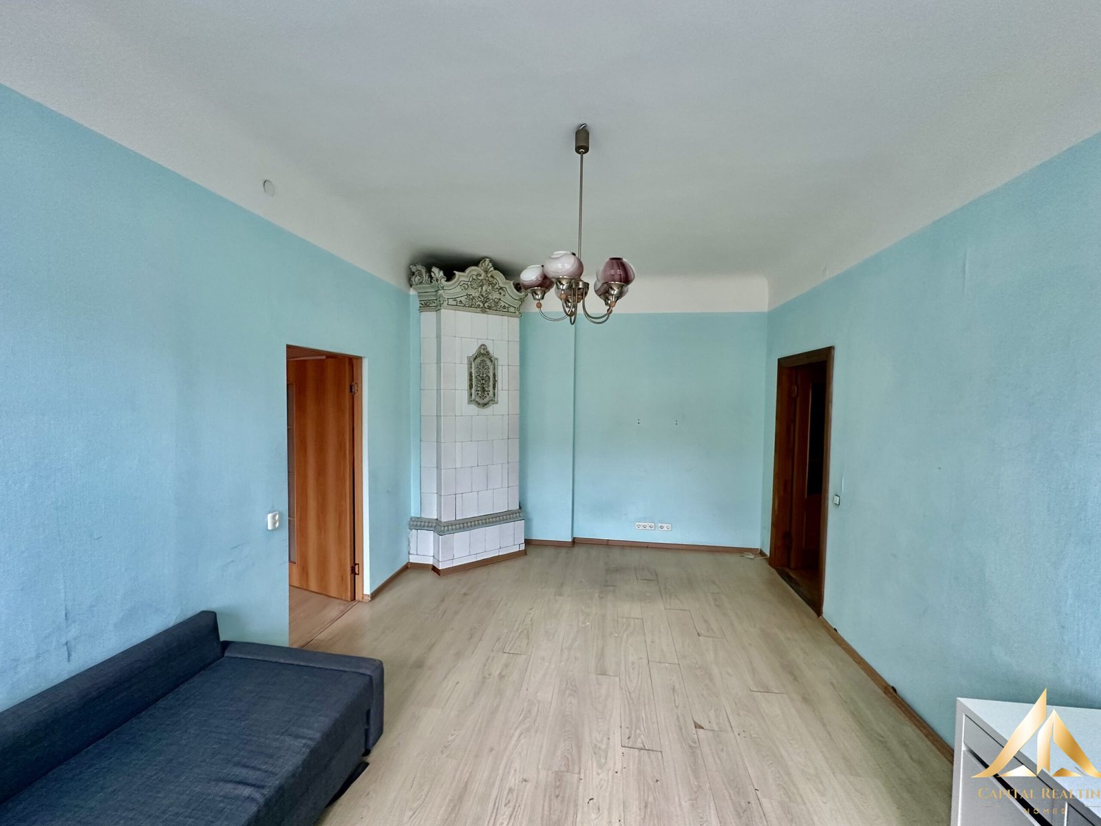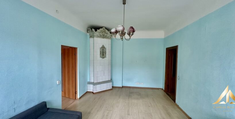 The apartment requires a full renovation, offering you the opportunity to create your dream interior that reflects your style and personality. Original architectural elements bear witness to the building’s history, including a traditional tile stove, 3.1-meter-high ceilings, and large windows.