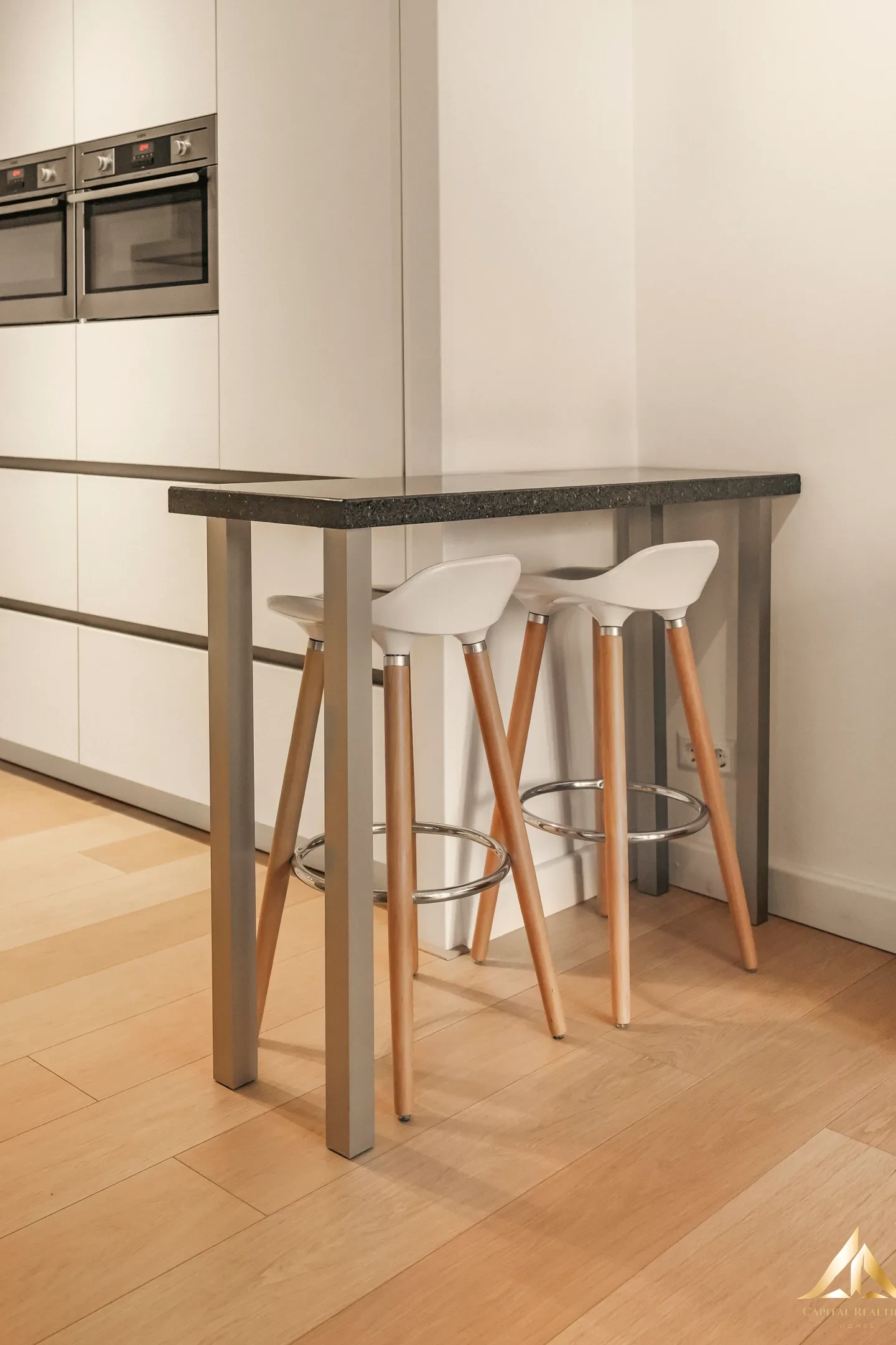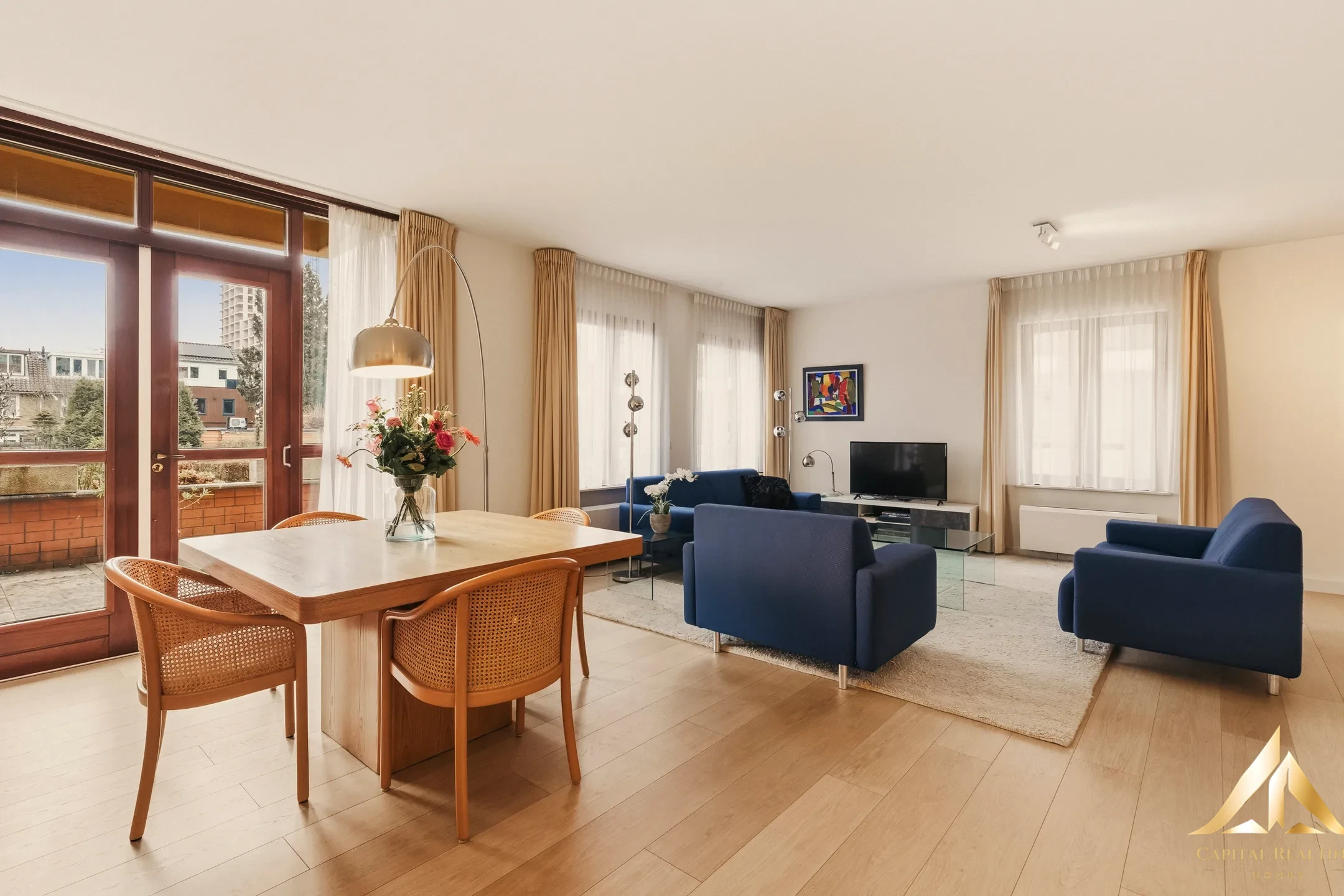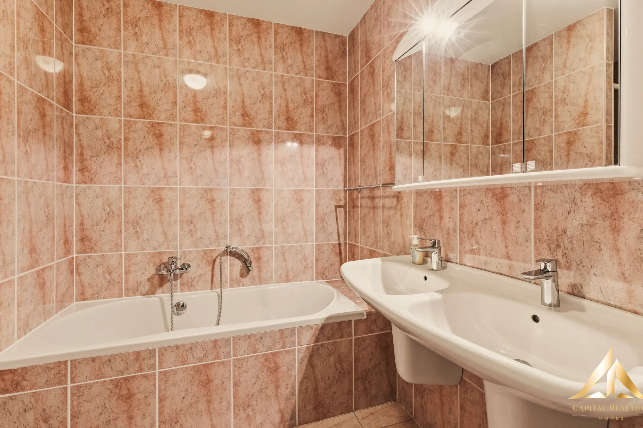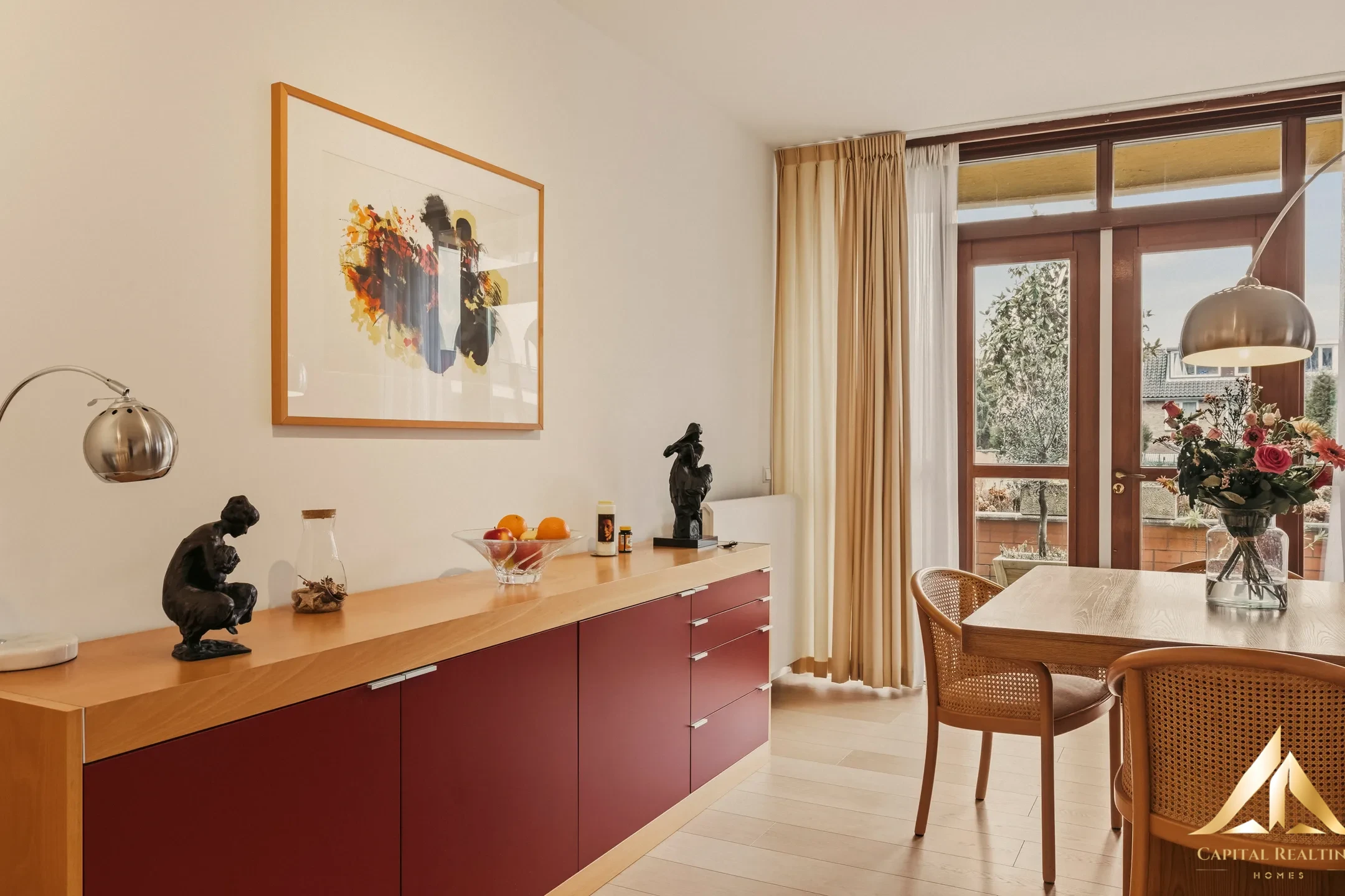 Would you like to live in comfort, in the middle of the bustling city center of Amstelveen? This beautiful 3-room apartment on the ground floor of the exclusive Cortile complex offers the best of both worlds: peace and privacy with all amenities within walking distance. The apartment is uniquely situated on the beautifully landscaped courtyard and has a lovely sunny south-facing terrace. Thanks to the convenient location and the patio doors to the terrace, you can enjoy a bright, attractive living room with a pleasant connection between inside and outside. Layout Through the luxurious central entrance you reach the apartment almost immediately. The spacious hall gives access to all rooms. The spacious living room is characterized by the large windows and the fine light. The open kitchen is fully equipped with an oven, gas hob and fridge/freezer. Adjacent is a practical utility room with space for the washing machine, dryer and central heating system. The house has two comfortable bedrooms, each with its own bathroom. The master bedroom has an en-suite bathroom with bath, shower and double sink. The second bedroom also has its own bathroom with shower and sink.