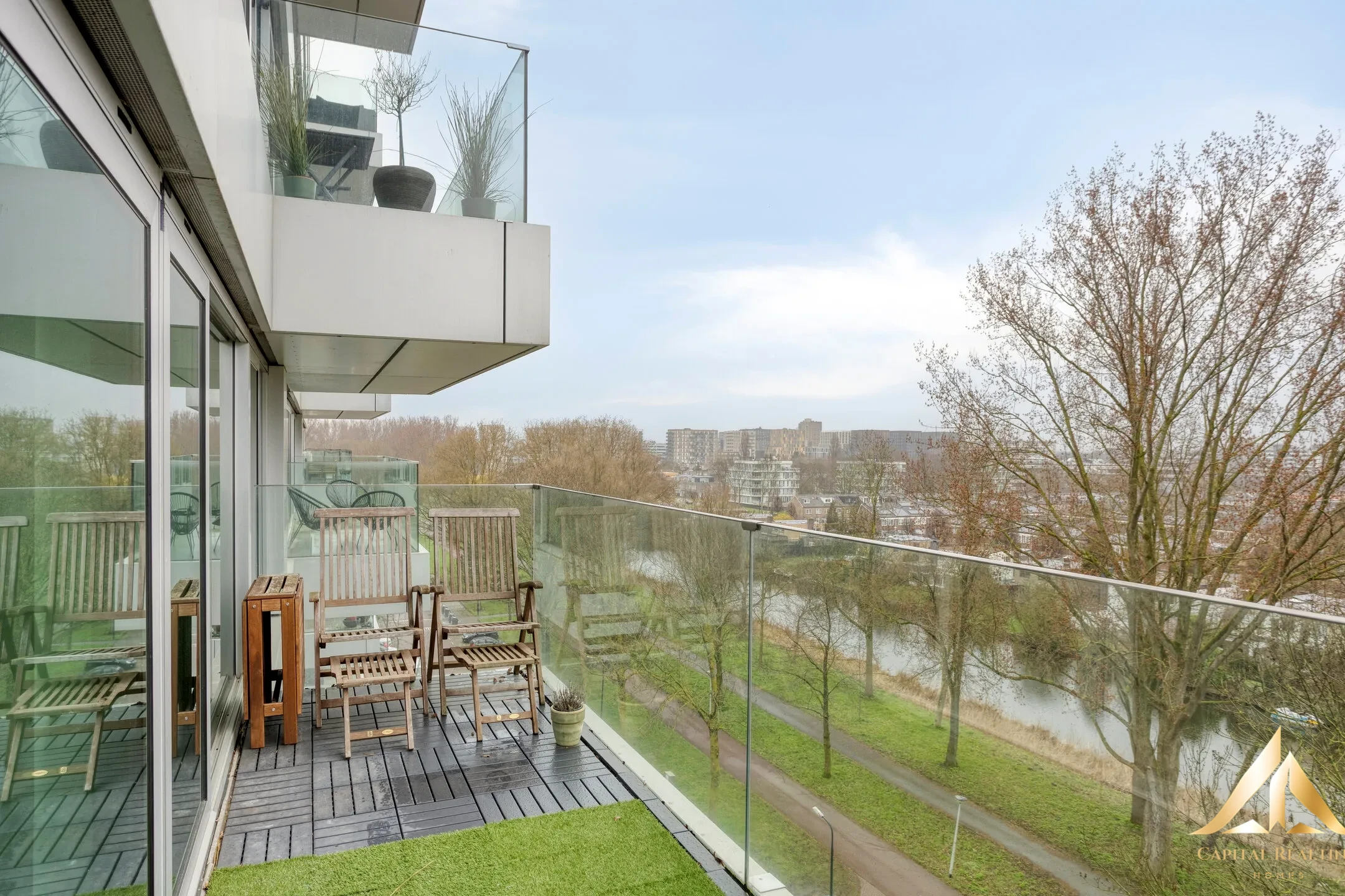 Šviesus ir gerai išplanuotas trijų kambarių butas šeštame modernaus „Aquamarijn“ komplekso aukšte su netrukdomu vaizdu į žalumą ir vandenį. Name yra erdvus balkonas, grindinis šildymas ir privati parkavimo vieta garaže apačioje. „Aquamarijn“, esantis prie vandens ir esantis keturių bokštų Jan van Zutphenstraat gatvėje dalyje, yra 2010 m. Amsterdamo architektūros premijos (Auksinės AAP) laureatas. Tai atsispindi statybos kokybėje ir tvarkingoje viso namo apdailoje. Svetainė su atvira virtuve yra erdvi ir šviesi dėl didelių langų ir iš jos galima patekti į į rytus nukreiptą balkoną. Virtuvė yra moderni, su virtuvės sala, granito stalviršiu ir įvairiais įmontuotais prietaisais, įskaitant orkaitę, kombinuotą mikrobangų krosnelę, indaplovę ir šaldytuvą su šaldikliu. Bute yra du erdvūs miegamieji, iš kurių vienas turi išėjimą į balkoną. Vonios kambarys yra visiškai išklijuotas plytelėmis ir įrengtas su dušu bei praustuvu. Taip pat yra atskiras tualetas. Visame name yra laminuotos grindys su grindiniu šildymu. Rūsyje yra privati parkavimo vieta ir sandėliukas. Pirmame aukšte yra bendra dviračių saugykla. Komplekse įrengti liftai, vaizdo domofonas ir saulės baterijos. Vieta rami ir žalia, Osdorpo ir Nieuw Sloteno pakraštyje. Netoliese yra parduotuvės, mokyklos ir viešasis transportas (1-oji tramvajaus linija). Lengvai pasiekiami keliai į Schipholio oro uostą, Harlemą, Amsterdamą ir kitus oro uostus. Nuomos teisė buvo išpirkta neribotam laikui, o tai suteikia papildomą saugumą ir nereikalauja mokėti žemės nuomos mokesčio – tai svarbus pranašumas, palyginti su daugeliu panašių namų rajone. Ypatybės: • Gyvenamasis plotas apie 74 m² • Pastatymo metai 2009 • Yra šeštame aukšte • Du miegamieji • Į rytus nukreiptas balkonas su neužstojamu vaizdu • Privati automobilių stovėjimo vieta ir sandėliavimo patalpa • Energijos klasė A • Aktyvus VvE, aptarnavimo kaina 233,06 € per mėnesį (įskaitant automobilių stovėjimo vietą) • Centralizuotas šildymas ir mechaninė ventiliacija
