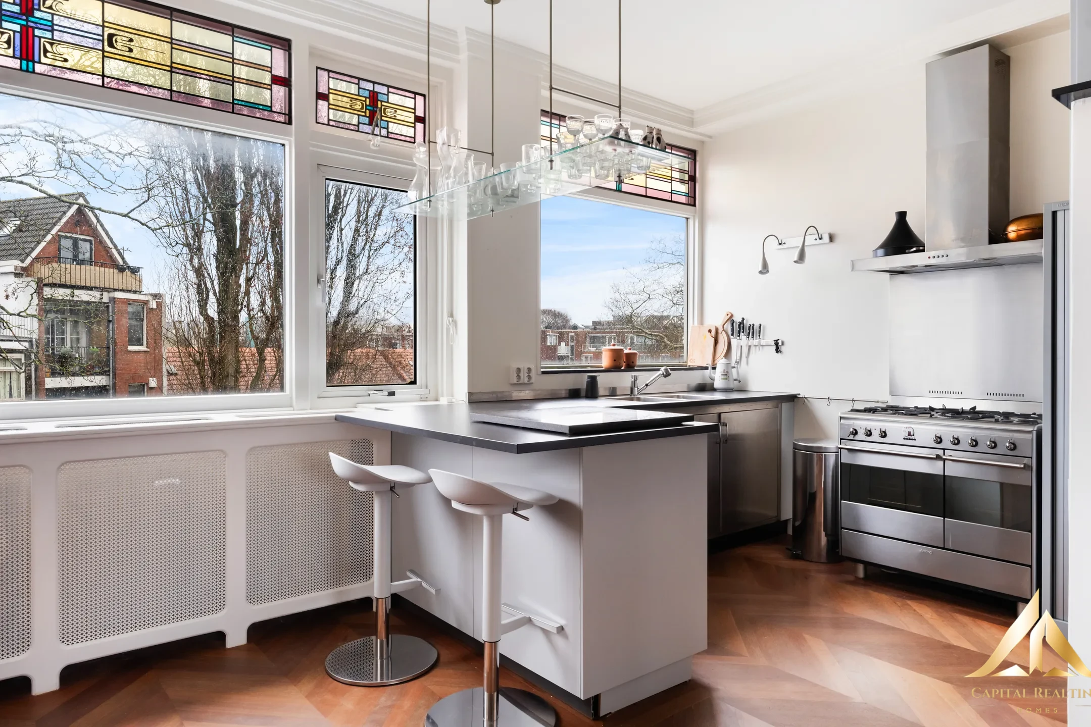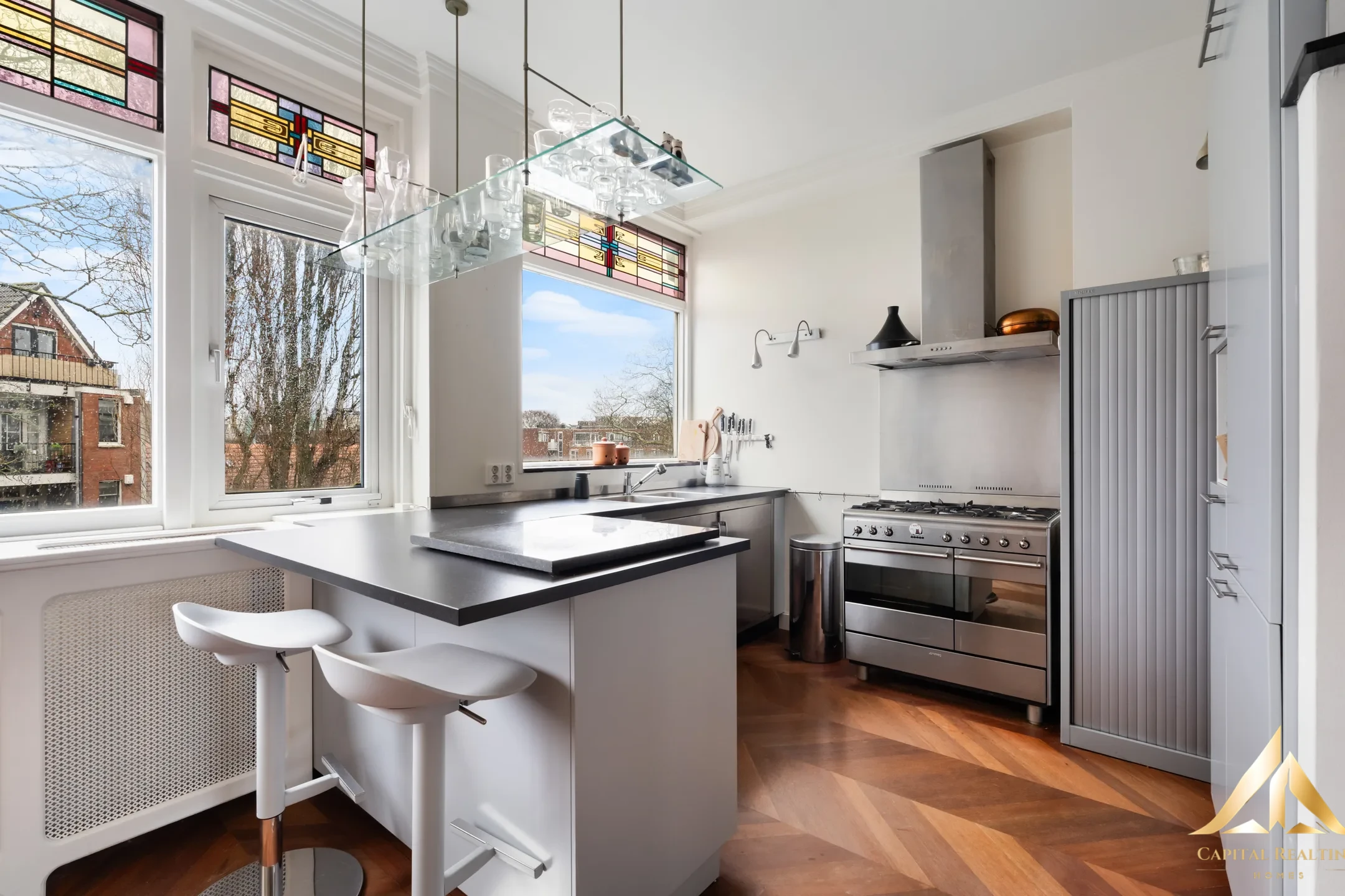 Įsikūręs Rochussenstraat gatvėje, iš kurios atsiveria vaizdas į krantinę, rasite šį erdvų ir charakteringą (trigubą) dvigubą viršutinį namą, kurio plotas ne mažesnis kaip 222 m². Namai, kurie niekada nenustoja stebinti. Ne tik dėl erdvės, šviesos ir vaizdo, bet ypač dėl siūlomų galimybių. Plačios atviros erdvės suteikia jums laisvę susikurti savo erdvę. Įsivaizduokite studiją namuose, darbo vietą, ramią poilsio zoną ar net sveikatingumo zoną, kurioje galėsite visiškai atsipalaiduoti po ilgos dienos. Dideli langai suteikia daug šviesos ir gražų vaizdą į vandenį. Čia patirsite ramybę ir tylą, o miestas tiesiogine prasme yra po jūsų kojomis. Namas, kuriame galėsite gyventi ir augti... Su 6 kambariais, iš kurių 5 yra miegamieji, tai puikūs namai šeimai arba tiems, kurie ieško erdvės derinti gyvenimą ir darbą. Išplanavimas suteikia lankstumo kiekvienam gyvenimo etapui: • Erdvūs miegamieji • Galimybė įrengti darbo ar pomėgių kambarius • Idealiai tinka šeimoms ar dirbantiems namuose Autentiškos detalės, tokios kaip vitražai virtuvėje, suteikia namui charakterio ir šiltos atmosferos. Malonus klasikinio ir patogaus gyvenimo derinys. Vieta ir aplinka… Rochussenstraat yra gyvybinga ir centrinė vieta, kurioje viskas susijungia. Jūs čia gyvenate: • Ant vandens su neužstojamais vaizdais • Netoli centro • Rajone su charakteriu ir istorija