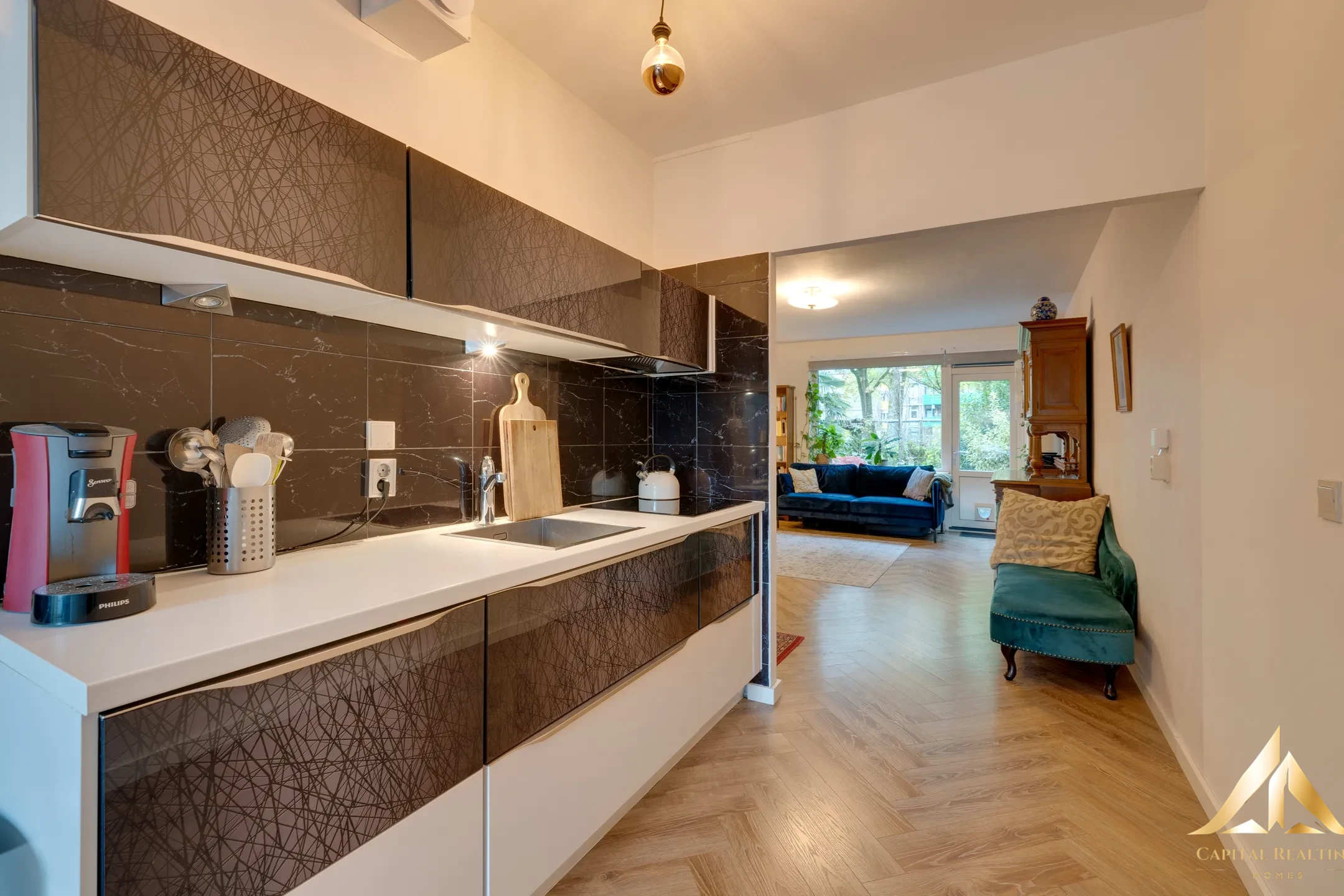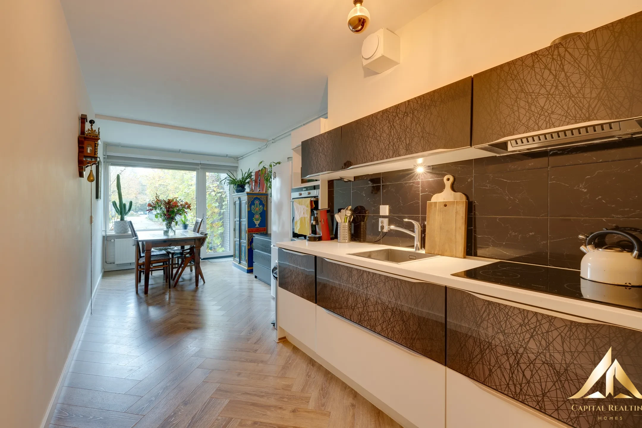 Stylish and high-quality finished apartment with spacious garden Welcome to this beautifully finished and ready-to-move-in 2-room apartment on the ground floor, where comfort, sustainability and style come together seamlessly. The house has a spacious, beautifully landscaped backyard and a charming front garden. A rare combination that creates a wonderful feeling of space and privacy. The finish is of a high level: tightly plastered walls, an elegant PVC floor in herringbone pattern and a modern kitchen and bathroom with a luxurious look. Thanks to the new window frames with HR+++ glazing and energy label A+, you can enjoy a pleasant and energy-efficient living climate all year round. Moreover, the ground rent has been bought off in perpetuity, a valuable and carefree advantage. Living in the green, with the city within reach Located in the popular Holendrecht-Zuid, this house offers the best of both worlds: peace, space and greenery, combined with excellent accessibility and a wide range of amenities. For daily shopping, shopping centers Holendrecht and Reigersbos are a short distance away. For relaxation and recreation, the Gaasperplas, the Gaasperpark, De Hoge Dijk and the Ouderkerkerplas are in the immediate vicinity. In addition, facilities such as the Amsterdam UMC (location AMC), the Johan Cruijff ArenA, Pathé and the Amsterdamse Poort shopping center are quickly and easily accessible. The accessibility is excellent, with Holendrecht metro station and various bus connections within walking distance. The roads (A2, A9, A1 and A10) can also be reached within a few minutes. Parking is widely available in the immediate vicinity. Layout, light, space and sophistication Upon entering, you immediately notice the neat finish. The hall provides access to a separate toilet, meter cupboard and a large storage room. The living room is the heart of the house: a bright, attractive living space with large windows that provide beautiful light. The high-quality finish and calm color scheme create a warm and stylish ambiance. From the living room you can step straight into the sunny backyard on the northwest, a wonderful place to relax or enjoy long summer evenings.