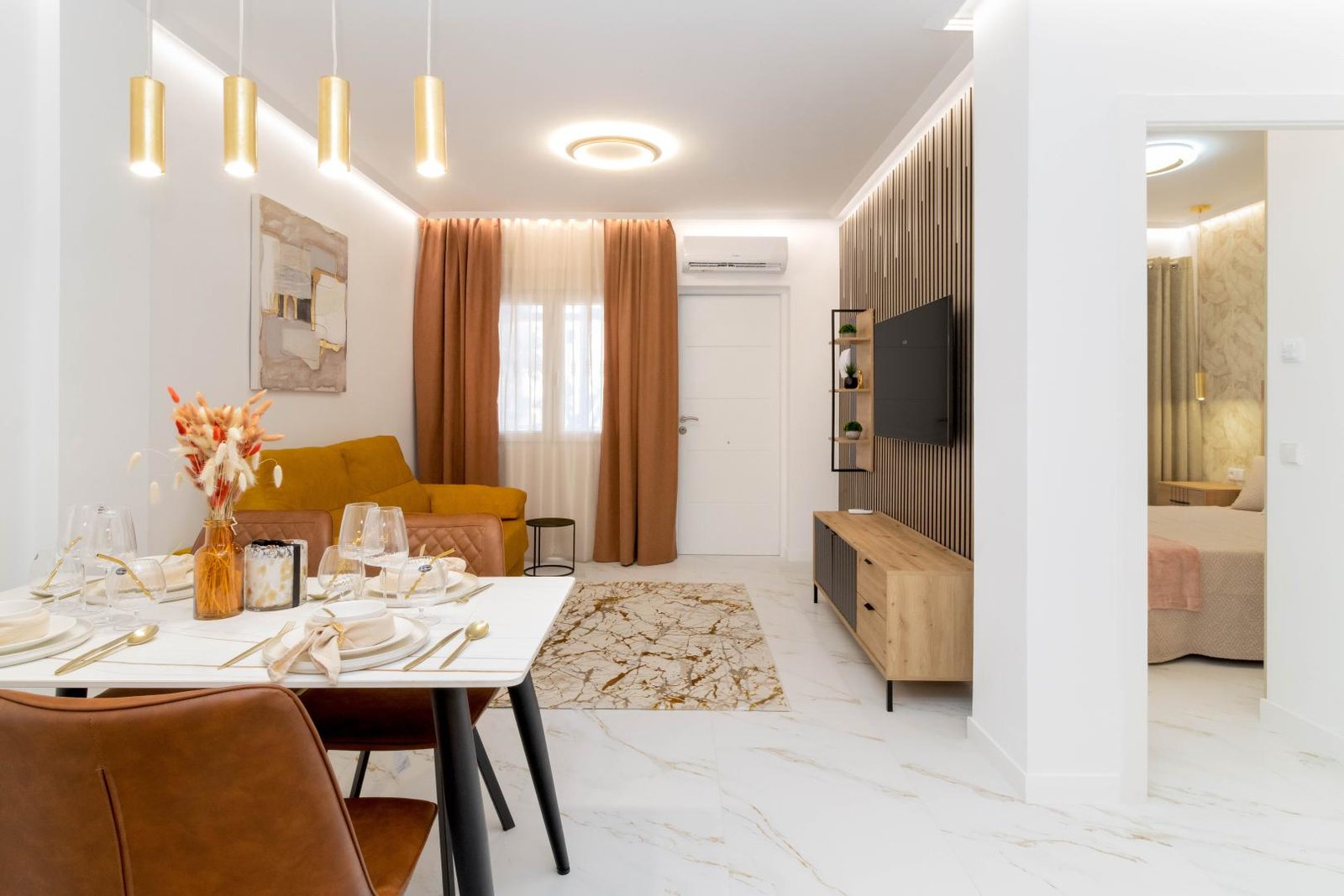 The property is fully furnished and has all the necessary household appliances.