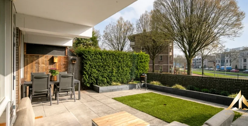 This modern apartment combines the convenience of living on the ground floor with a practical layout and a central location near the center. In addition, the house is completely ready to move in, so you can enjoy it immediately without any jobs. One of the big pluses of this apartment is the surprisingly spacious garden. The garden is fully tiled and therefore low maintenance, but thanks to the new borders the whole still has a green and well-kept appearance. This creates a nice outdoor space where you can sit and relax in peace and quiet – a valuable addition to the living comfort of the apartment.The apartment has two bedrooms, both equipped with large windows that provide a bright and pleasant atmosphere. The bathroom is fully tiled and furnished with a shower, design radiator, bathroom furniture and a connection for the washing machine.
