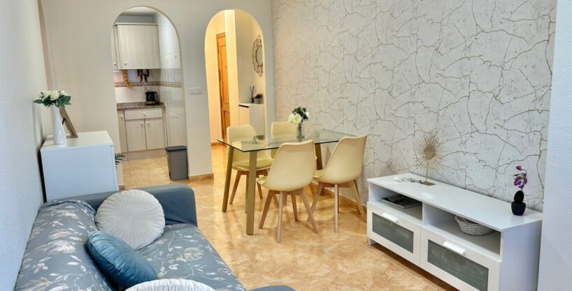 Apartment with two bedrooms is for sale, after cosmetic repair, in the city of Torrevieja, not far from del Cura beach. The apartment has two bedrooms, one bathroom, a kitchen, a living room with access to the terrace.