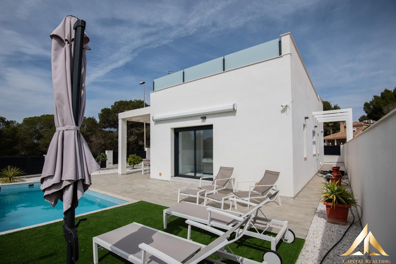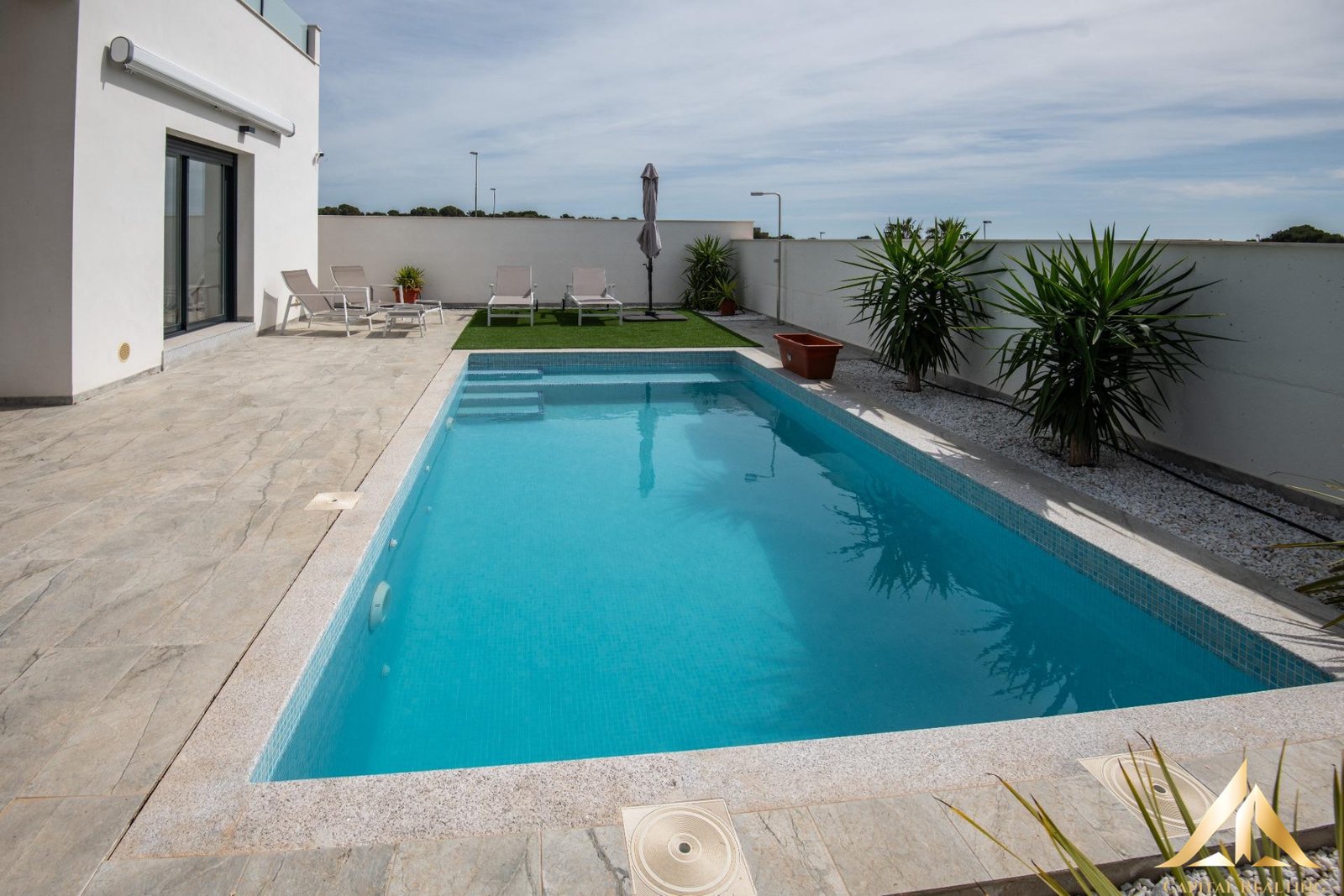 Imagine relaxing by your own private pool while soaking up the Mediterranean climate. Convenient parking is also available within the gated community where this villa is located. Its northeast orientation allows you to enjoy the best times of day without the extreme heat. You’ll