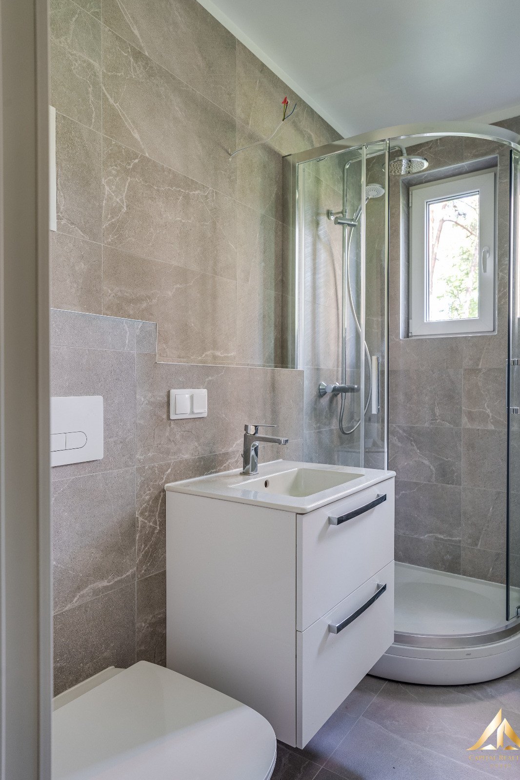 For sale a modern 1-bedroom apartment with full interior finish in a renovated project Priežu Nami, on Kr. Valdemāra street 13, Jaundubulti, Jurmala. The property is surrounded by a pine forest on two sides, the sea can be reached in 10 minutes on foot, and Riga in 30 minutes by car.