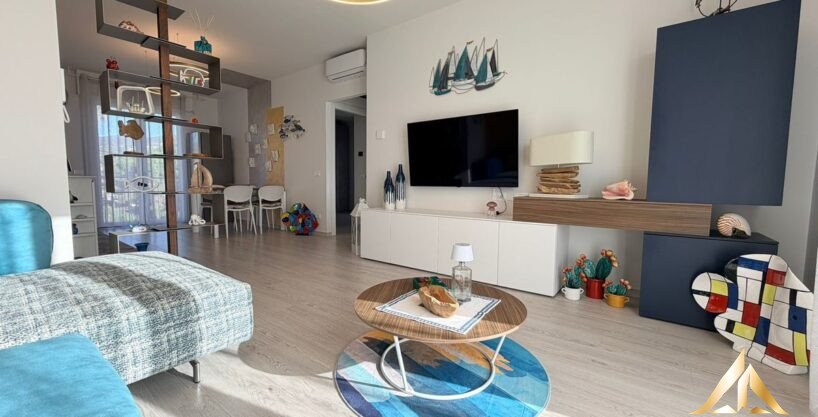 Discover this splendid three-room apartment located on the third and last floor of a recently renovated building (2024), consisting of only six residential units. Just 500 meters from the sea, this property represents the ideal choice for those seeking comfort and tranquility. Thanks to its triple exposure (North, East, South), every room enjoys extraordinary natural light and offers access to livable balconies with panoramic views. The large open-space living area is perfect for spending moments of relaxation and conviviality. The two double bedrooms, one of which is used as a walk-in closet, guarantee space and functionality. The bathroom with window, equipped with a modern shower box, completes the unit. Underfloor heating, powered by photovoltaic panels on the roof and heat/cold pumps, ensures optimal comfort in all seasons and minimal running costs. It is important to note that the property is sold fully furnished with high-quality furniture. The apartment is barrier-free, making it accessible even to people with limited mobility. Located in a residential area convenient to all services and beaches, this property is the perfect solution for those who want to live in a modern and functional setting. Don’t miss the opportunity to purchase the attic above with a large terrace and 360° view. The included cellar and underground parking space complete this unmissable offer!