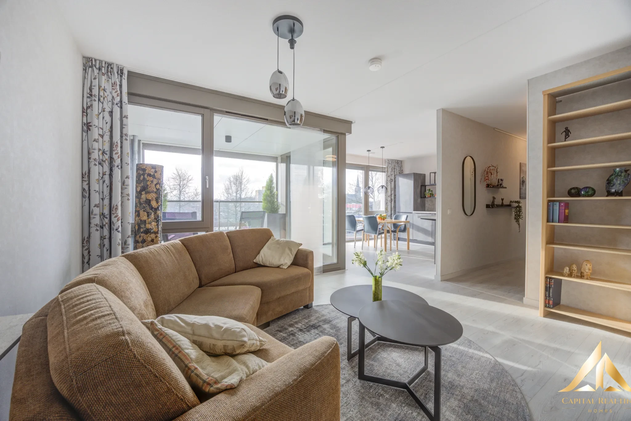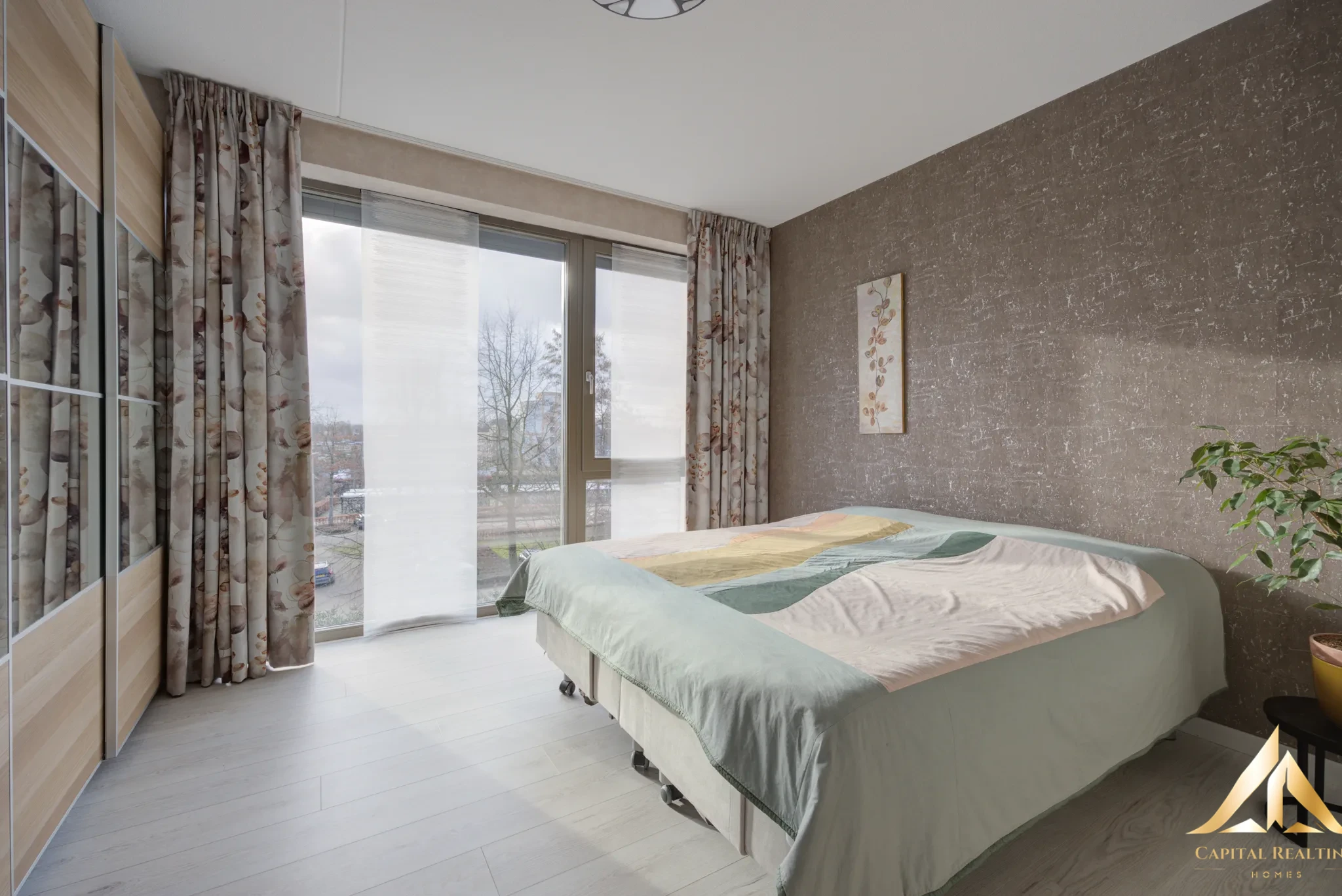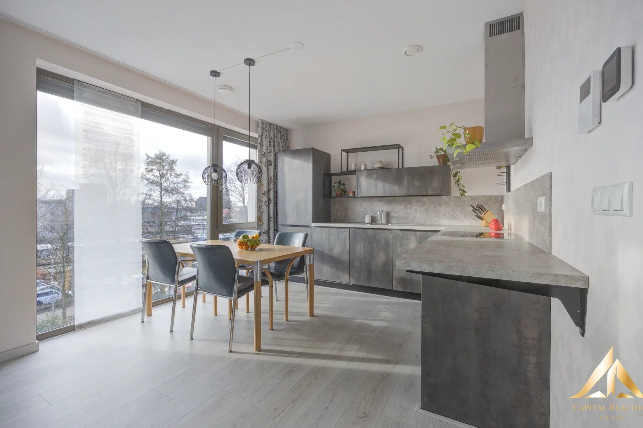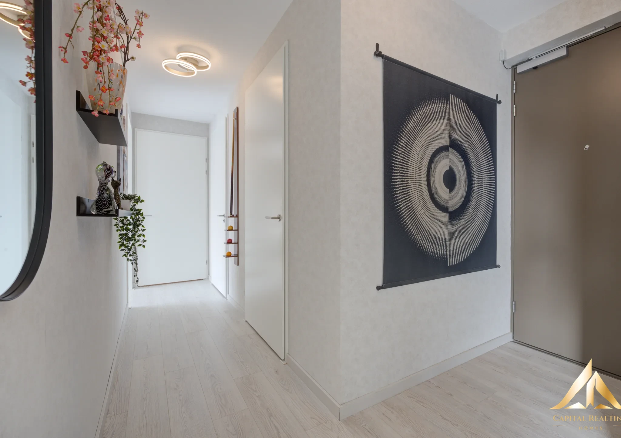 Are you looking for a ready-to-move-in 2-room apartment with various amenities within easy reach? Then don’t skip this apartment at Zonnestad 77! Here you have a living room with open kitchen, a bright, spacious bedroom and a neat bathroom. In addition, a spacious indoor balcony that faces south. So here you can enjoy the sun! The apartment is also very energy efficient, because it is gas-free, fully insulated, equipped with 7 solar panels and underfloor heating. The cozy center of Etten-Leur with many amenities is also nearby and the railway station within walking distance. Have you become curious? Contact our office and we will be happy to schedule a viewing with you! Central entrance: Entrance with doorbells, intercom system and mailboxes, staircase and elevator installations that provide access to the third floor where the apartment is located. Layout apartment – living room with open kitchen, bright bedroom and neat bathroom We enter the apartment through the hall, which gives access to all rooms. Here you will find the partly tiled toilet room (with floating toilet and fountain), the storage room, the living room, the bedroom and the bathroom. The living room with open kitchen is the heart of the apartment. A sitting and dining area has been created here. Thanks to the open layout and the pleasant light, you will experience a wonderful spacious feeling here. Cooking, dining and relaxing merge effortlessly here. The kitchen is designed in a corner unit and has plenty of cupboard space, a 4-burner induction hob with extractor hood, a refrigerator, a freezer, a dishwasher, a sink and a plastic worktop. From the kitchen you step directly onto the indoor balcony. From the hall you reach the storage room. Here, the heat pump, the heat recovery system, the connections for the washing equipment and the inverter of the solar panels are neatly arranged. Practical and out of sight. The bedroom is spacious and wonderfully light thanks to the large windows. A pleasant place to start the day relaxed when the first rays of sunshine fall in. The neat bathroom has a walk-in shower, a sink with a furniture, a floating toilet and a design radiator. Balcony The indoor balcony is located on the sunny south, so you can enjoy the sun to the fullest. A wonderful place to relax after a long day. Parking space and storage room The apartment has its own parking space with storage in the parking basement. This way you are always assured of a parking space. The storage room is equipped with lighting and electricity, ideal for extra storage or charging, for example, an (electric) bicycle.