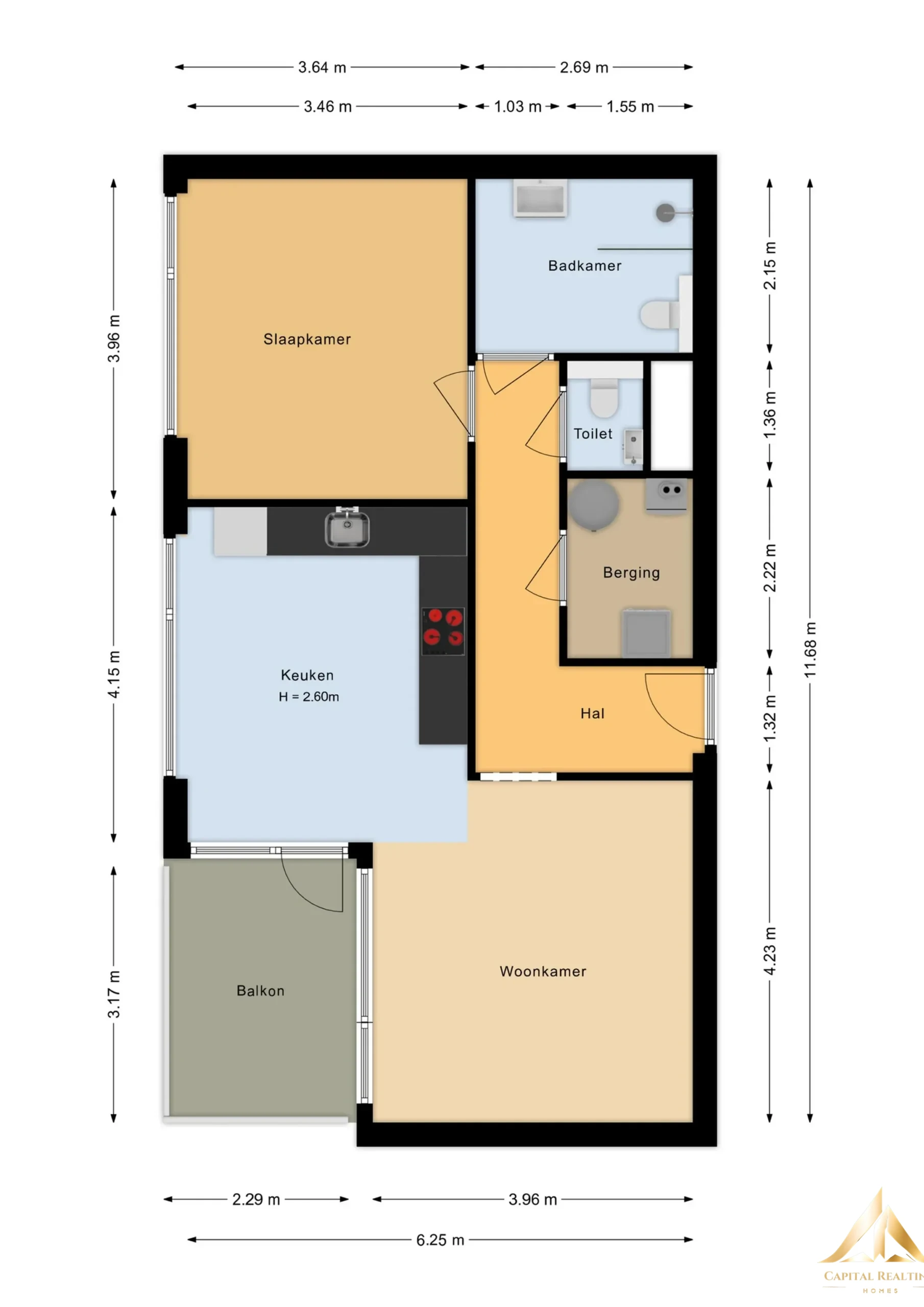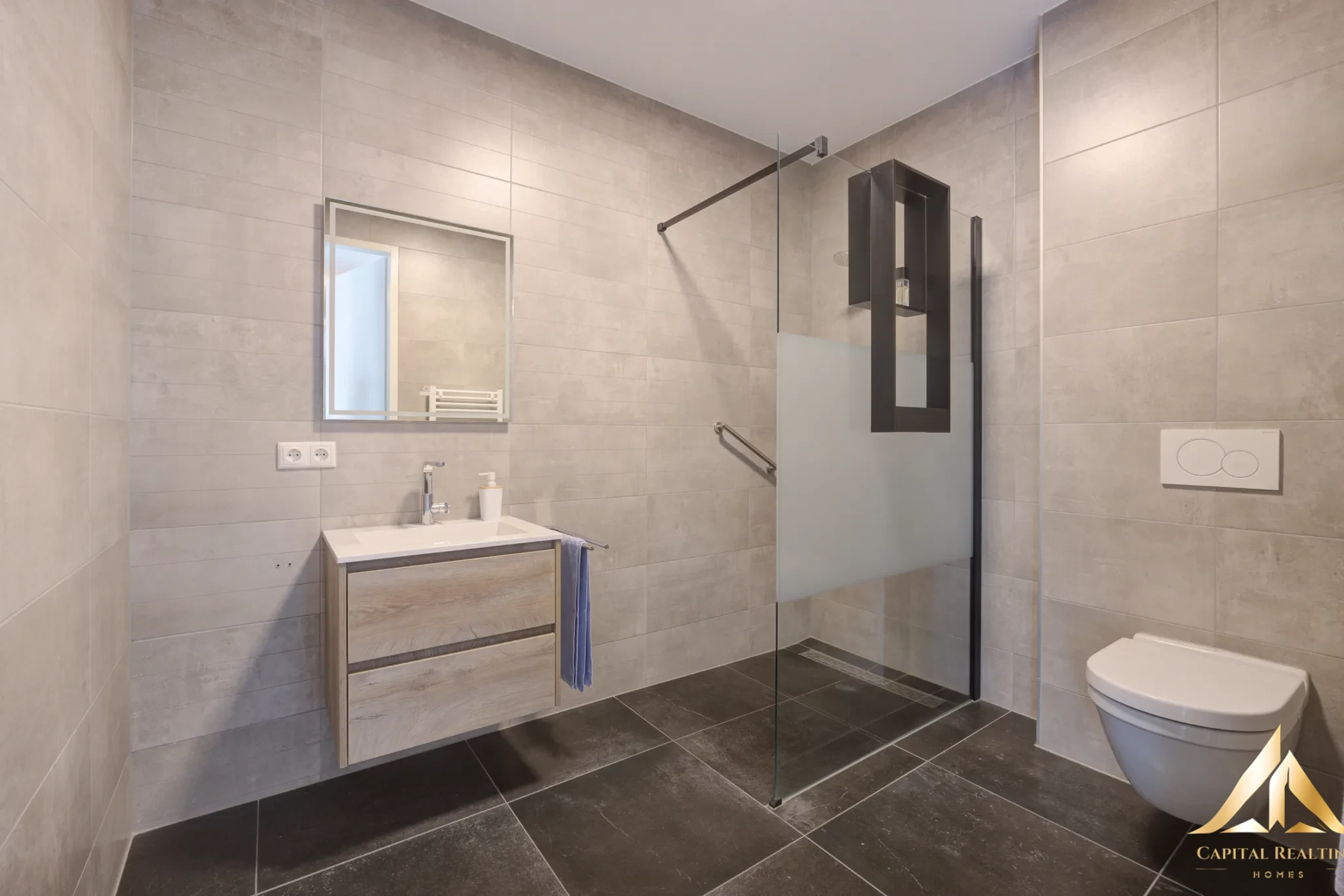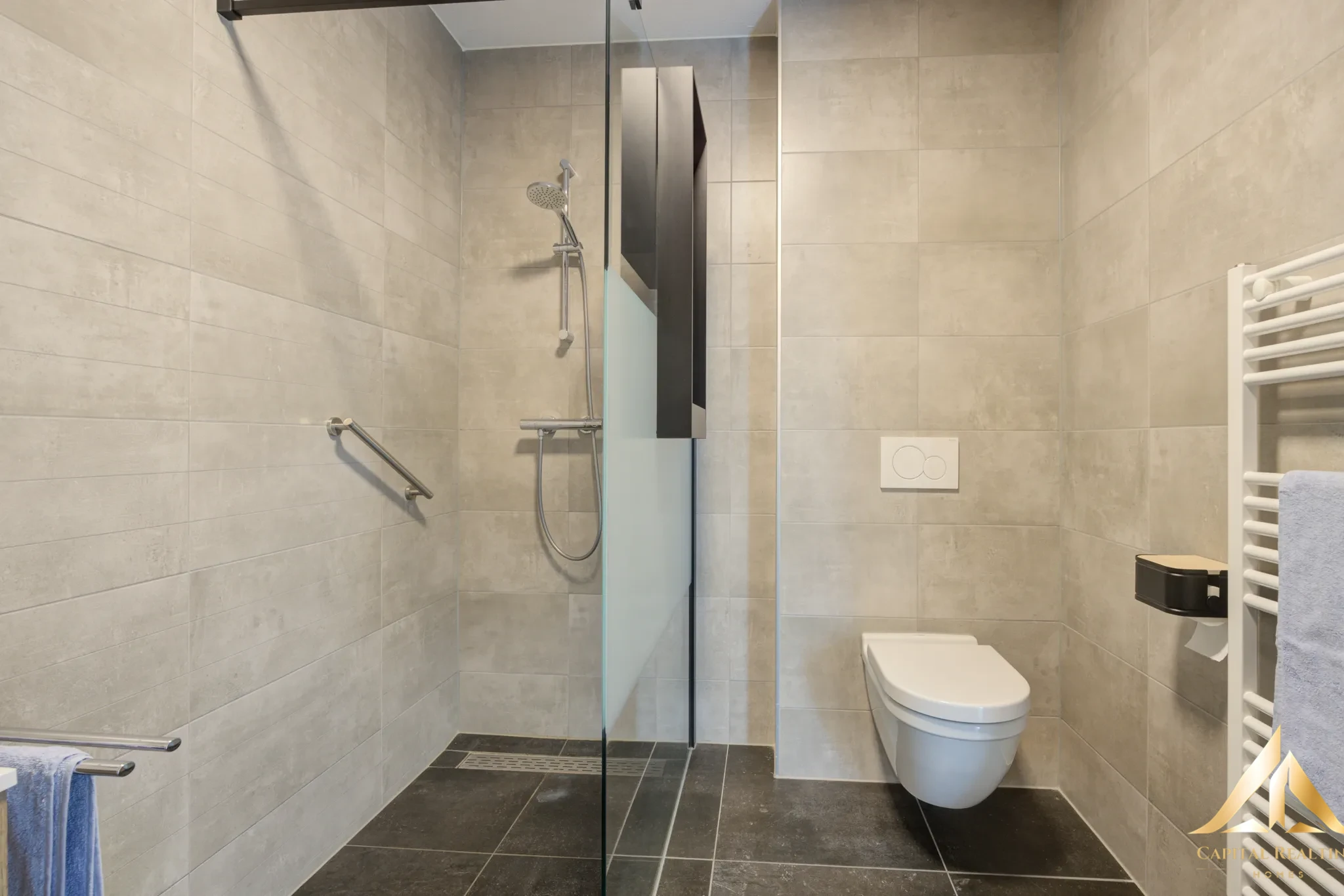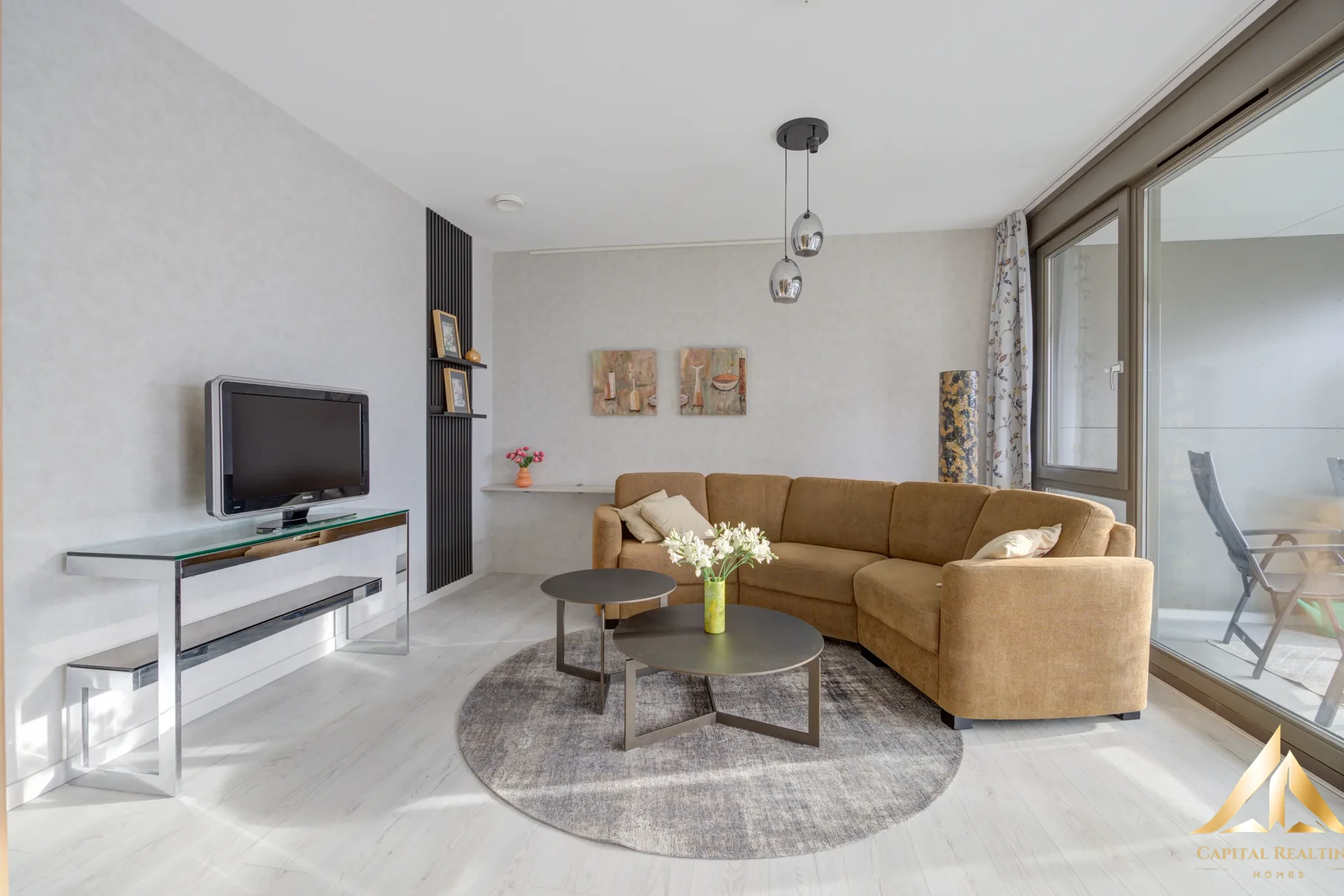 Are you looking for a ready-to-move-in 2-room apartment with various amenities within easy reach? Then don’t skip this apartment at Zonnestad 77! Here you have a living room with open kitchen, a bright, spacious bedroom and a neat bathroom. In addition, a spacious indoor balcony that faces south. So here you can enjoy the sun! The apartment is also very energy efficient, because it is gas-free, fully insulated, equipped with 7 solar panels and underfloor heating. The cozy center of Etten-Leur with many amenities is also nearby and the railway station within walking distance. Have you become curious? Contact our office and we will be happy to schedule a viewing with you! Central entrance: Entrance with doorbells, intercom system and mailboxes, staircase and elevator installations that provide access to the third floor where the apartment is located. Layout apartment – living room with open kitchen, bright bedroom and neat bathroom We enter the apartment through the hall, which gives access to all rooms. Here you will find the partly tiled toilet room (with floating toilet and fountain), the storage room, the living room, the bedroom and the bathroom. The living room with open kitchen is the heart of the apartment. A sitting and dining area has been created here. Thanks to the open layout and the pleasant light, you will experience a wonderful spacious feeling here. Cooking, dining and relaxing merge effortlessly here. The kitchen is designed in a corner unit and has plenty of cupboard space, a 4-burner induction hob with extractor hood, a refrigerator, a freezer, a dishwasher, a sink and a plastic worktop. From the kitchen you step directly onto the indoor balcony. From the hall you reach the storage room. Here, the heat pump, the heat recovery system, the connections for the washing equipment and the inverter of the solar panels are neatly arranged. Practical and out of sight. The bedroom is spacious and wonderfully light thanks to the large windows. A pleasant place to start the day relaxed when the first rays of sunshine fall in. The neat bathroom has a walk-in shower, a sink with a furniture, a floating toilet and a design radiator. Balcony The indoor balcony is located on the sunny south, so you can enjoy the sun to the fullest. A wonderful place to relax after a long day. Parking space and storage room The apartment has its own parking space with storage in the parking basement. This way you are always assured of a parking space. The storage room is equipped with lighting and electricity, ideal for extra storage or charging, for example, an (electric) bicycle.
