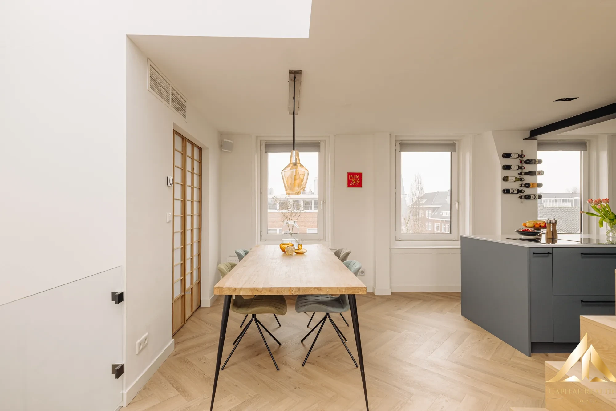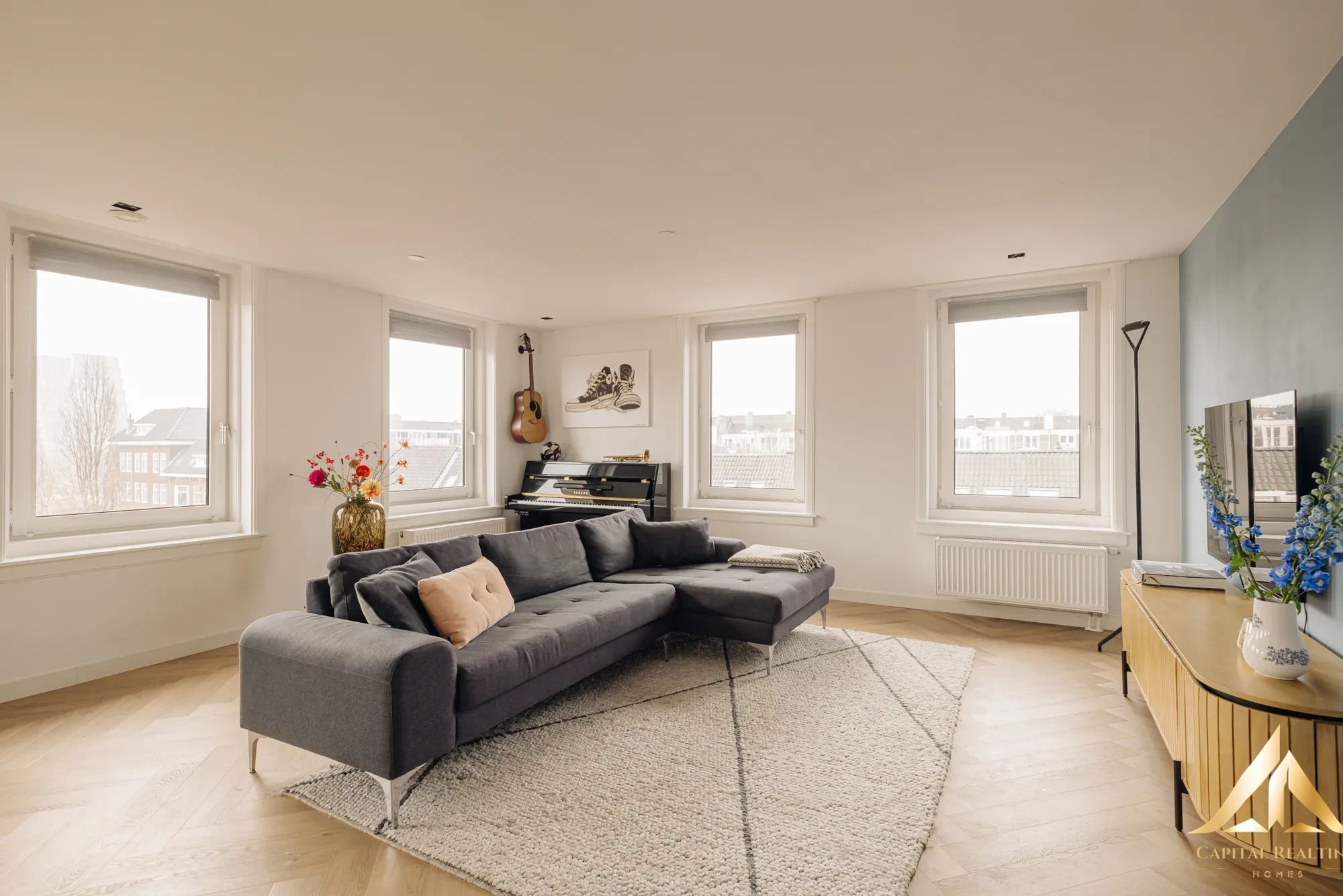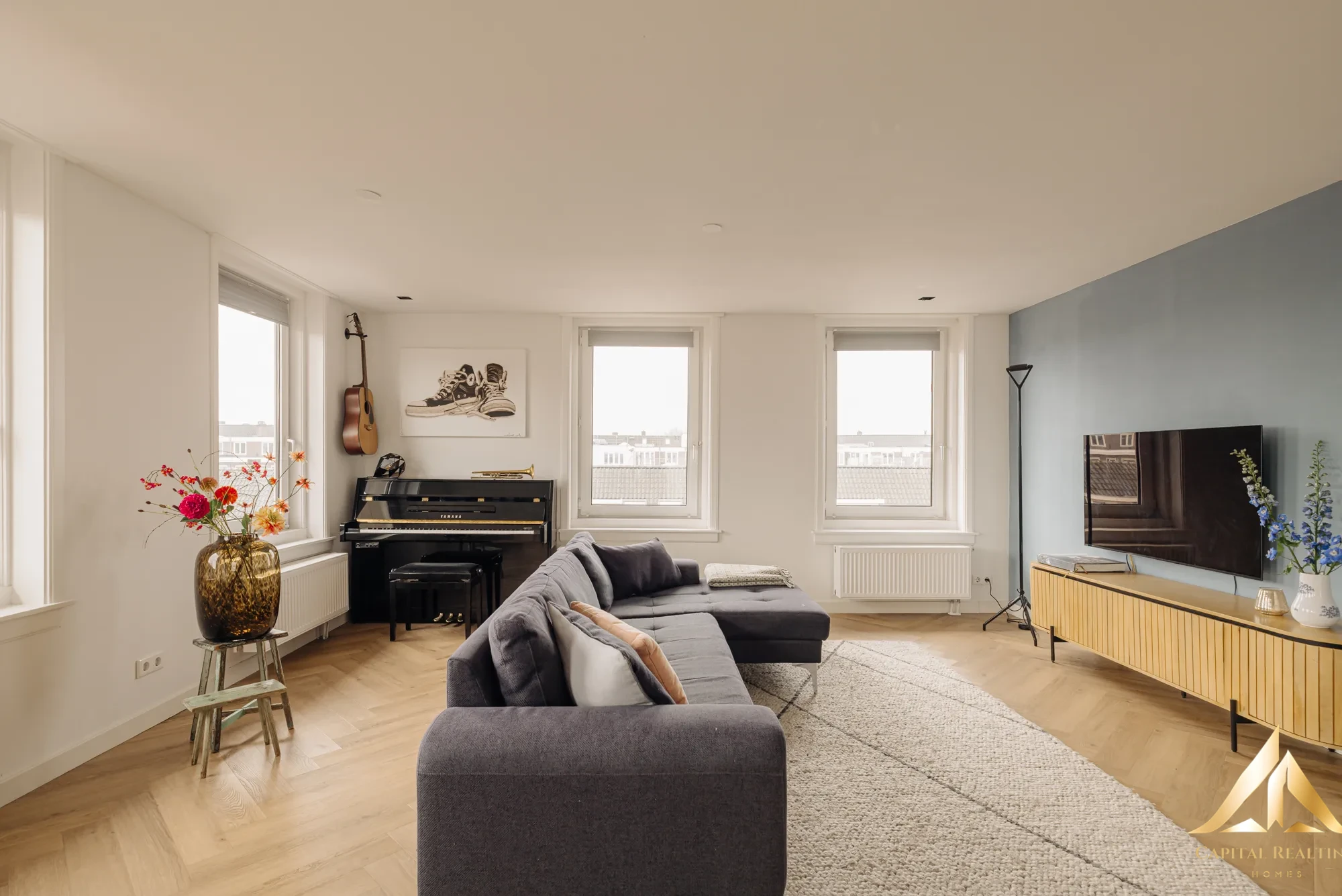 Rare in Amsterdam West! This beautifully finished upper corner house of 116 m² is spread over two floors (3rd and 4th floor) with an exceptionally spacious, beautifully landscaped roof terrace above. Thanks to the high corner location, you can enjoy enormous light and a spectacular panoramic view of the city. Completely renovated in 2021, this house combines space, comfort and style in a fantastic location! The apartment has a spacious and bright living floor (with air conditioning) with luxurious open kitchen and cooking island on the 4th floor and no less than three well-sized bedrooms and a stylish bathroom on the 3rd floor. The master bedroom has a beautiful, characteristic bay window and air conditioning has also been installed here. Another big plus: the leasehold has been bought off in perpetuity, so no financial surprises in the future!