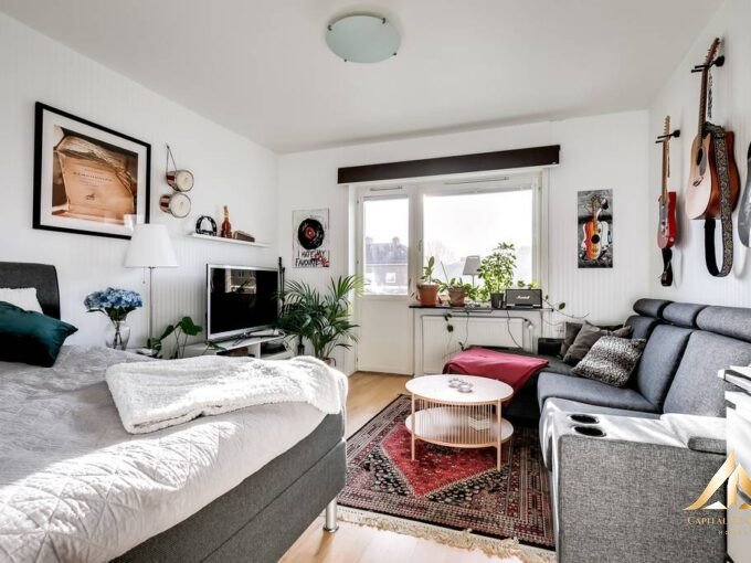 Stylish and well-planned gable apartment on the sought-after Lindvägen! This bright and well-planned two-bedroom apartment of 45 sqm offers a wonderful combination of space and light, thanks to its gable position with windows in three directions. Here you live with a secluded balcony facing southeast where you can enjoy the sun from morning to early afternoon – a perfect place for relaxation and nice moments outdoors. -Open plan -Windows in three directions -Balcony facing southeast -Close communications and services When you step inside, you are greeted by an inviting hall with stylish white walls and an elegant parquet floor. There is plenty of storage and a large window that fills the room with natural light, creating a welcoming atmosphere. The kitchen is modern and bright with grey kitchen cabinets and a fresh white tile that complements the décor. The kitchen is equipped with new appliances from 2023, all from LG, including fridge/freezer, dishwasher and oven. The new induction hob from 2024 provides optimal performance for cooking in a pleasant environment. The living room is airy and spacious with large windows that let in a generous flow of light from three directions. There is plenty of space for both relaxation and social events, and the direct exit to the balcony provides a fantastic extension of the home’s social areas. The fully tiled bathroom is stylish and functional with comfort heating, a bathtub with shower and a new combined washing machine from LG (2023) that makes everyday life easier. The bedroom is a quiet oasis with a pleasant morning light and space for a double bed as well as plenty of storage in the practical wardrobe.
