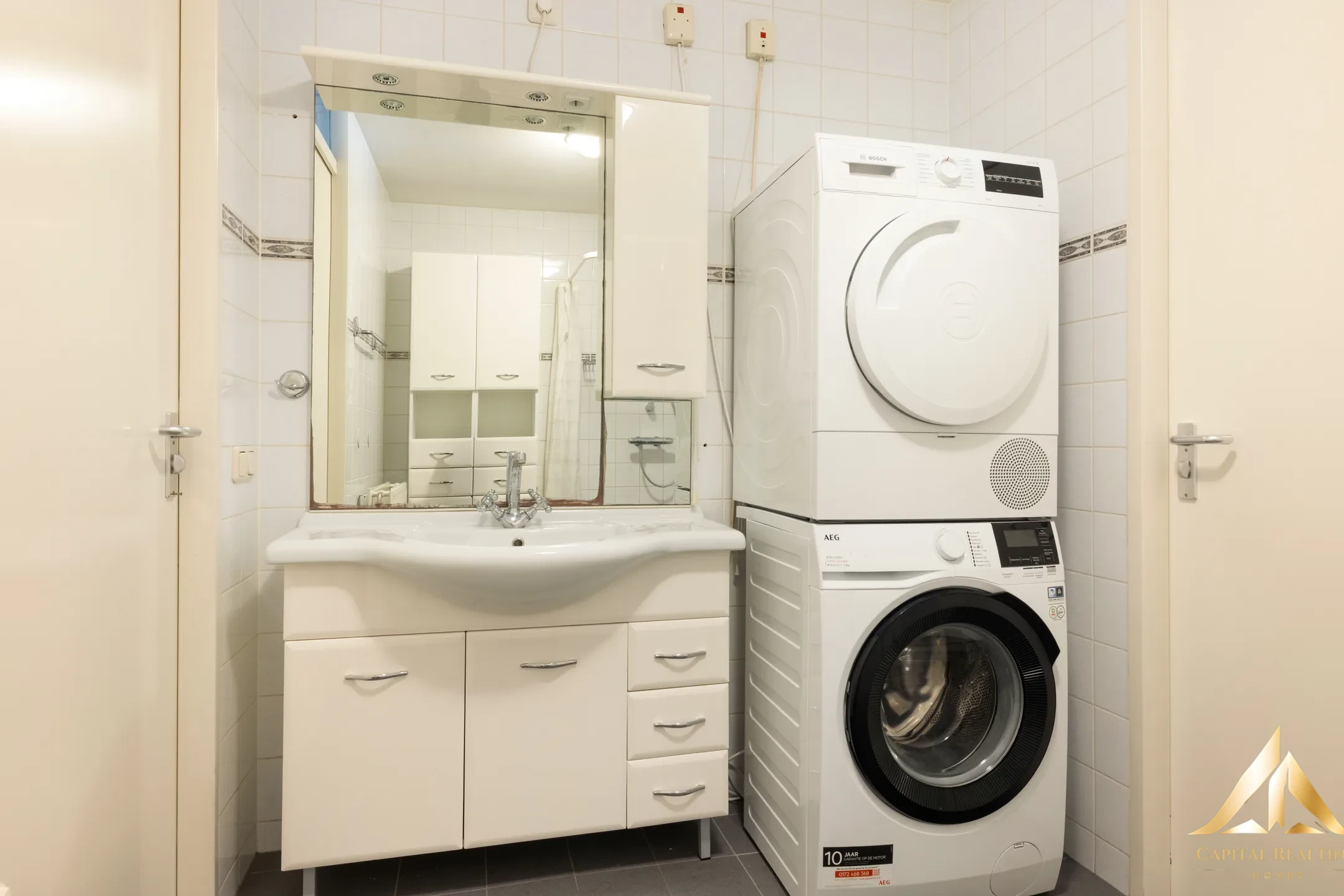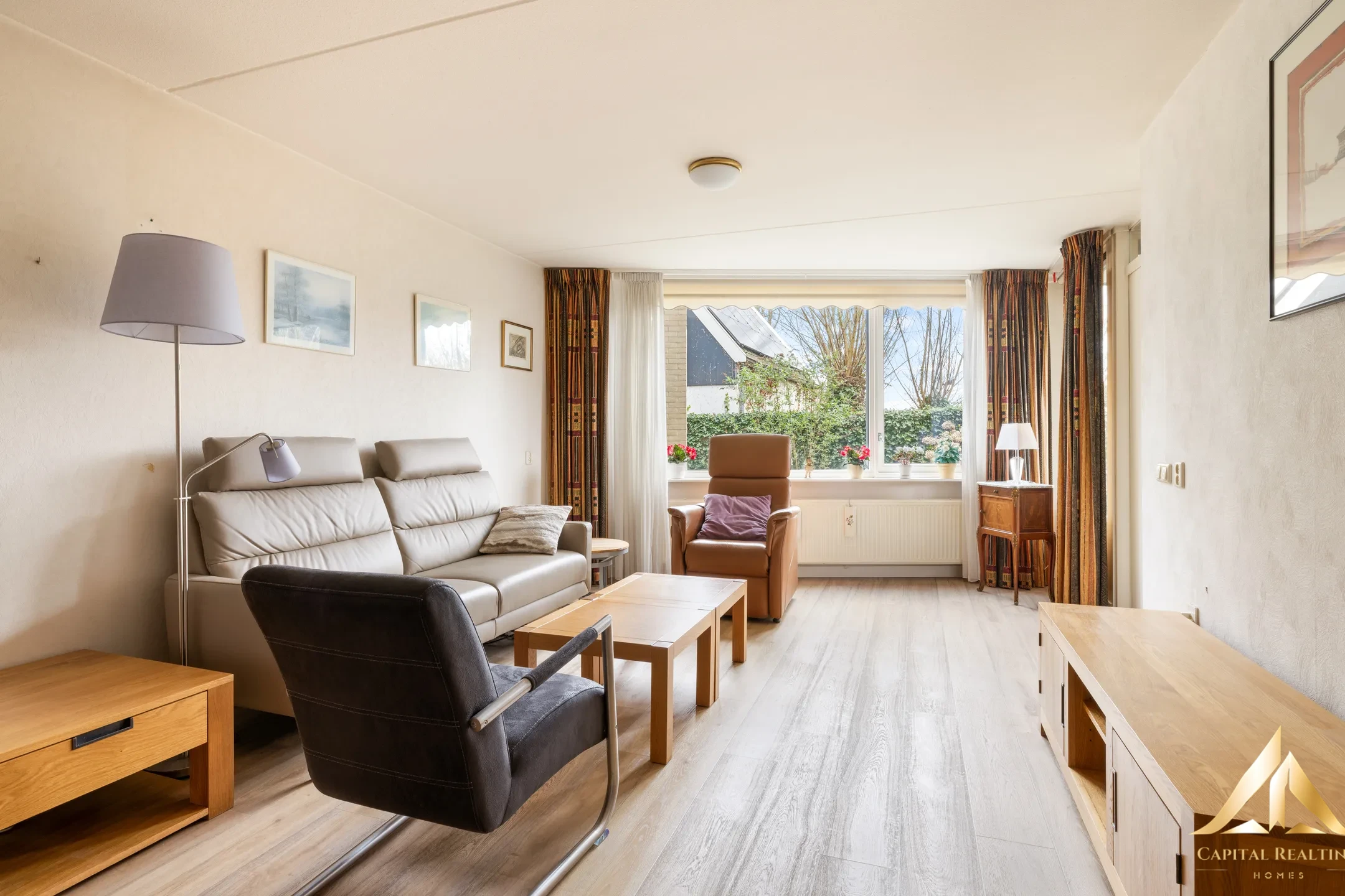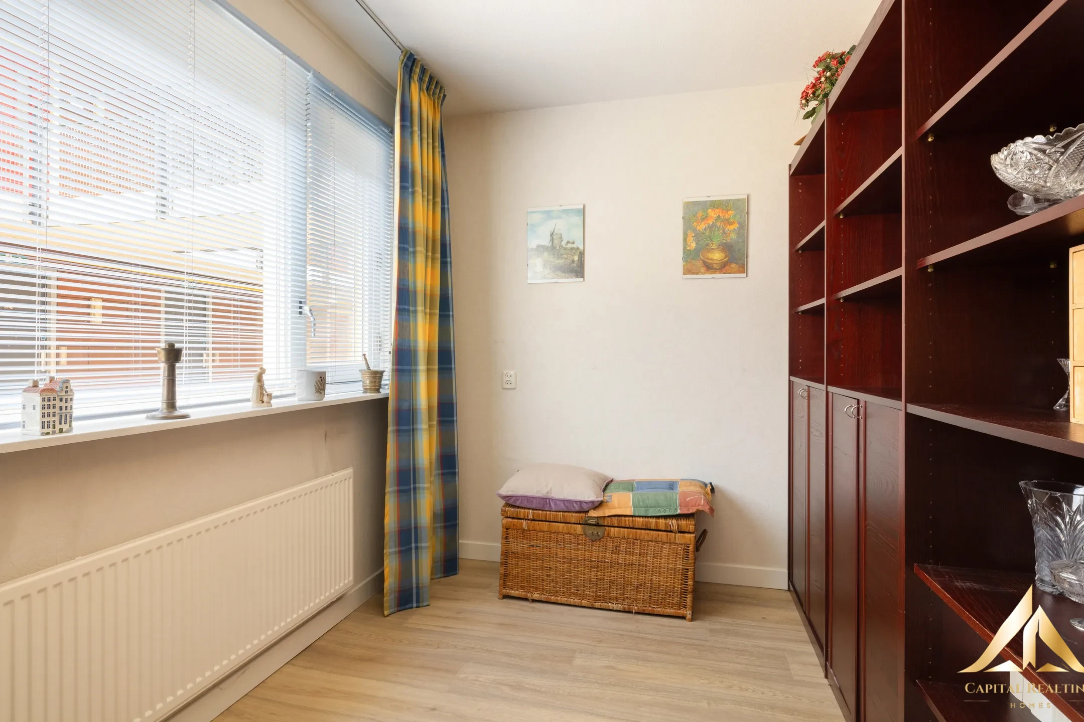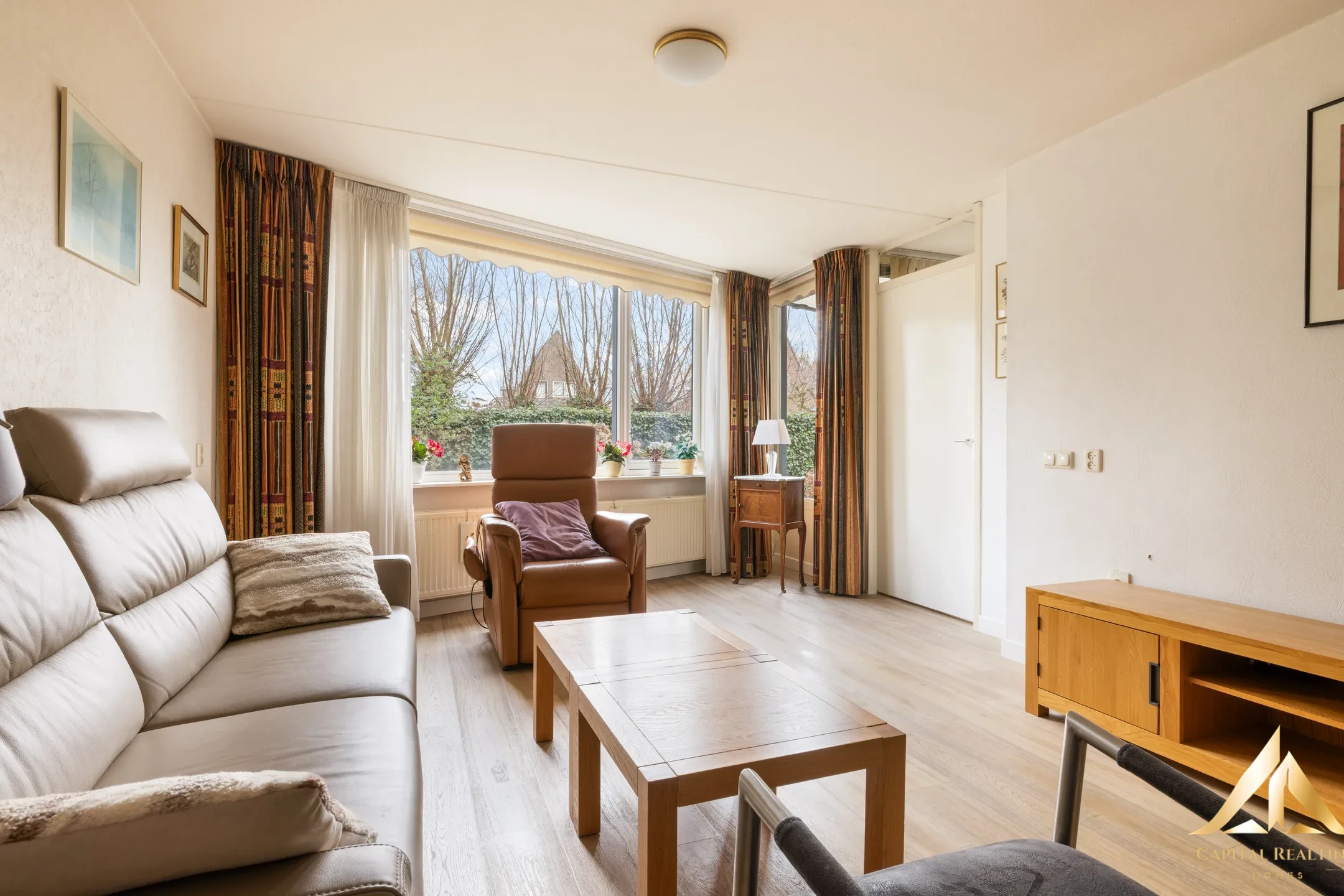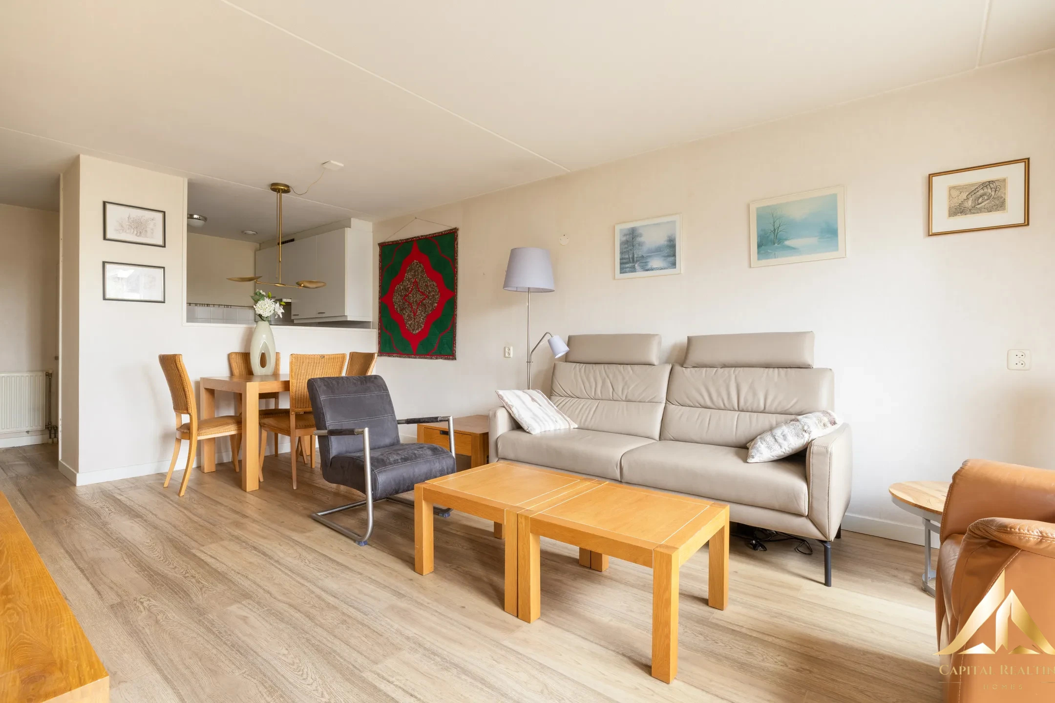 The building is very well maintained and is known for the beautiful courtyard garden with seating areas, where residents can meet each other or quietly enjoy the greenery. Thanks to the smart ventilation system in the glass roof and facades, the climate in the complex is always pleasant. The complex has various facilities, such as an elevator, a closed entrance with intercom and doorbell board, a communal bicycle shed, a space for waste containers and a shared activity room. There is also a hardwood jetty on the main waterway. Layout Through the entrance you enter the hall with meter cupboard and a practical storage room with the central heating boiler and mechanical ventilation unit. There is a separate toilet with hand basin. At the front there is an extra bedroom/hobby room and there is access to the bathroom. The simple but neat semi-open kitchen is designed in a U-shape. While cooking, you can keep in touch with your guests in the living room. This garden-oriented living room offers enough space for both a sitting and dining area. There is also access to the second bedroom from which the garden is accessible and the bathroom. The bathroom is equipped with a shower, washbasin and connections for washing machine and dryer The garden is a quiet place to relax in the morning sun, it is adjacent to a back entrance owned by the VvE.