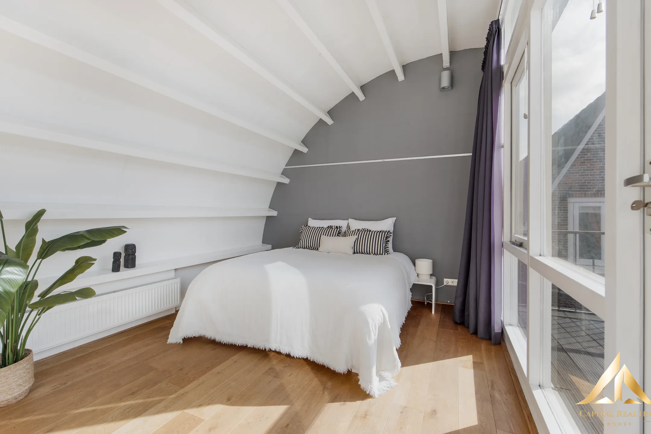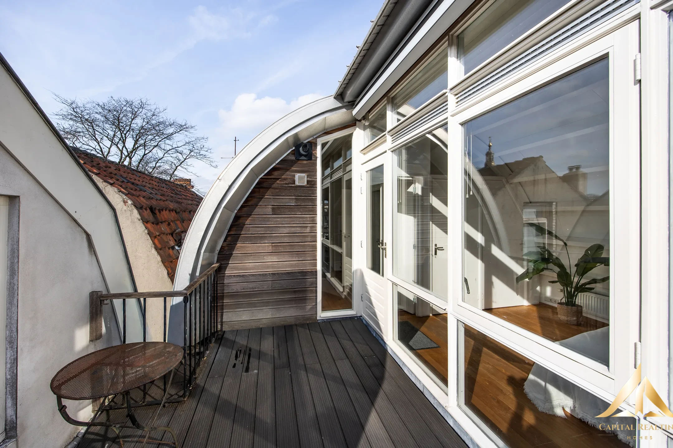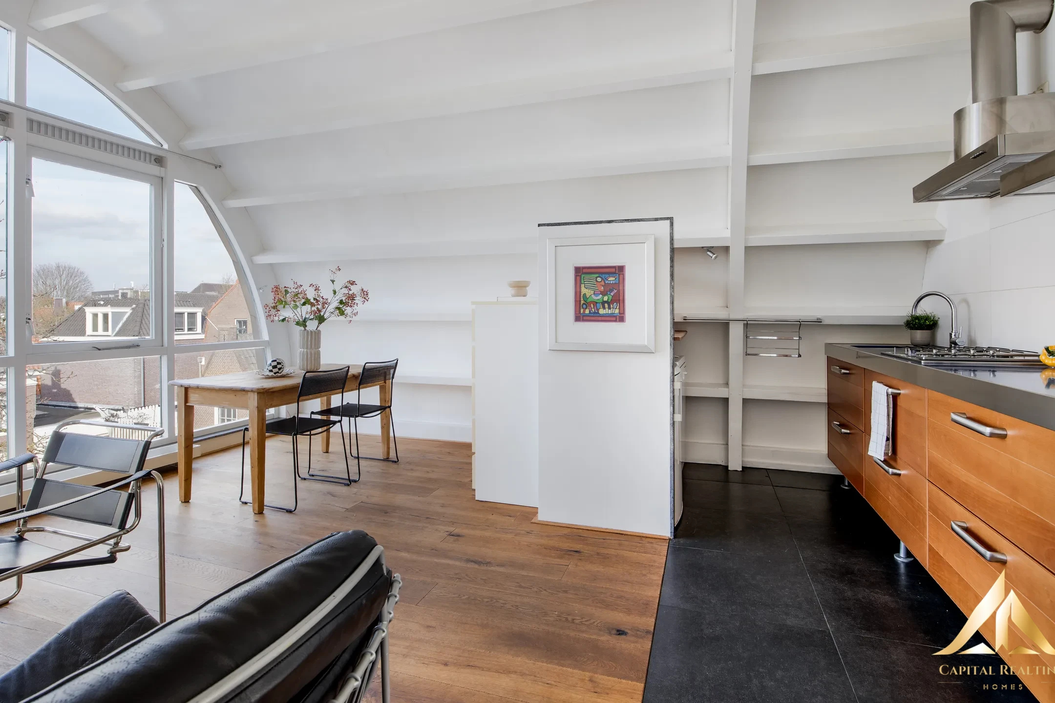 Striking and very recognizable. This certainly applies to the superstructure that was placed in 2008 on top of a house on the Zuidrundersteeg. Not only does the apartment look cool from the outside, but the inside is also something special. The curve of the roof. The large amount of light that enters, but also the lovely roof terrace on the southwest. It is wonderfully quiet to live there. Hardly any traffic and in the lee, but with a 1-minute walk you are on the Haarlemmerstraat. The living area is 59.7m2. Around the corner you will find a wide range of shops, cozy cafes, restaurants and cultural hotspots such as museums and theaters. The canals, courtyards and historic streets of the city center are literally around the corner and make every walk special. The location is also very practical: Leiden Central Station can be reached within a few minutes by bike, and roads to the A4 and A44 provide fast connections to cities such as The Hague, Amsterdam and Rotterdam.