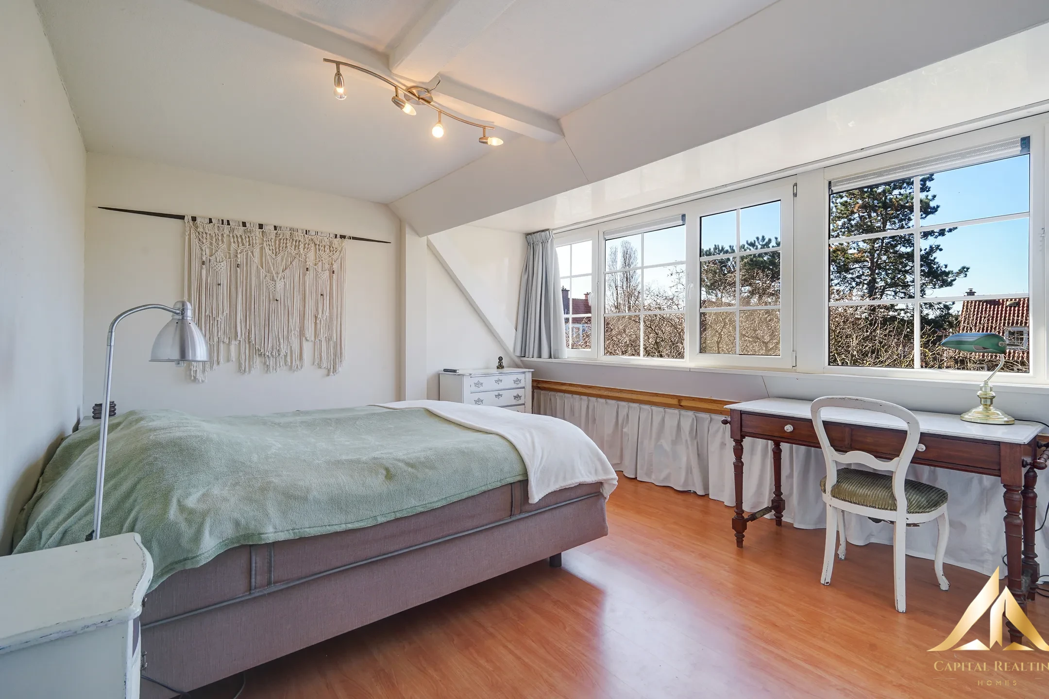Located opposite the Bosjes van Poot and within walking distance of the beach, sea and dunes 6-room ground floor apartment with intermediate construction on the 2nd floor with a spacious backyard located on the southwest. LAYOUT: Entrance with a wide front garden, hallway with direct access to the backyard, access to the basement which is equipped with a washing machine connection. Broken through, spacious living/dining room (formerly 4 rooms!) with slatted parquet floor, wood fireplace, bay window and passage to a bathroom with a sink and corner shower, toilet with free-hanging cistern. Wide kitchen with a 4-burner gas stove, extractor hood, dishwasher and patio doors to a spacious backyard with a wooden shed on the southwest. 2nd FLOOR Landing, toilet, spacious and bright rear bedroom with a large dormer window over the entire width, playful front bedroom with dormer window and staircase to a loft with 2 skylights. For the dimensions of the rooms, please refer to the floor plans.
