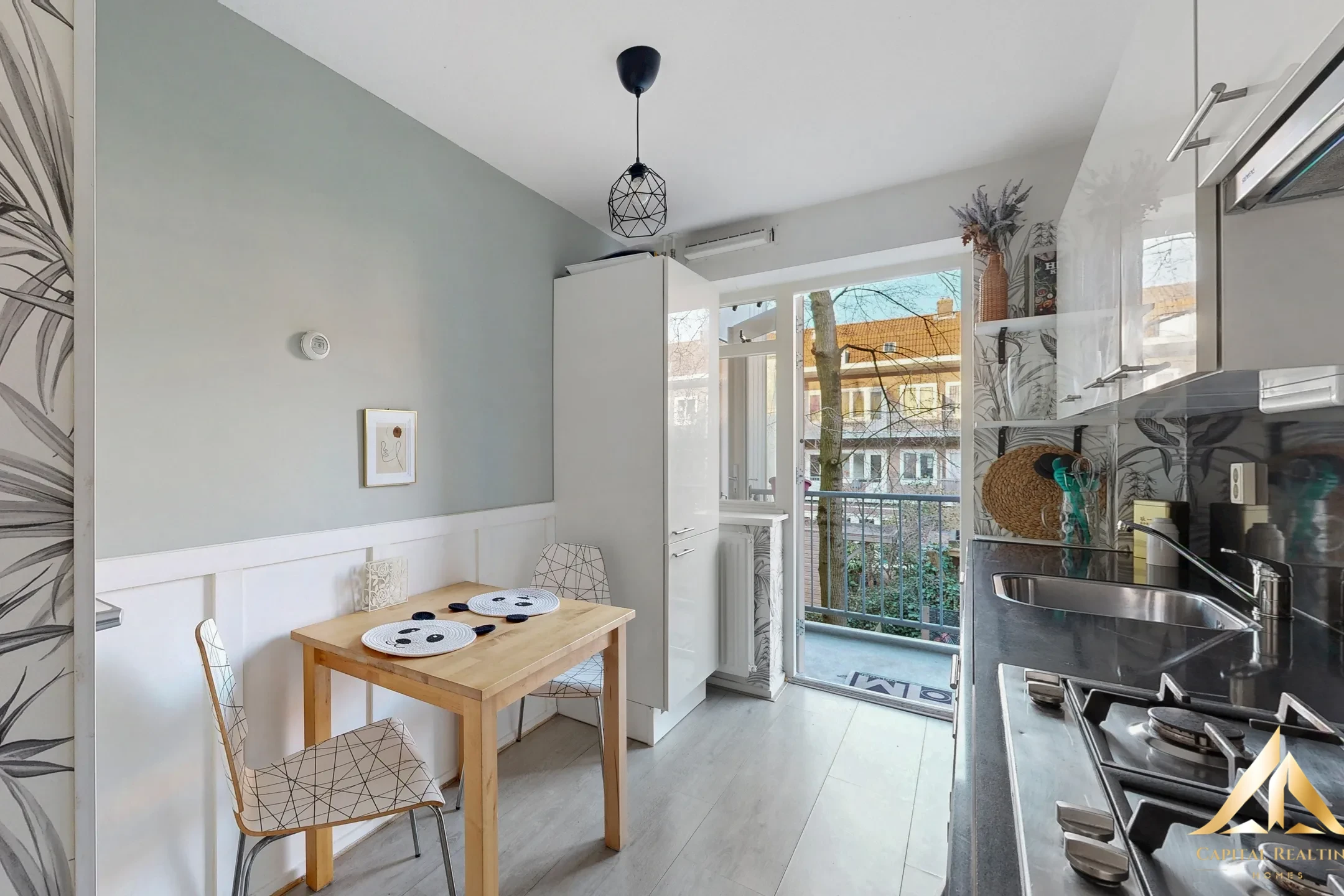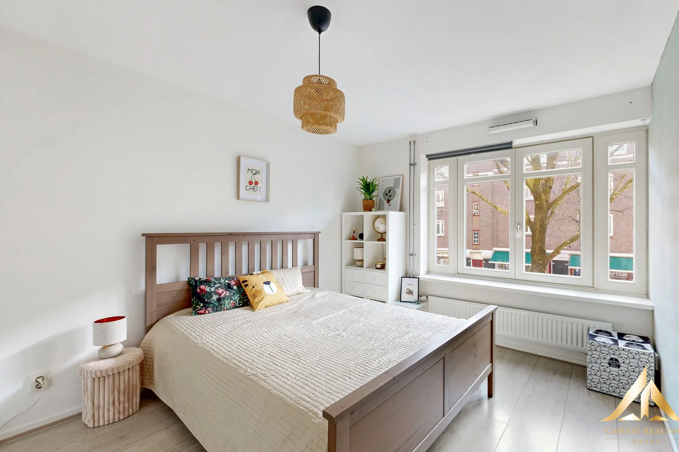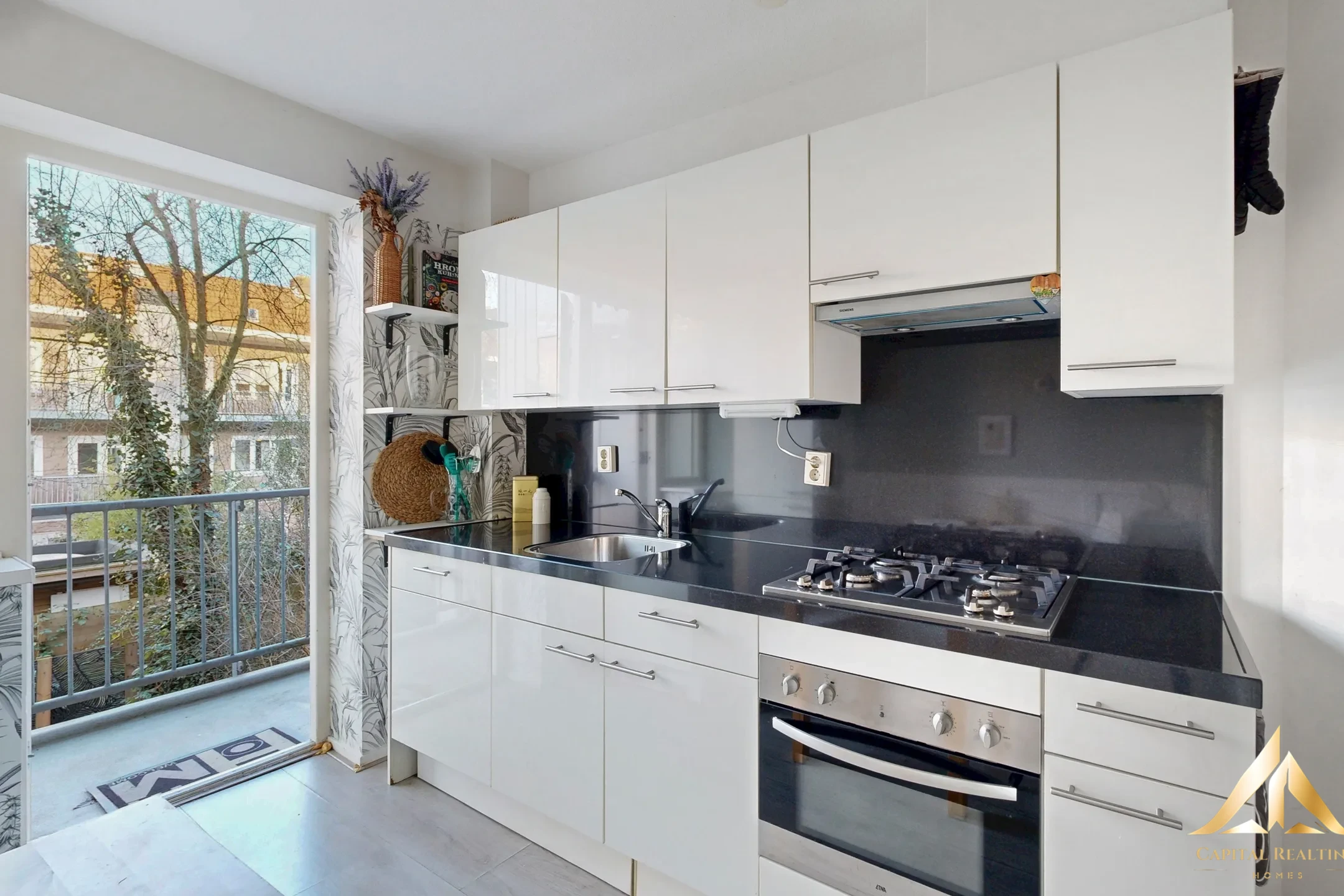 Attractive and well-laid out 2-room apartment with a spacious living room, a lovely house-wide balcony and a large private storage room. The house is located on the lively Marathonweg, in the middle of Amsterdam South. A short distance from the Vondelpark, the Zuidas and the center. The neighborhood is known for its characteristic architecture of the Amsterdam School and its pleasant atmosphere. The complex was completely renovated in 2013. I would like to invite you for a viewing. The Marathonweg is a pleasant street with a nice mix of coffee bars, terraces and shops for daily shopping. Think of the popular coffee bar Shot and the terraces of café Kiebert and Marathonweg. Tip: Be sure to check out our virtual 3D tour via funda or our website. You virtually walk through the entire house and immediately get a good idea of the layout and spaces. You can measure dimensions yourself and view the house without furniture at the touch of a button. Ideal to prepare well for the viewing. The apartment: This fine apartment is located on the first floor of number 13. You enter the house through the hall. The kitchen is spacious and offers space for a cozy breakfast table. The kitchen is finished in high-gloss white with a stone worktop and has various built-in appliances, including a four-burner gas hob, extractor hood, combi oven microwave, dishwasher and a fridge with freezer. There is also plenty of closet space.