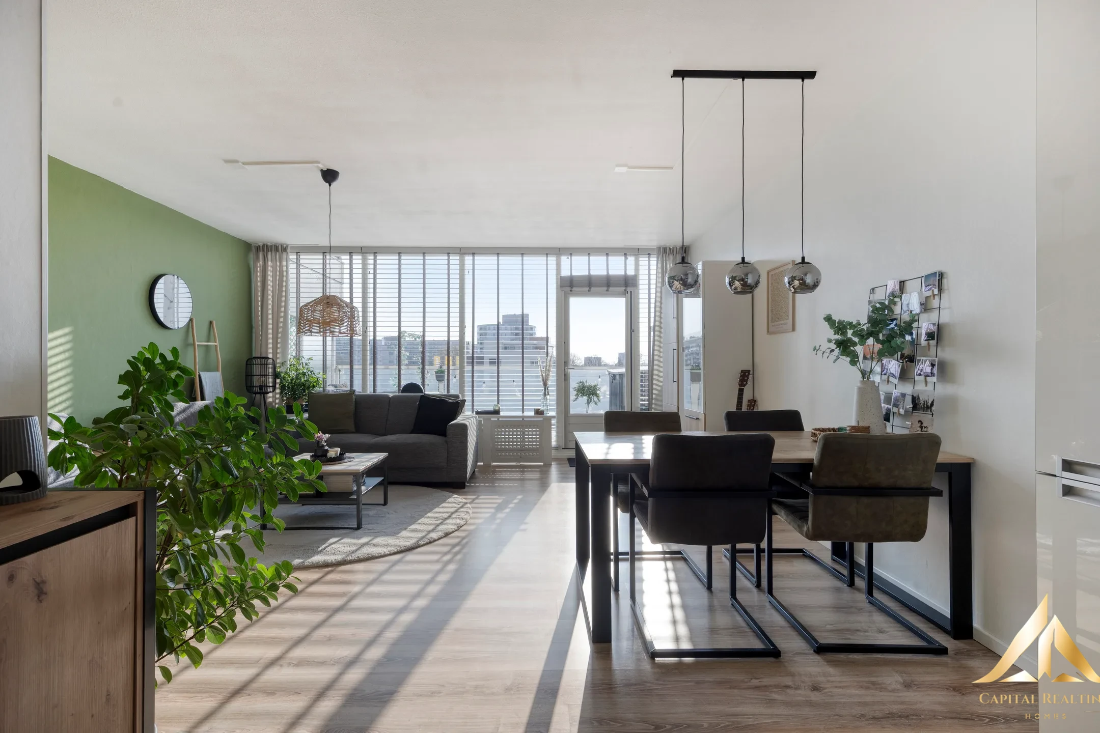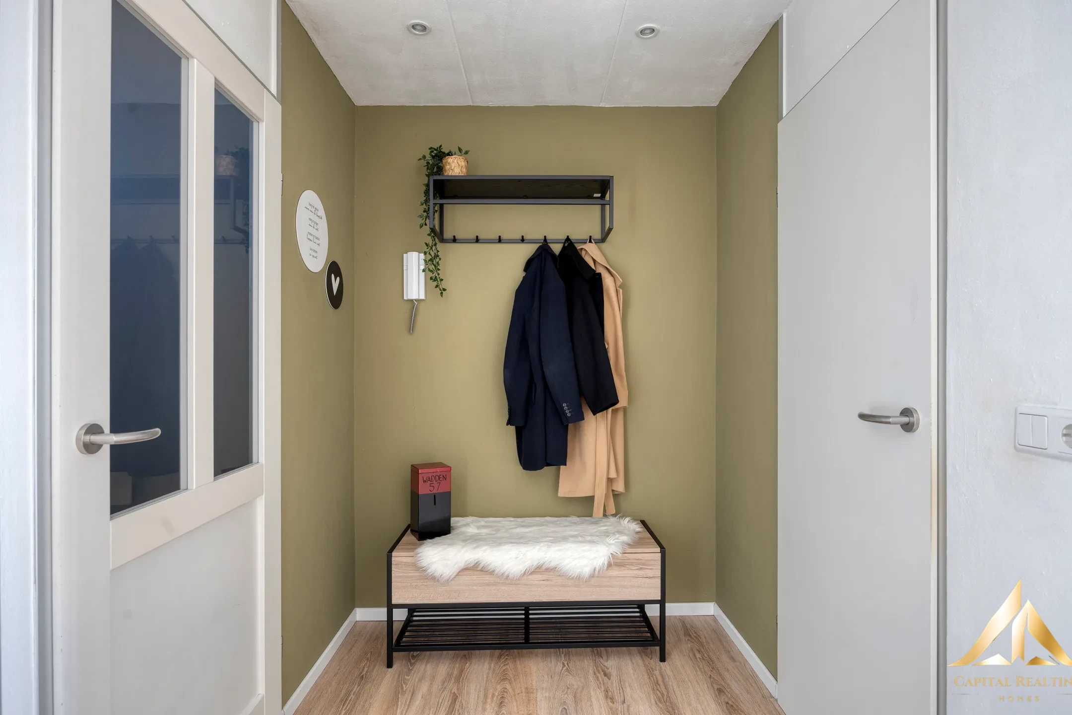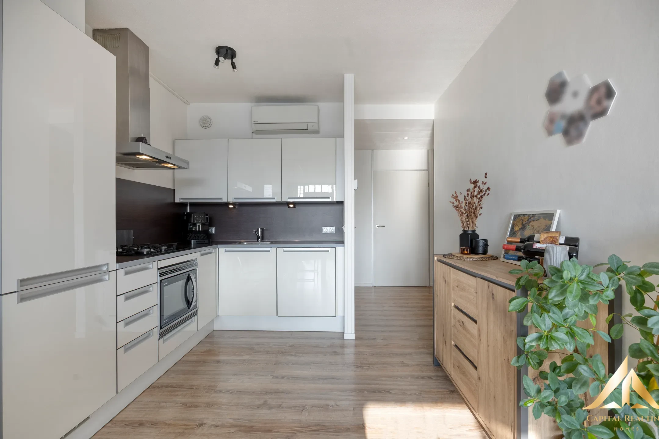 Bright and comfortable 2-room apartment on the 3rd floor with spacious south-facing balcony Above the Walburg shopping center is this fine neatly finished 2-room apartment with a living area of 62 m² and a large balcony of over 13 m². Thanks to its convenient location, you have all daily amenities such as shops, supermarkets and other facilities literally within easy reach. Public transport, such as bus and train, is also a short distance away. For relaxation and conviviality, you can walk to the Veerplein on the Oude Maas, where there are several nice restaurants and where you can also take the water bus to the center of Dordrecht. The apartment is part of a complex from 1972 with an elevator and a healthy and active VvE. On the ground floor there is a private storage room, ideal for bicycles and extra storage. Layout: Ground floor: central entrance/hall with intercom system, mailboxes and access to the elevator and stairwell.