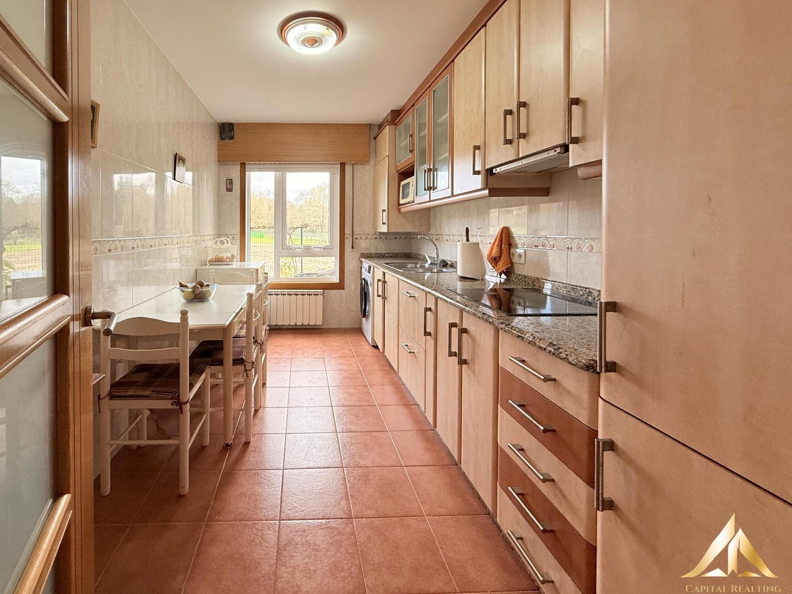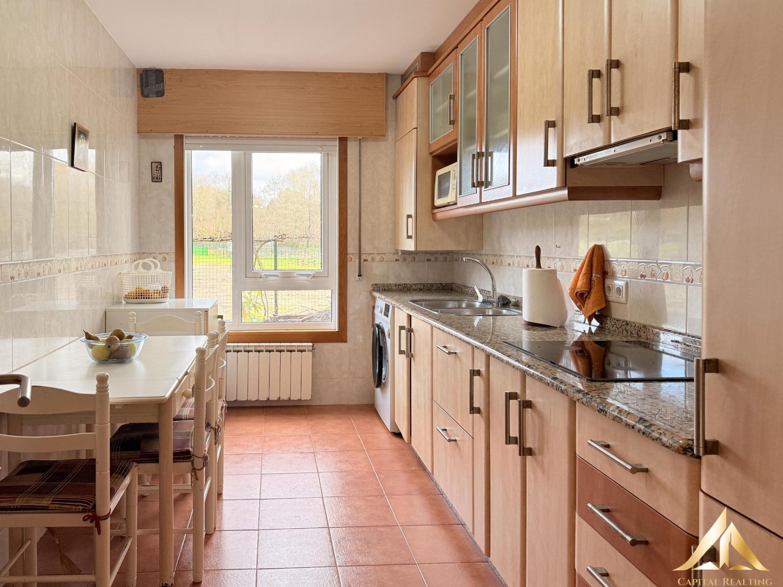 Separate Kitchen: Very spacious, with ample storage, a large countertop, and a breakfast nook for everyday meals while enjoying the garden views.