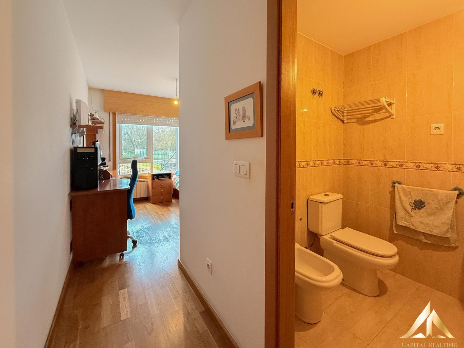 Second Bedroom: A complete single bedroom (built-in wardrobe, two beds, and a study area) with exclusive access to a second semi-covered terrace, perfect as a relaxation area or laundry room.