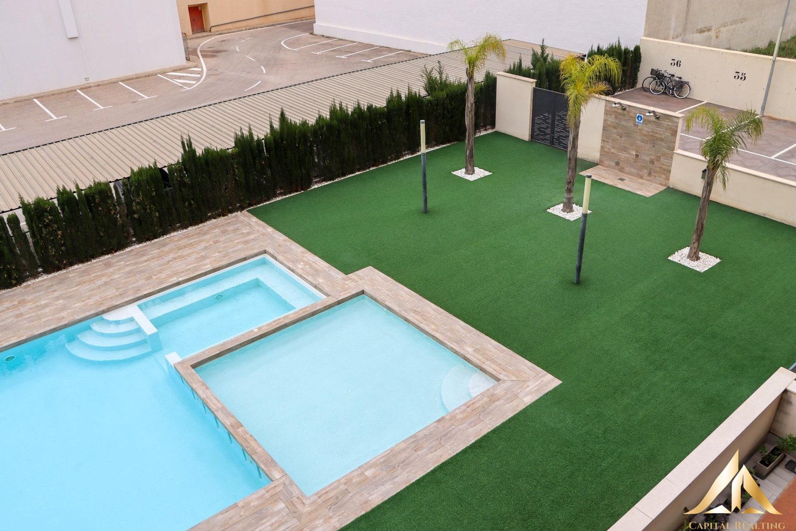 * Communal parking space.