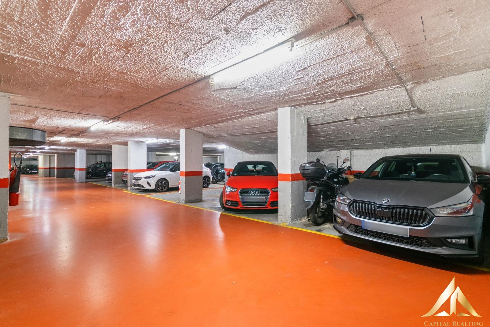 Garage space available for purchase in the same building, suitable for a large car and a motorcycle (price separate).