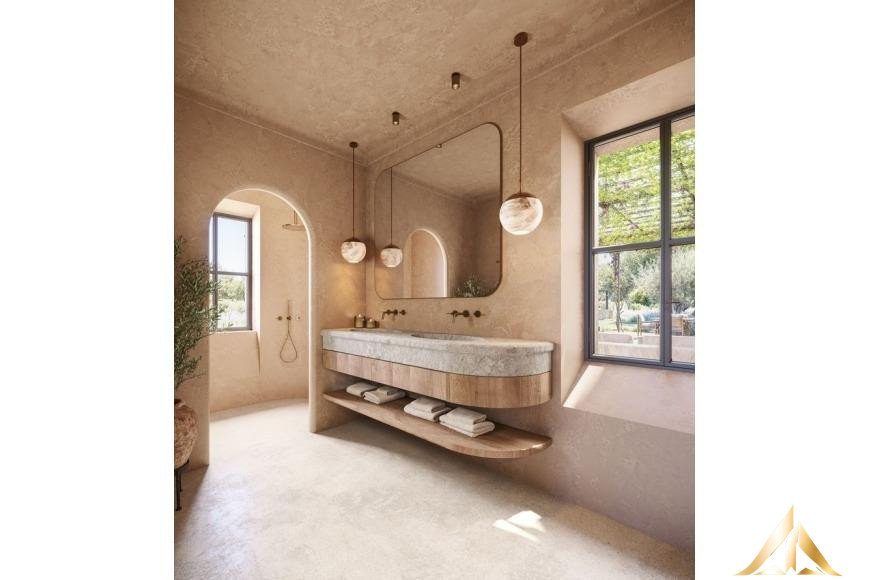The villa offers four spacious en-suite bedrooms, including an elegant master suite, guaranteeing maximum comfort and privacy for both family and guests. Large windows allow abundant natural light to flood in and connect each room with the Mallorcan landscape, creating a sense of spaciousness and harmony with the surroundings.
