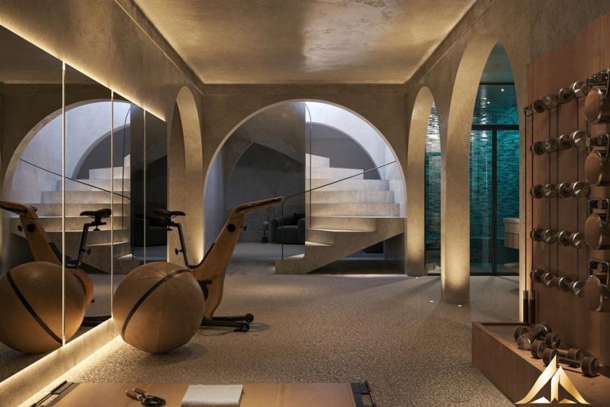 The basement is designed for enjoyment and well-being, featuring a private cinema, a fully equipped gym, and a wellness area, offering a level of comfort befitting a high-end residence.