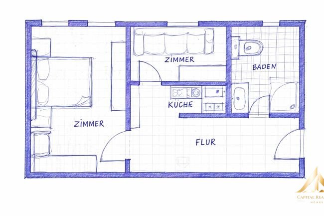 Despite its compact size, the apartment offers a pleasant feeling of space and a well-thought-out layout. Particularly noteworthy is the direct access to the quiet inner courtyard, which creates additional living comfort.
