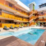 We present a new bungalow in the under-construction residential complex “Sunny Hills”. The bungalow offers two bedrooms, two bathrooms, and an open-plan kitchen combined with the living room. It features two terraces of approximately 30 m² each: one is accessible from the living room and the other from the kitchen. The bungalow is sold with fitted kitchen furniture and household appliances (refrigerator, washing machine, central air conditioning, etc.). The bathrooms are equipped with underfloor heating. The terrace includes a designated barbecue area.