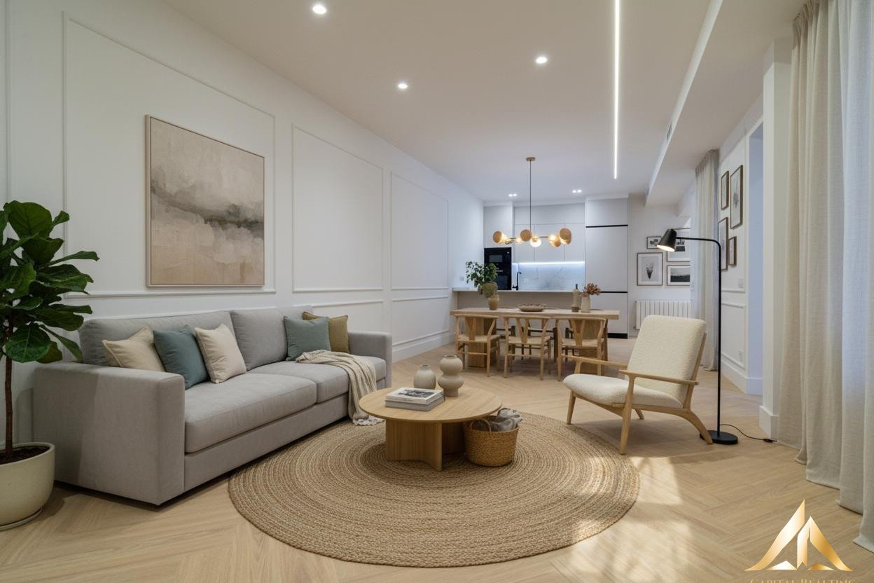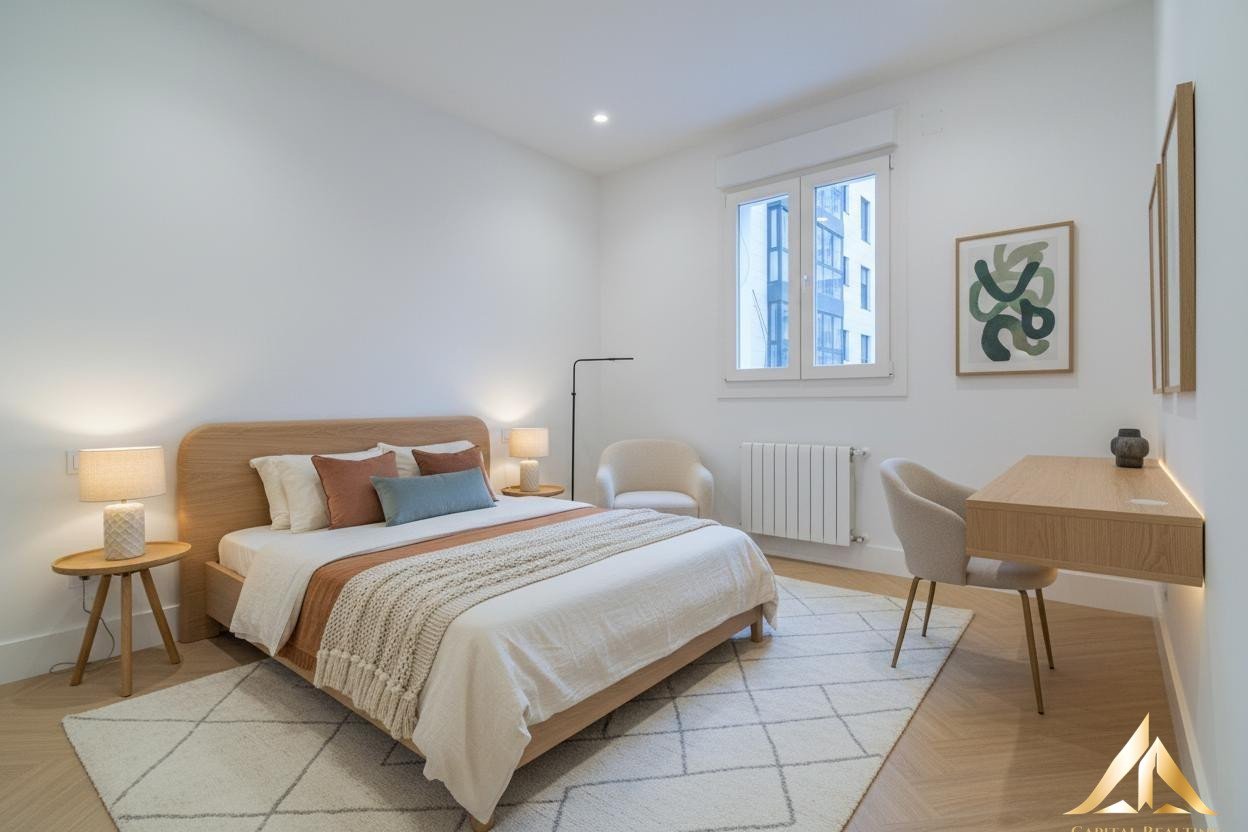 Located in the heart of the Ibiza neighborhood, next to Retiro Park, this two-bedroom, two-bathroom apartment has been completely renovated with high-quality materials, designed for comfortable, peaceful, and well-connected living in Madrid.
