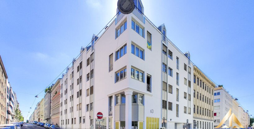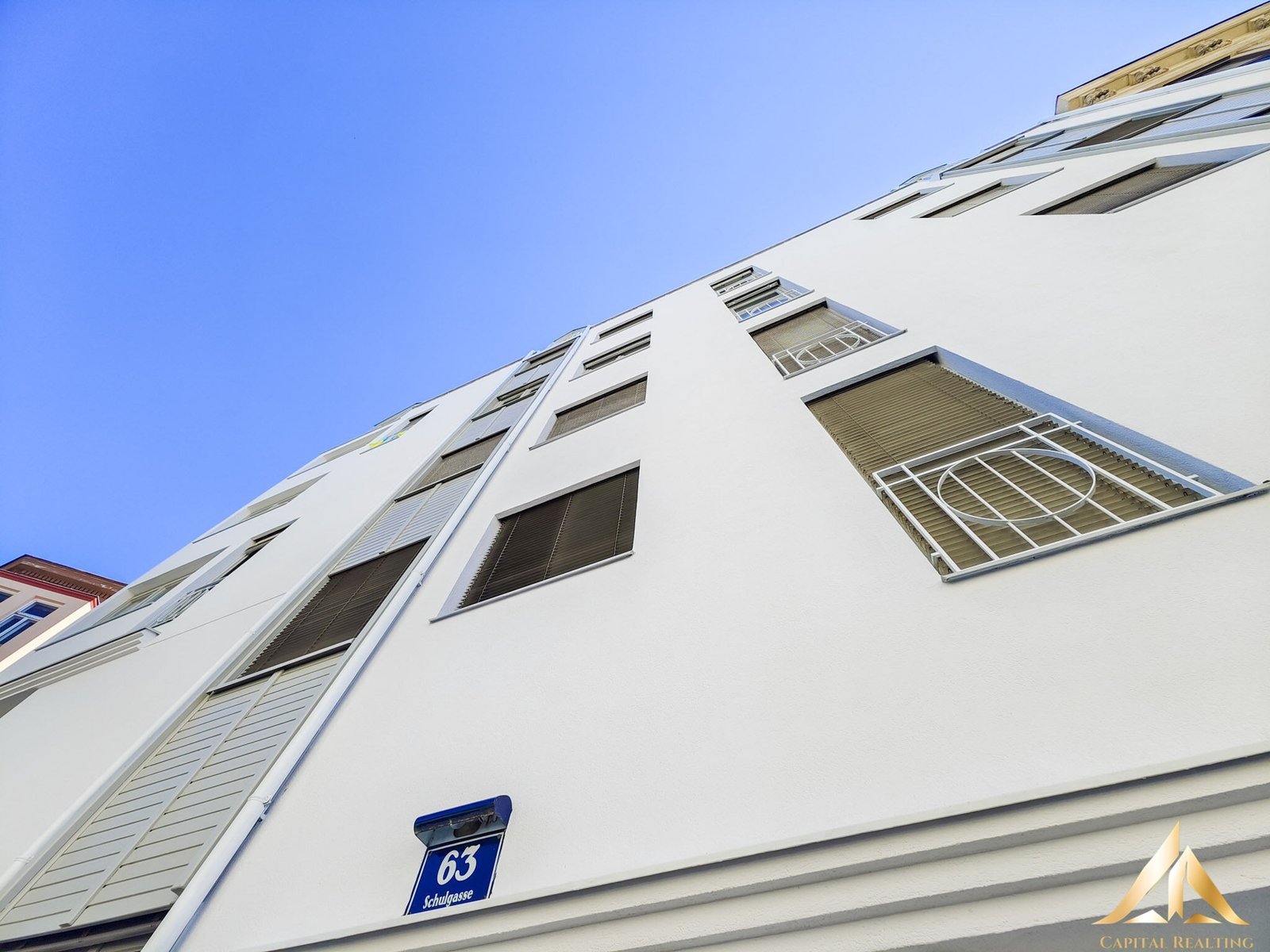 The property is a well-maintained corner building dating from 1990, offering a magnificent view of the Schubertpark opposite. The building comprises a ground floor, four upper floors, and an attic. A total of 19 residential units and 17 parking spaces in the building’s underground garage are available for sale.