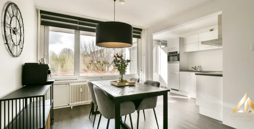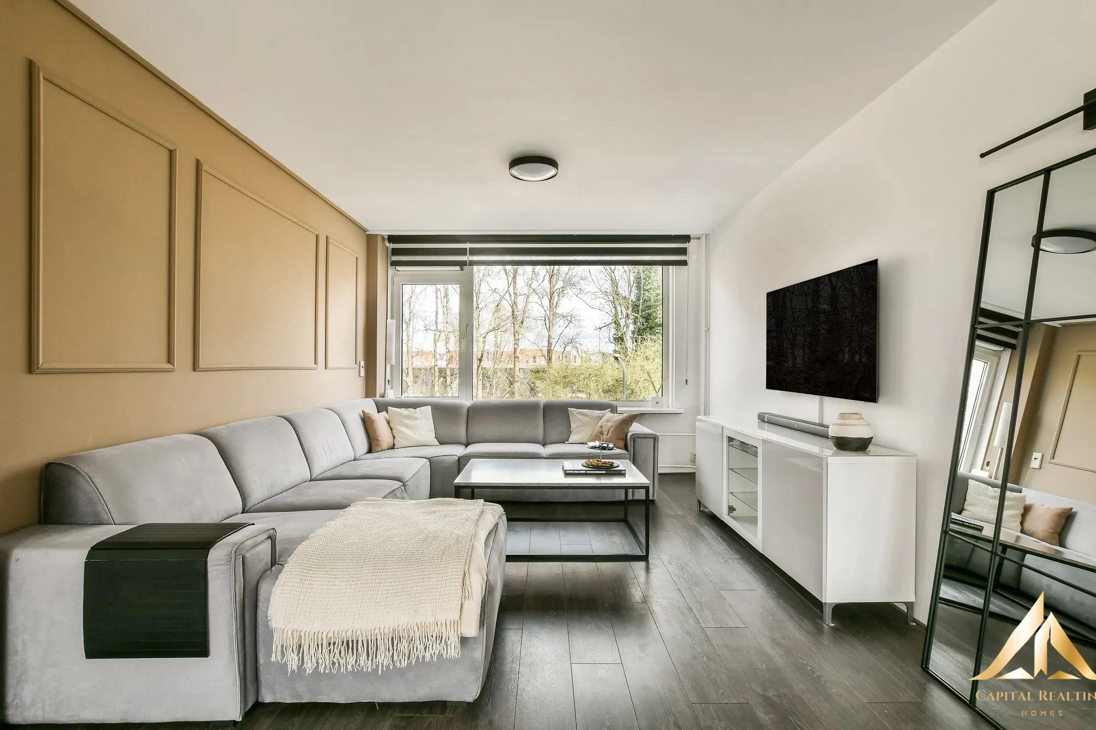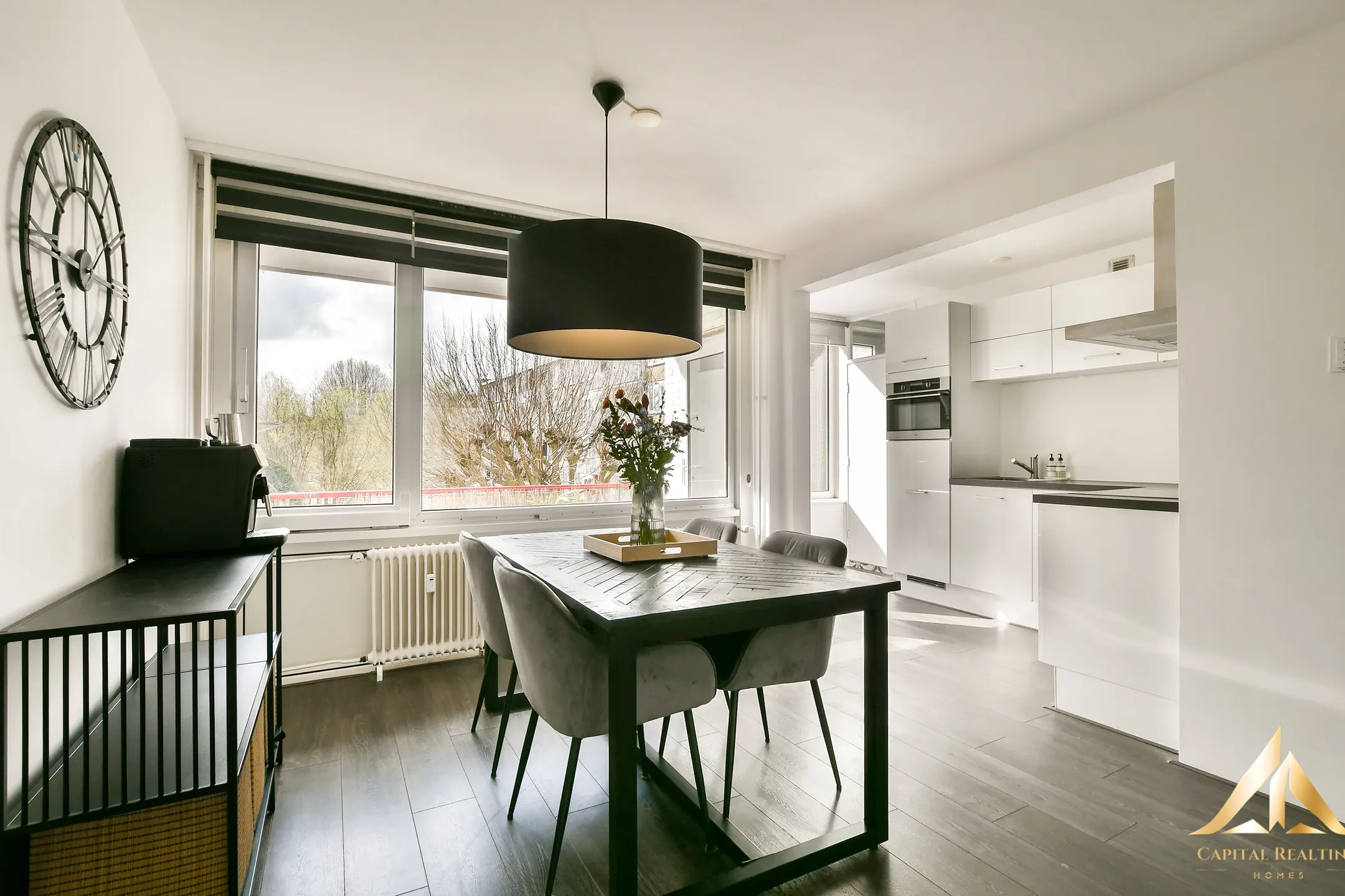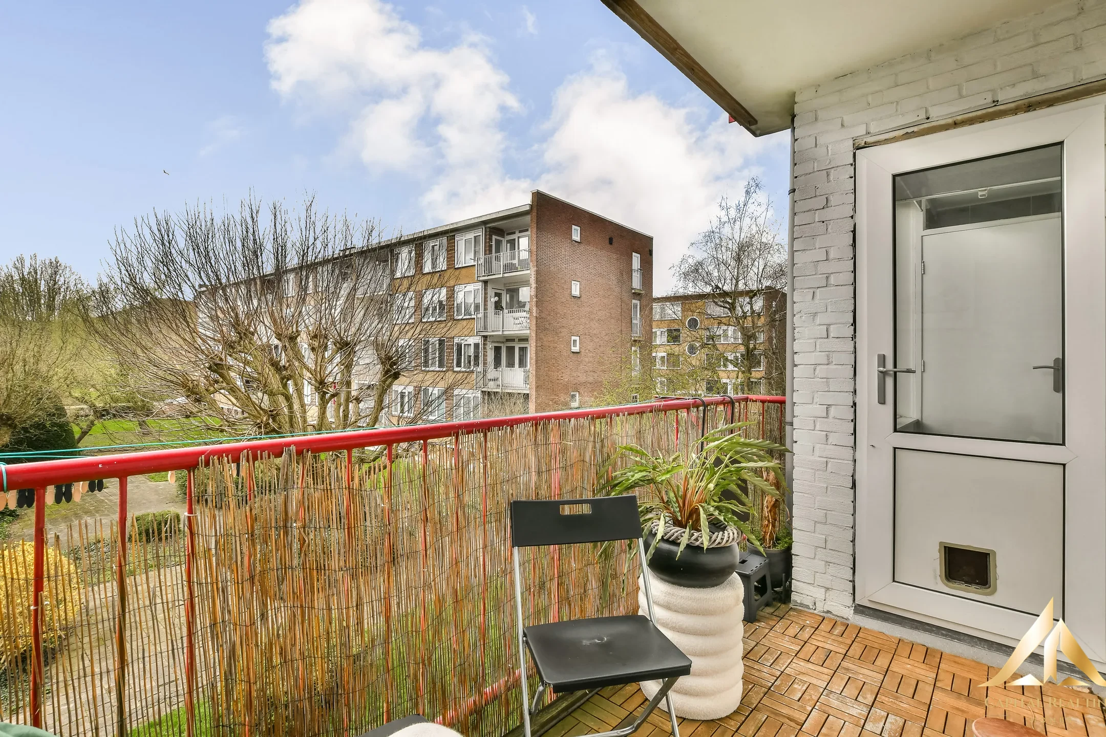 This well-laid out and well-kept two-room apartment (approx.58 m², built in 1960) is located on the second floor of a well-maintained complex. The house has a modern kitchen and sanitary facilities, a sunny and covered balcony on the southwest, unobstructed views of greenery at both the front and rear and a large storage room in the basement. Moreover, you live here just a five-minute walk from the Weesp railway station. ENTRANCE Through the central entrance with doorbells and intercom you enter the well-kept communal hall with mailboxes. From here you have access to the storage rooms in the basement and the stairwell. LAYOUT Through the staircase you reach the entrance of the apartment on the second floor. You enter the hall with meter cupboard, wardrobe and a practical closet with washing machine connection and electric boiler (rent). In addition, you will find a separate toilet and access to the bedroom. The entire apartment has a tightly laid, barrier-free wood-look laminate floor in a modern dark tone. LIVING ROOM & KITCHEN The spacious and bright living room at the front offers a pleasant unobstructed view over greenery. Thanks to the large windows, you can enjoy plenty of daylight and a nice atmosphere. The semi-open kitchen is located at the rear and is finished in high-gloss white with a stylish dark worktop. The kitchen has plenty of cupboard space and various built-in appliances, including a Miele dishwasher, combi oven, fridge/freezer, induction hob and stainless steel extractor hood. There is also enough space for a cozy dining area. From the kitchen you have direct access to the sunny, covered balcony on the southwest — a wonderful place to enjoy the sun in the afternoon and evening, with unobstructed views over the greenery. BATHROOM & TOILET The modern bathroom is stylishly finished with decorative floor tiles and anthracite-colored wall tiles. Here you will find a washbasin with washbasin and a walk-in shower with glass splash screen. The window provides natural ventilation. The separate toilet is in the same modern style and equipped with a sink. BEDROOM The spacious bedroom is located at the front of the house and overlooks the greenery. There is plenty of space for a double bed and a large wardrobe. ASSOCIATION OF OWNERS The apartment is part of a well-maintained complex with a healthy and active VvE, managed by Amstarr VvE Beheer B.V. The service costs are € 160 per month (incl. maintenance reservation, cleaning and insurance). The advance payment for heating is € 60 per month. LOCATION The house is located in a quiet and green location in the station area of Weesp, a short distance from the cozy historic center with shops, restaurants and cafes. Within five minutes you can walk to the railway station of Weesp. From here you can reach Amsterdam Central Station in about 17 minutes and Schiphol Airport in 22 minutes. By car you can reach the roads to Amsterdam, Schiphol and Utrecht within a few minutes. Parking is free in front of the door and there is a public charging station in the street