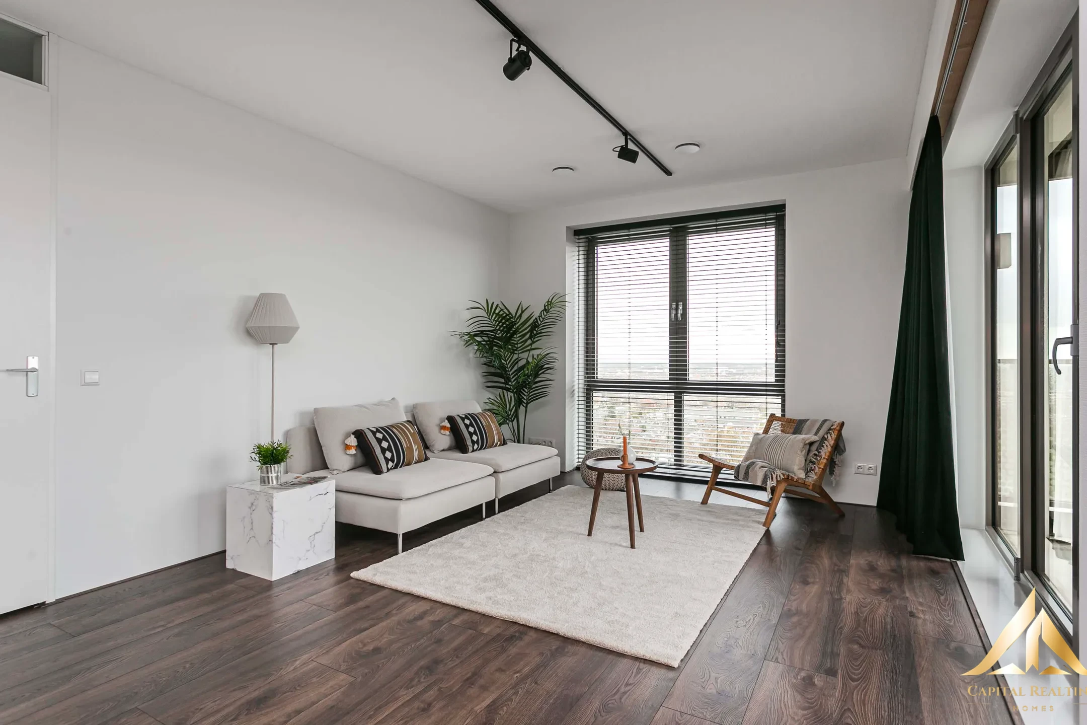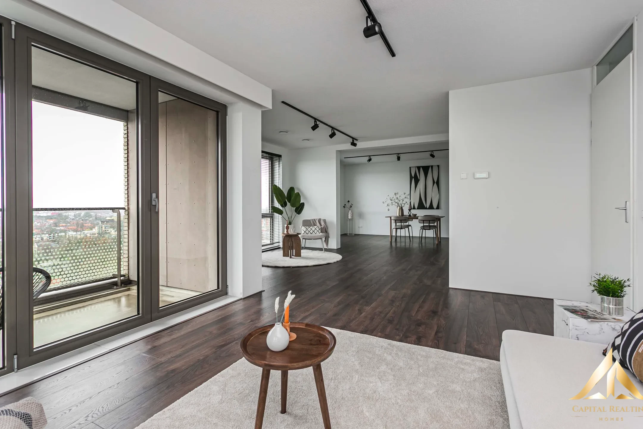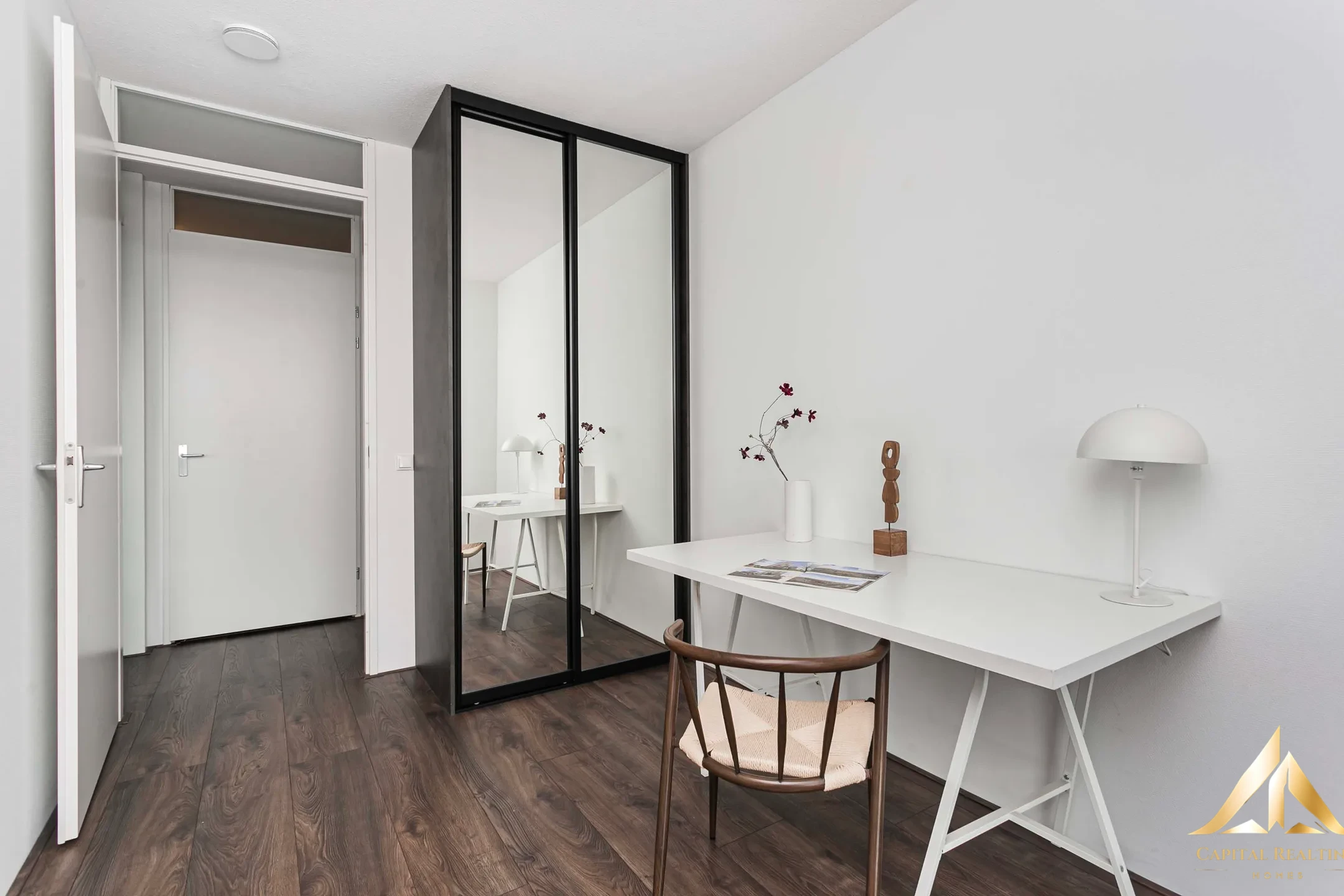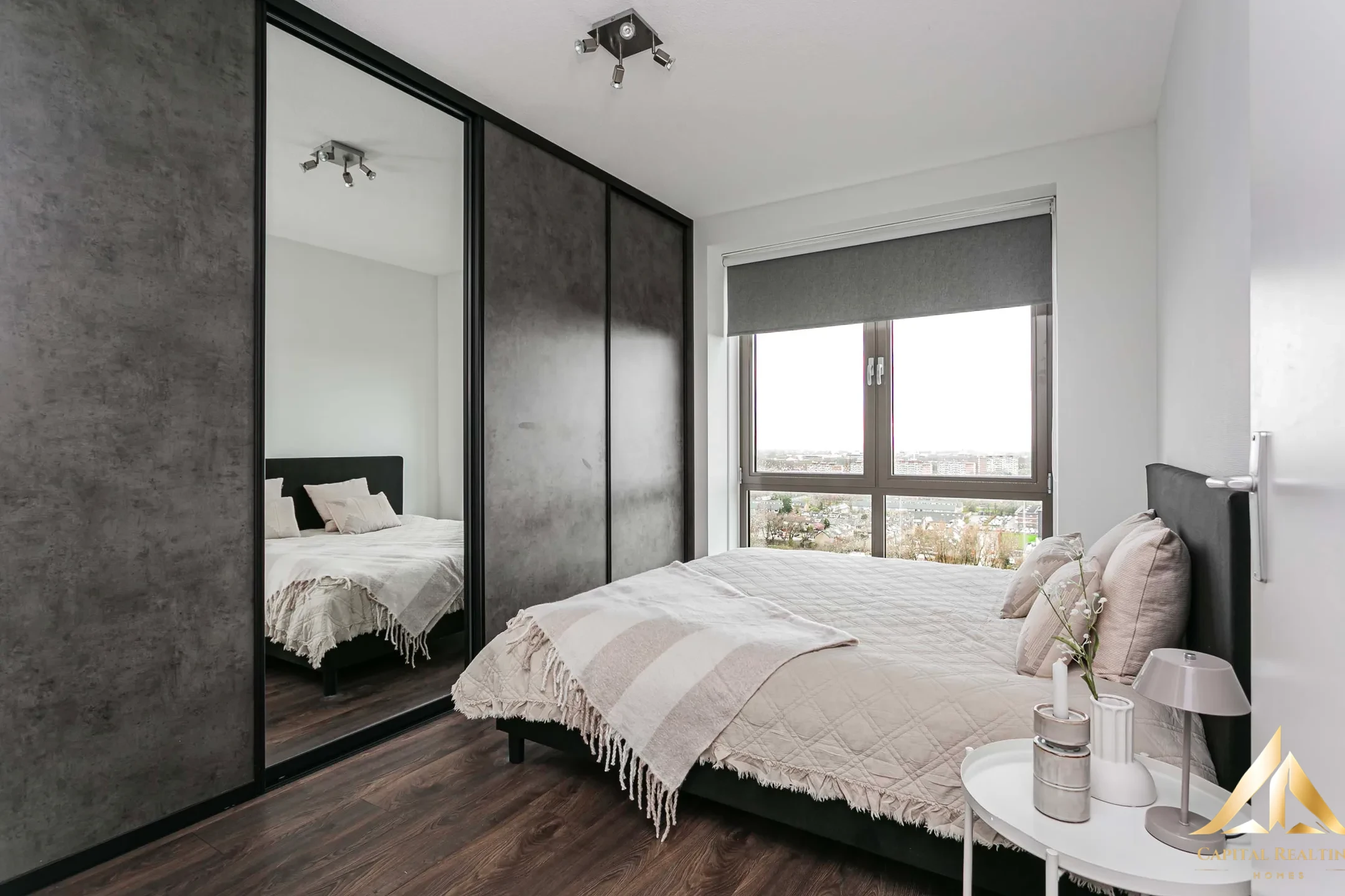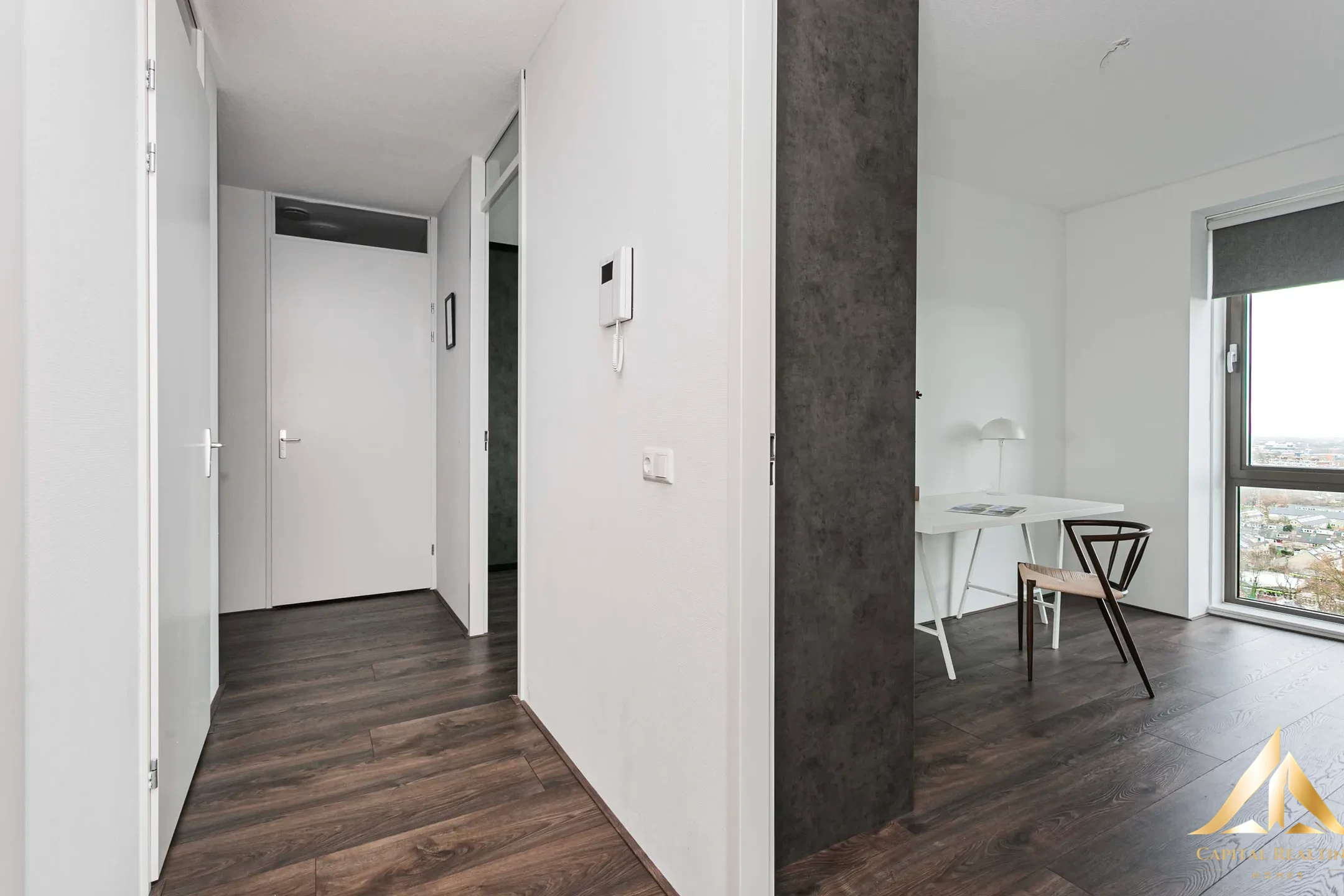 From the seventeenth floor of this modern apartment on the Arabellapad, you can enjoy a breathtaking panoramic view of Amersfoort and Leusden every day. The beautiful Onze Lieve Vrouwetoren rises majestically above the city and every season the view changes in colour: from fresh green in spring to golden sunsets in autumn. A view that really never gets boring! This ready-to-move-in 3-room apartment from 2021 offers everything you are looking for: a spacious living room, open kitchen, two spacious bedrooms, luxurious finishes, underfloor heating and floor cooling, a private parking space and a sunny south-facing balcony. A carefree living experience in a prime location! Layout Ground floor Modern entrance with doorbells with video, mailboxes, two elevators, staircase and a communal bicycle shed with three fixed bicycle spaces belonging to the apartment. Seventeenth floor The hall welcomes you and immediately gives a neat, well-kept impression. Here you will find a new meter cupboard, a modern floating toilet with fountain and a practical cupboard that is ideal as extra storage space. In a second cupboard, the heat recovery system, heat pump, washing machine setup and space for extra storage are neatly concealed — practically and completely out of sight. The living room is spacious and wonderfully light thanks to the large windows. The altitude at which you live immediately surprises with a phenomenal view. The combination of laminate, sleek wall finish and underfloor heating + floor cooling ensures optimal living comfort. The layout also offers the possibility to realize an extra room, for example a workspace, hobby room or third bedroom. From the living room there is also access to the sunny south-facing balcony, where you can sit and enjoy the impressive view of Amersfoort every day. The open kitchen fits perfectly with the living room and is fully equipped with a 4-burner induction hob, combi oven, refrigerator, dishwasher and extractor hood. A nice, modern workplace for every cooking enthusiast. Both bedrooms are spacious and bright, finished with laminate and a sleek wall finish. Thanks to the custom-made built-in wardrobes, you have plenty of practical storage space. The bathroom is spacious and modern, finished with a double sink, a spacious walk-in shower and a second toilet. A nice, well-kept space that is both practical and comfortable.