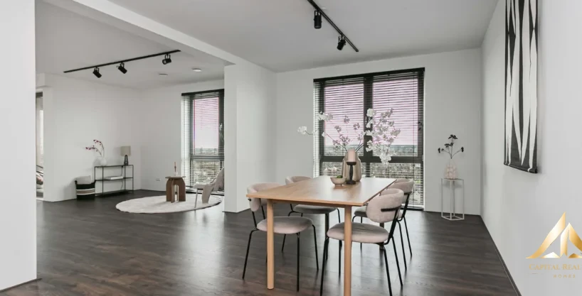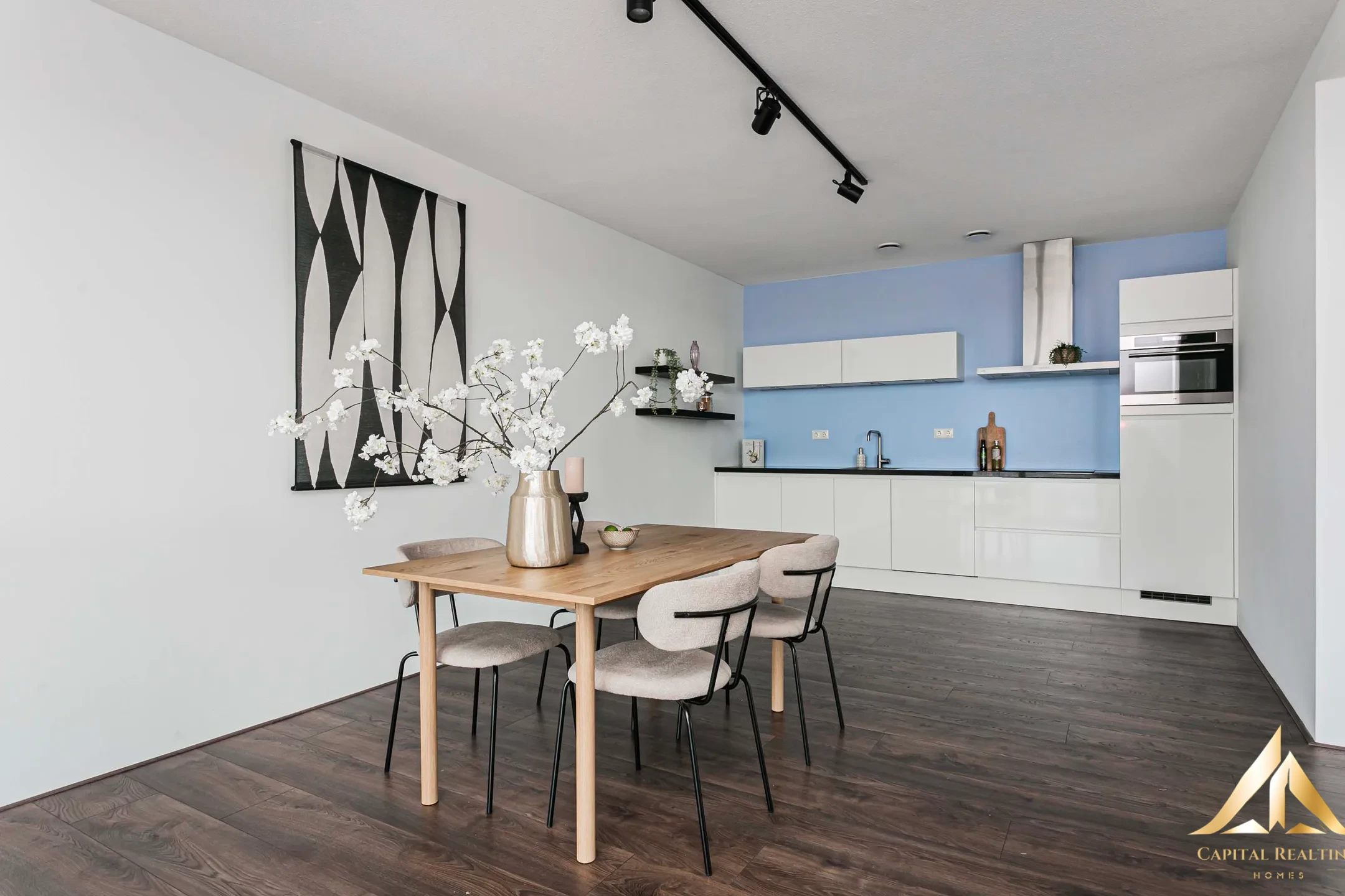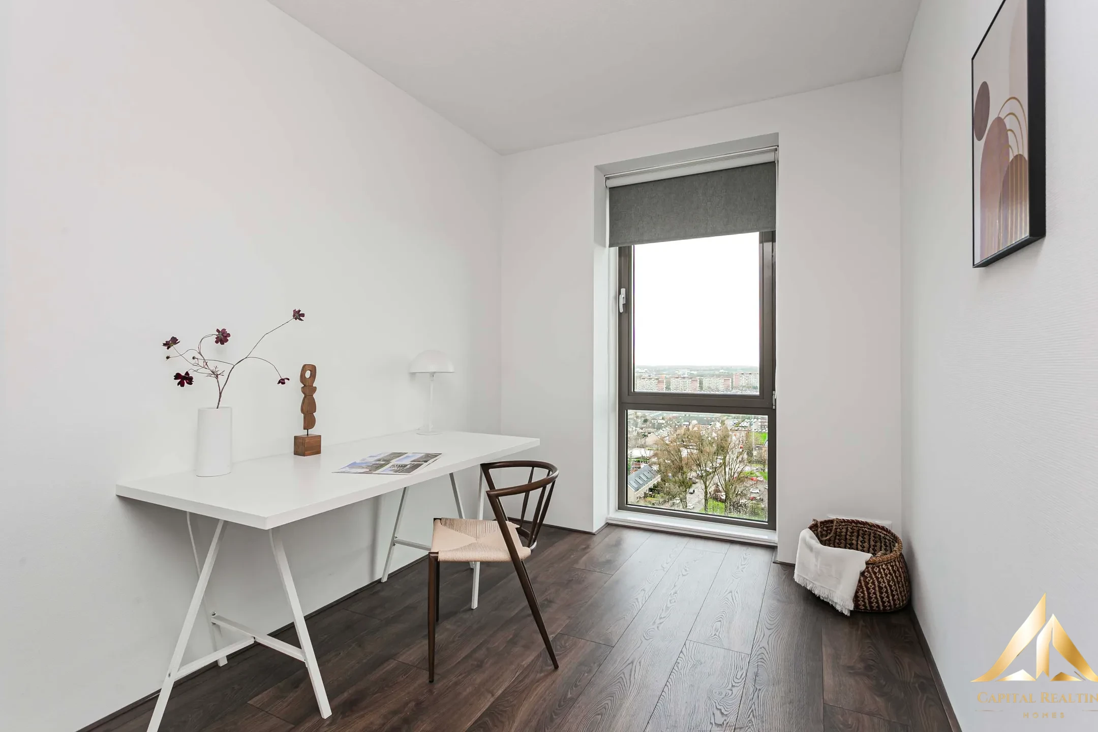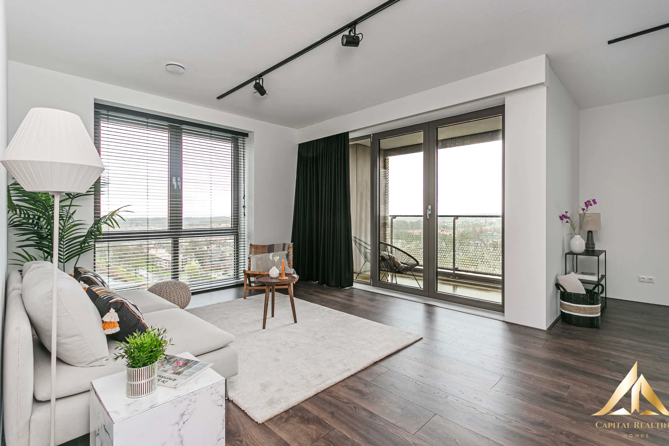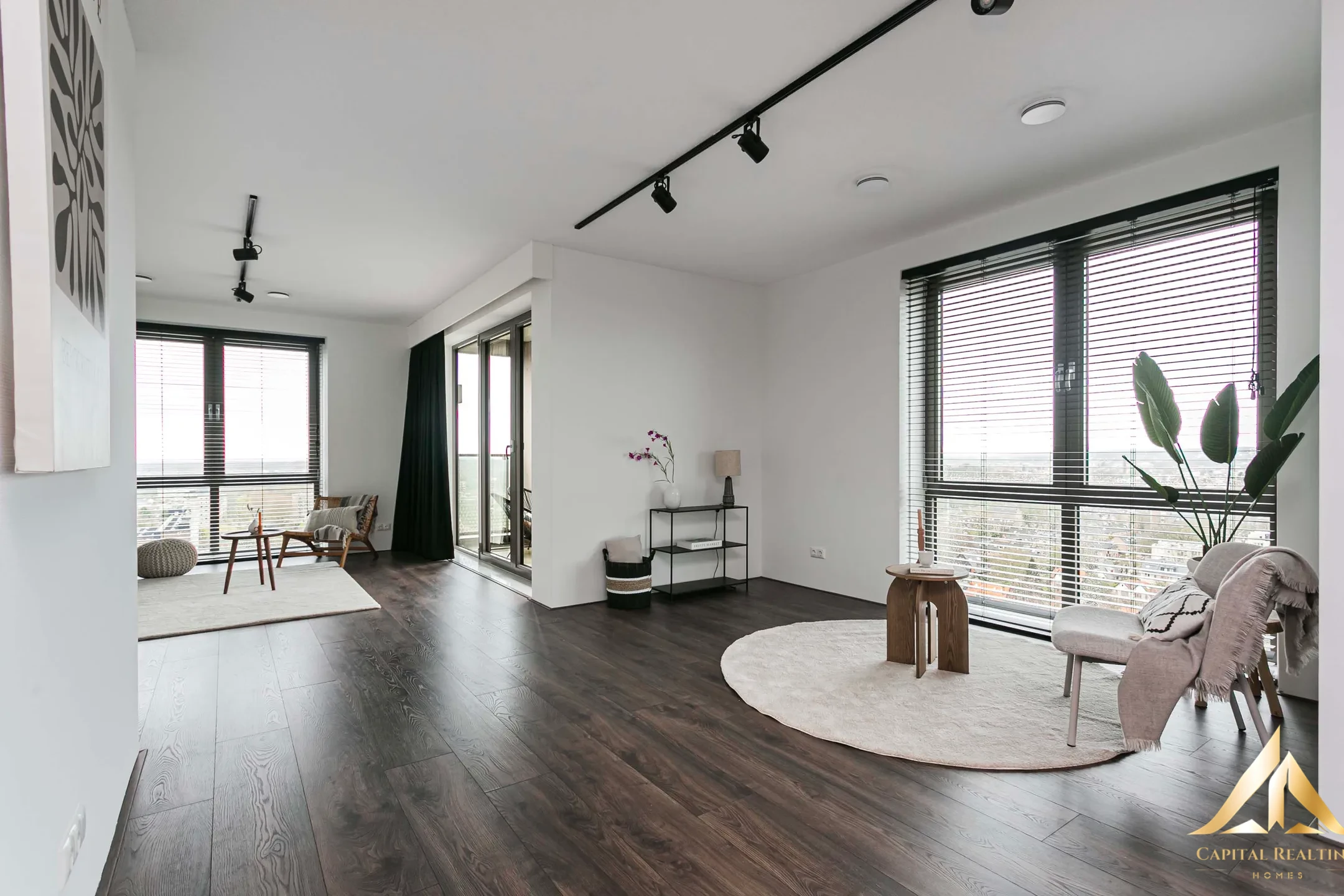 From the seventeenth floor of this modern apartment on the Arabellapad, you can enjoy a breathtaking panoramic view of Amersfoort and Leusden every day. The beautiful Onze Lieve Vrouwetoren rises majestically above the city and every season the view changes in colour: from fresh green in spring to golden sunsets in autumn. A view that really never gets boring! This ready-to-move-in 3-room apartment from 2021 offers everything you are looking for: a spacious living room, open kitchen, two spacious bedrooms, luxurious finishes, underfloor heating and floor cooling, a private parking space and a sunny south-facing balcony. A carefree living experience in a prime location! Layout Ground floor Modern entrance with doorbells with video, mailboxes, two elevators, staircase and a communal bicycle shed with three fixed bicycle spaces belonging to the apartment. Seventeenth floor The hall welcomes you and immediately gives a neat, well-kept impression. Here you will find a new meter cupboard, a modern floating toilet with fountain and a practical cupboard that is ideal as extra storage space. In a second cupboard, the heat recovery system, heat pump, washing machine setup and space for extra storage are neatly concealed — practically and completely out of sight. The living room is spacious and wonderfully light thanks to the large windows. The altitude at which you live immediately surprises with a phenomenal view. The combination of laminate, sleek wall finish and underfloor heating + floor cooling ensures optimal living comfort. The layout also offers the possibility to realize an extra room, for example a workspace, hobby room or third bedroom. From the living room there is also access to the sunny south-facing balcony, where you can sit and enjoy the impressive view of Amersfoort every day. The open kitchen fits perfectly with the living room and is fully equipped with a 4-burner induction hob, combi oven, refrigerator, dishwasher and extractor hood. A nice, modern workplace for every cooking enthusiast. Both bedrooms are spacious and bright, finished with laminate and a sleek wall finish. Thanks to the custom-made built-in wardrobes, you have plenty of practical storage space. The bathroom is spacious and modern, finished with a double sink, a spacious walk-in shower and a second toilet. A nice, well-kept space that is both practical and comfortable.