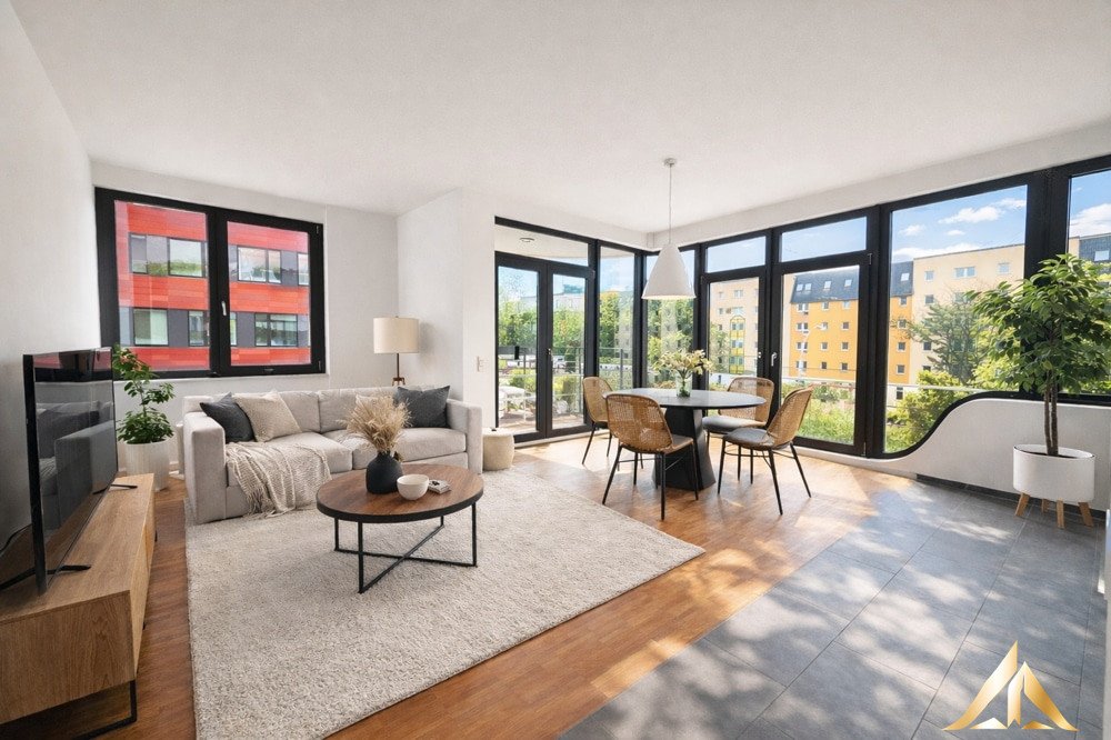 This well-designed two-room apartment with a balcony is located in the modern The White development, directly on the banks of the River Spree. The apartment offers contemporary living with a strong connection to its surroundings, combining water views, urban convenience, and green spaces in one of Berlin’s most desirable neighbourhoods.