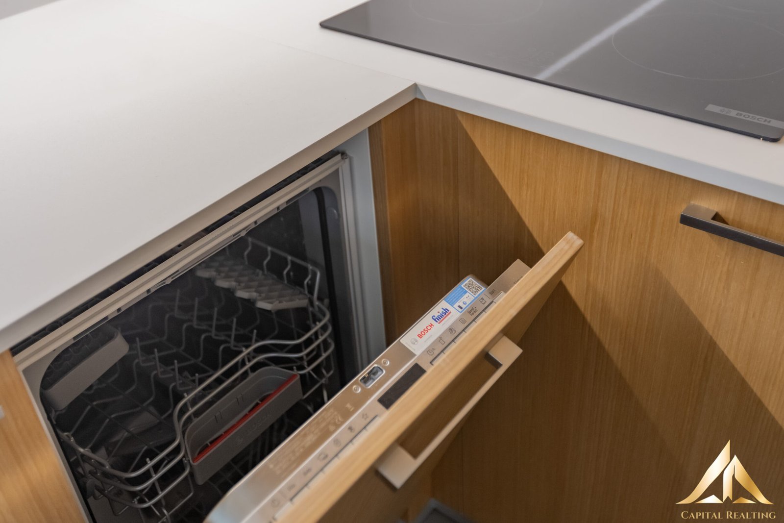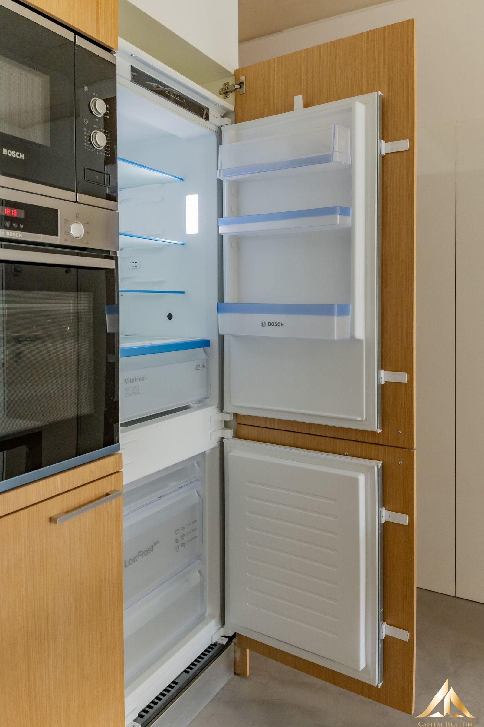 Полностью оборудованная кухня включает в себя высококачественную бытовую технику Bosch, сочетающую в себе стиль и надежность. Во всей квартире установлена система кондиционирования воздуха, обеспечивающая комфорт в любое время года.