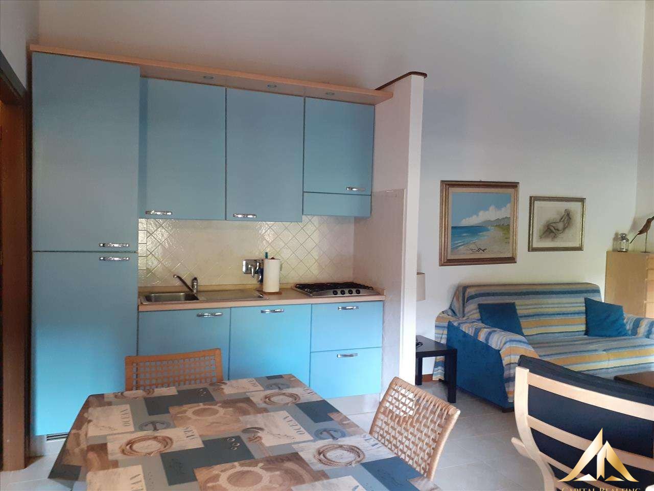 Apartment at the second floor of a small block of flats at 100 m from the beach and at walking distance to the supermarket. It consists of a living room with small kitche (fridge, oven and dish washer), sofa bed (2places) 1 double bedroom, 1 bathroom with shower and washing machine. Small balcony ith table. Private parking. The apartment is ideal for a holiday in a quiet place, surrounded by nature.